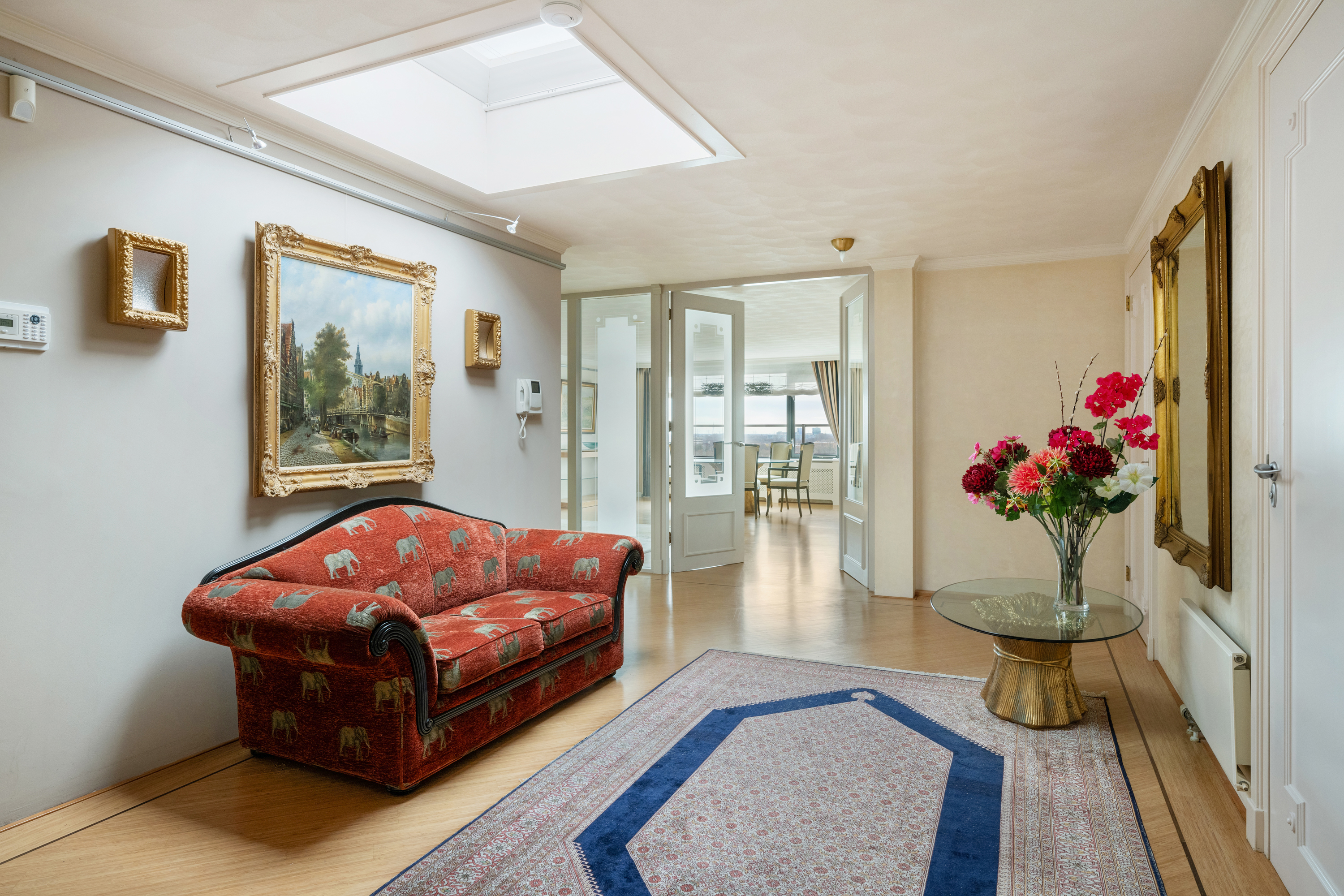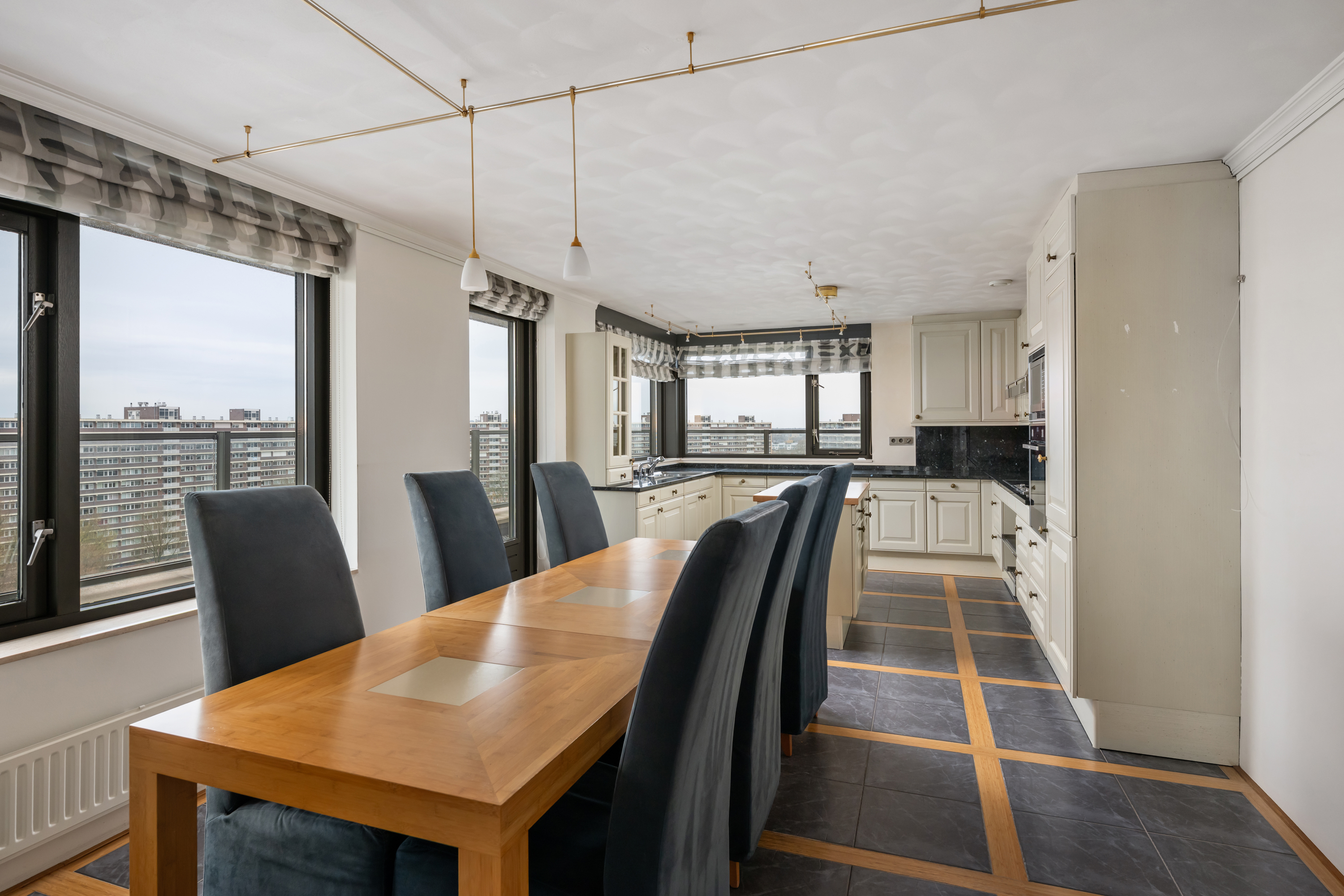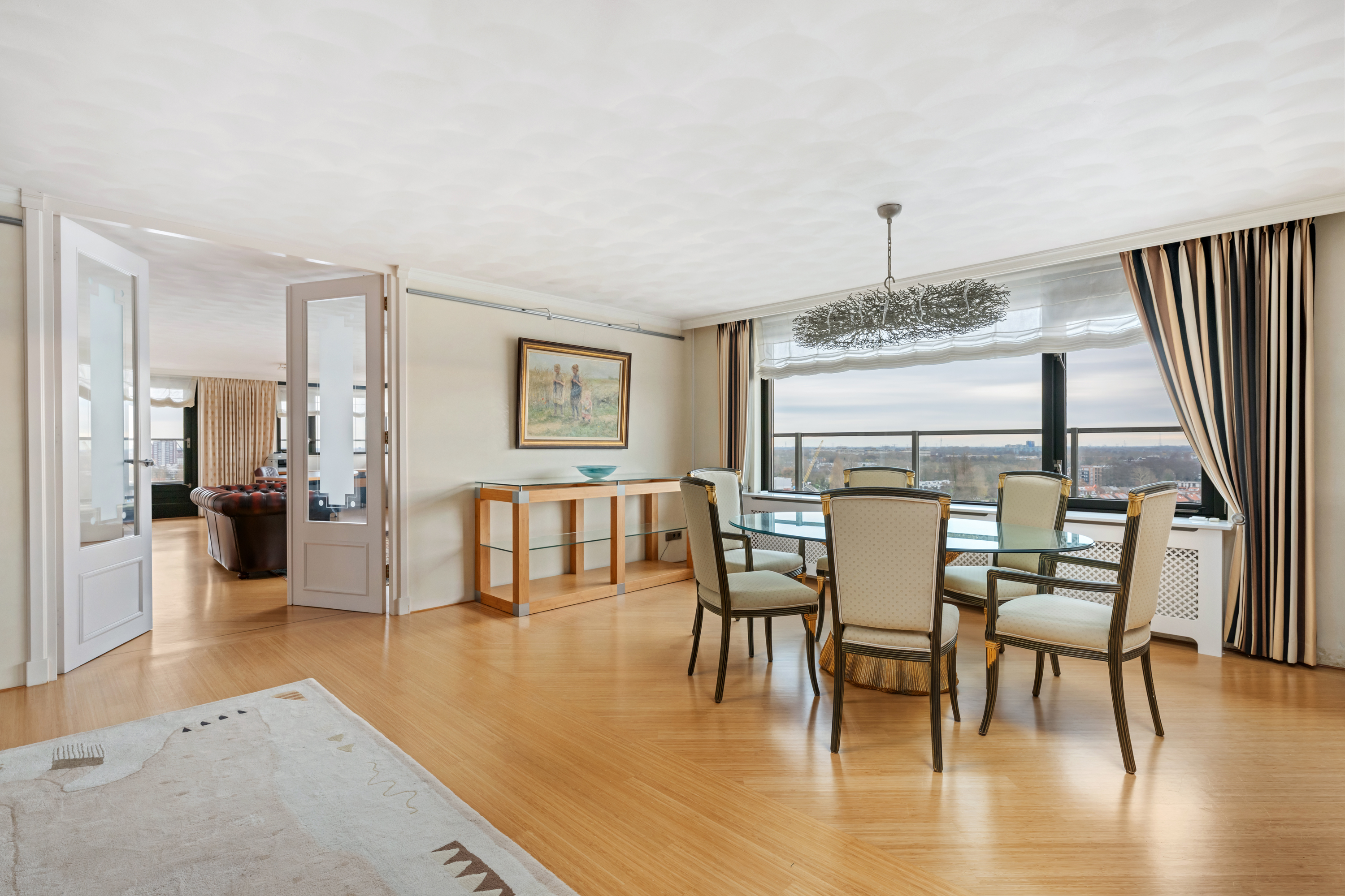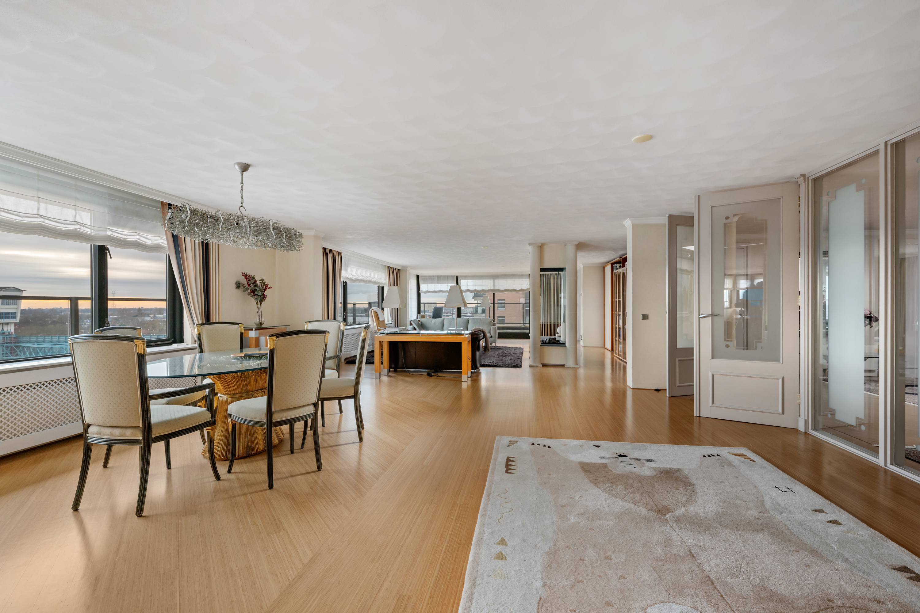 Een waar indrukwekkend penthouse (bijna 370m2 wonen) dat de volledige bovenste etage beslaat en omgeven is door rust, ruimte en panoramisch uitzicht. De woning biedt een imposante living met haard, een stijlvolle bibliotheek/werkkamer, aparte eetkamer en een royale woonkeuken. Met vier ruime slaapkamers is er volop ruimte voor gezin, gasten of werk aan huis. Daarnaast zijn er drie badkamers, een aparte wasruimte en een sfeervolle biljartkamer met klassieke uitstraling.