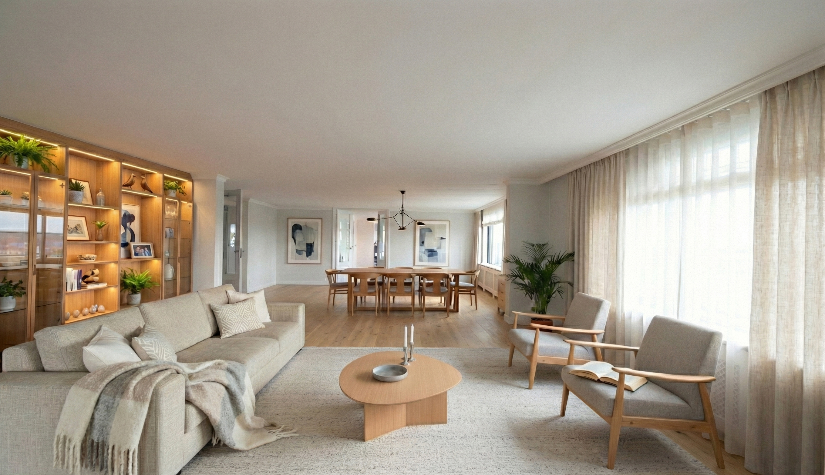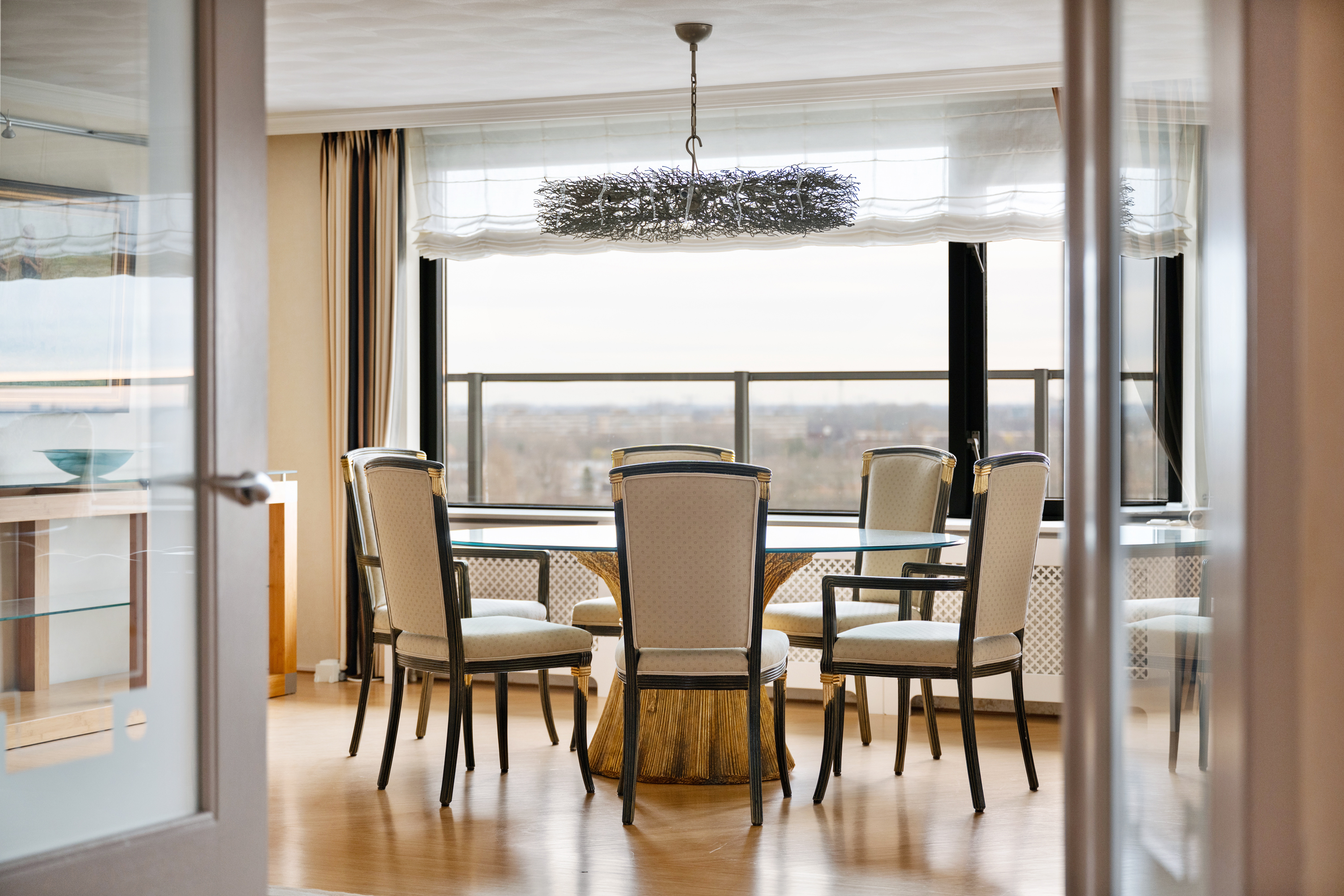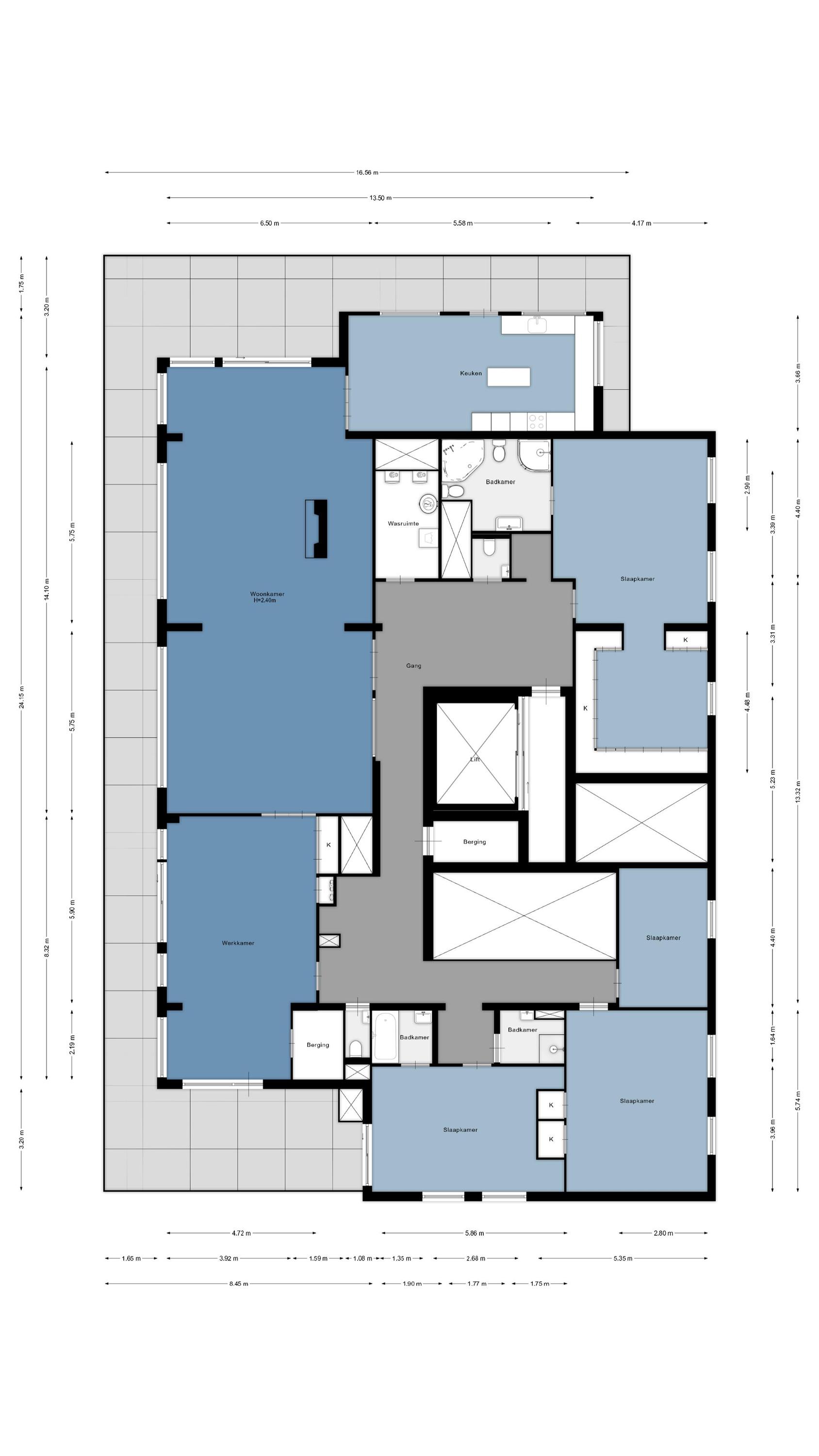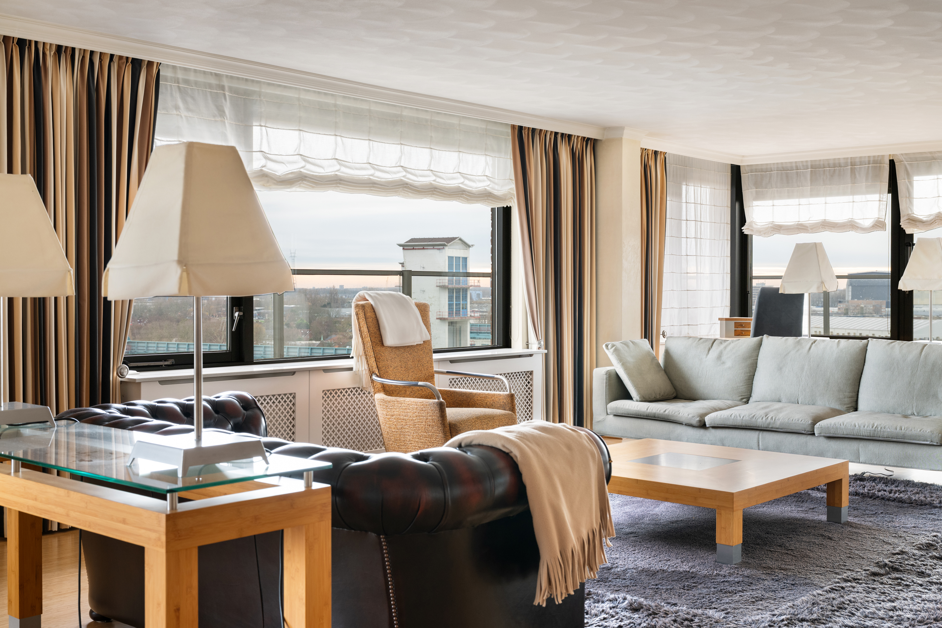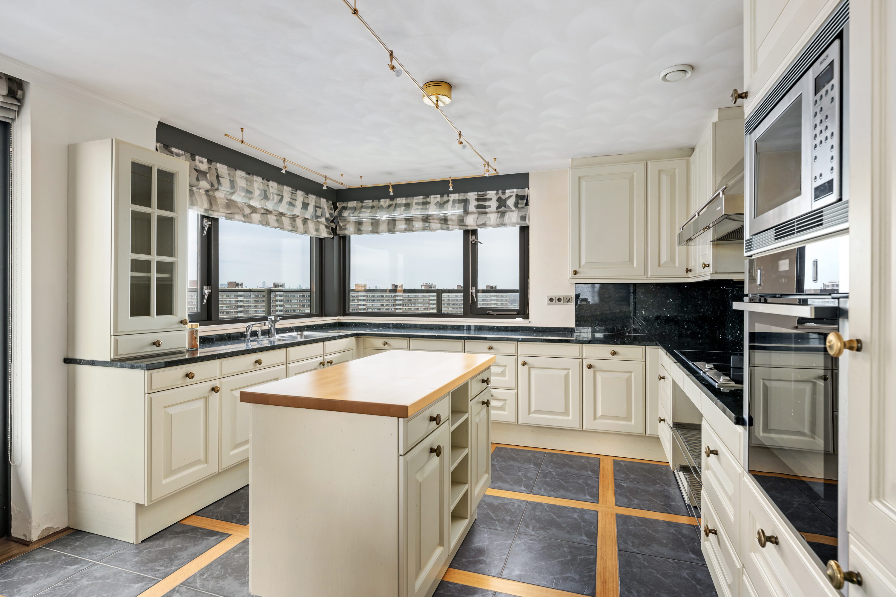 Een waar indrukwekkend penthouse (bijna 370m2 wonen) dat de volledige bovenste etage beslaat en omgeven is door rust, ruimte en panoramisch uitzicht. De woning biedt een imposante living met haard, een stijlvolle bibliotheek/werkkamer, aparte eetkamer en een royale woonkeuken. Met vier ruime slaapkamers is er volop ruimte voor gezin, gasten of werk aan huis. Daarnaast zijn er drie badkamers, een aparte wasruimte en een sfeervolle biljartkamer met klassieke uitstraling.