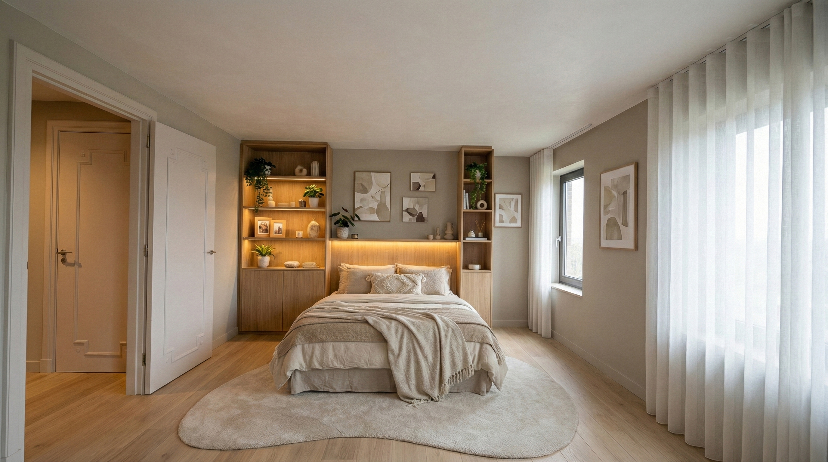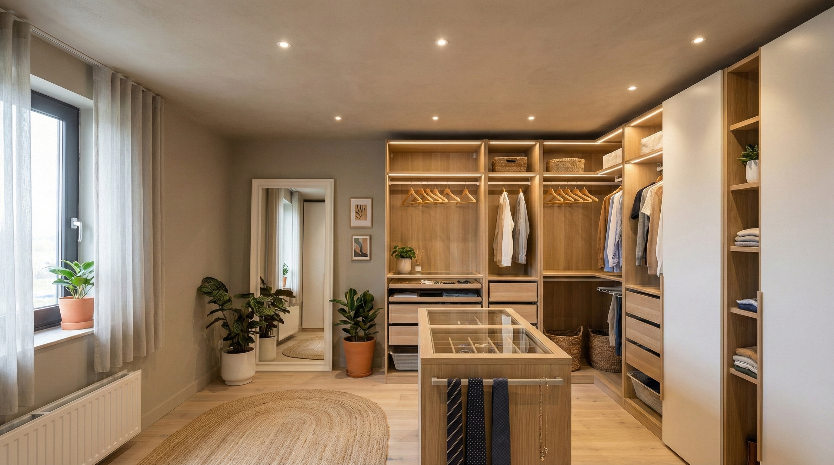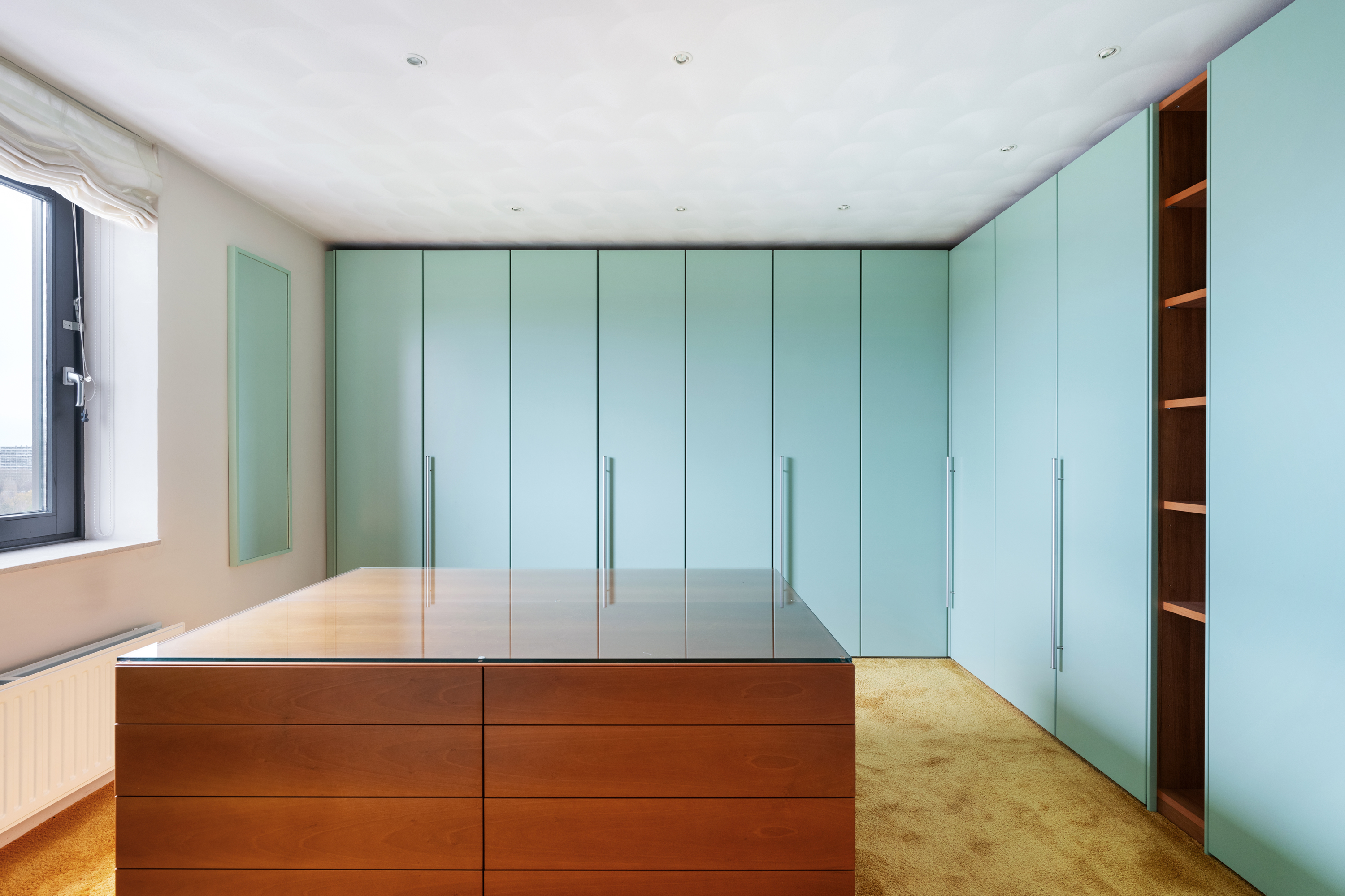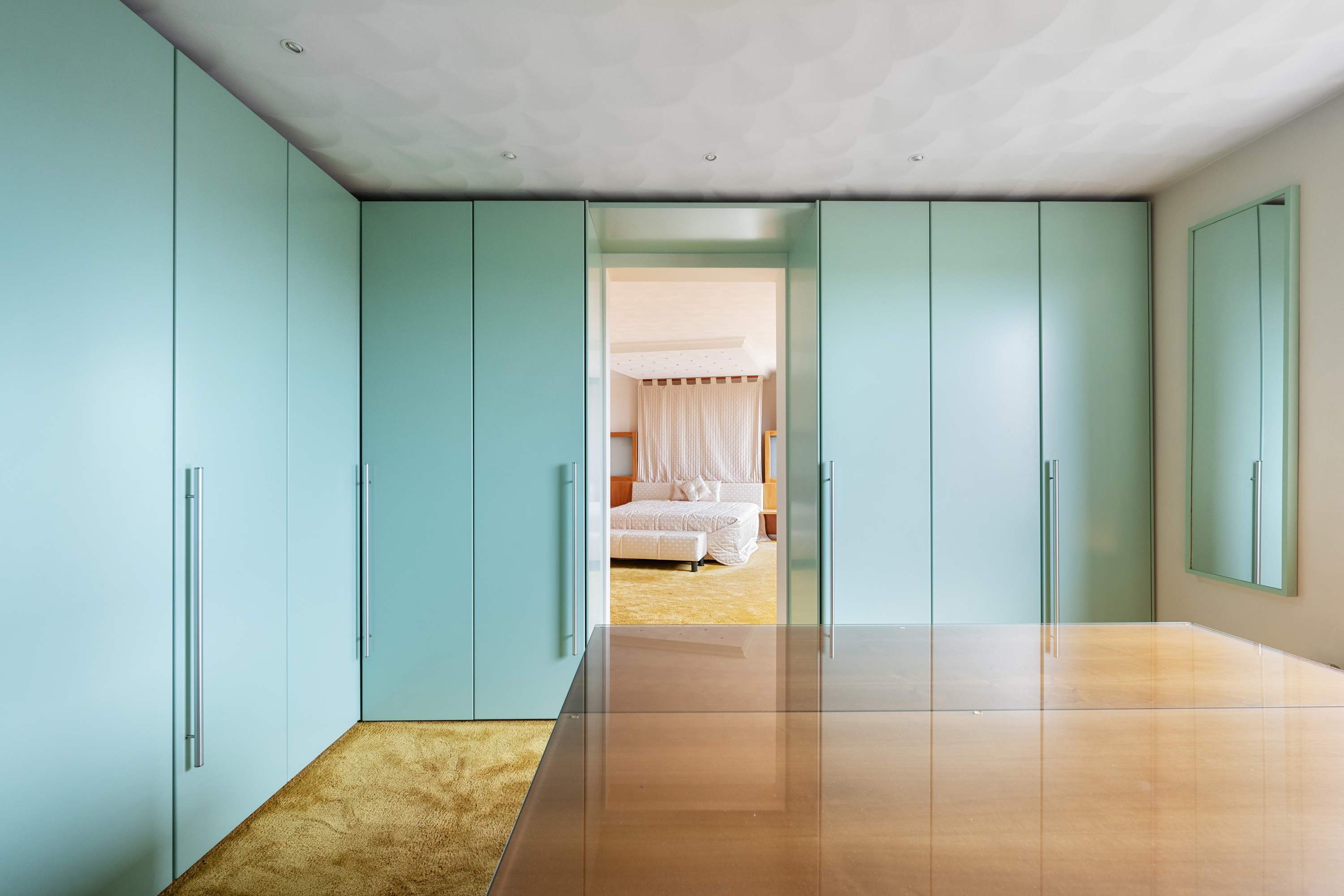 De “master” slaapkamer welke vanuit de hal bereikbaar is, is zeer royaal van opzet. Bijzonder is ook de zeer riante walk-in closet, een volledig ingerichte kleedruimte die aanvoelt als een luxe boetiek, met op maat gemaakte kasten, ingebouwde verlichting en overvloedige opbergruimte voor kleding, accessoires en meer. Vanuit de slaapkamer loopt u bovendien zo door naar de aangrenzende badkamer, wat deze vleugel tot een waar privéverblijf maakt.
