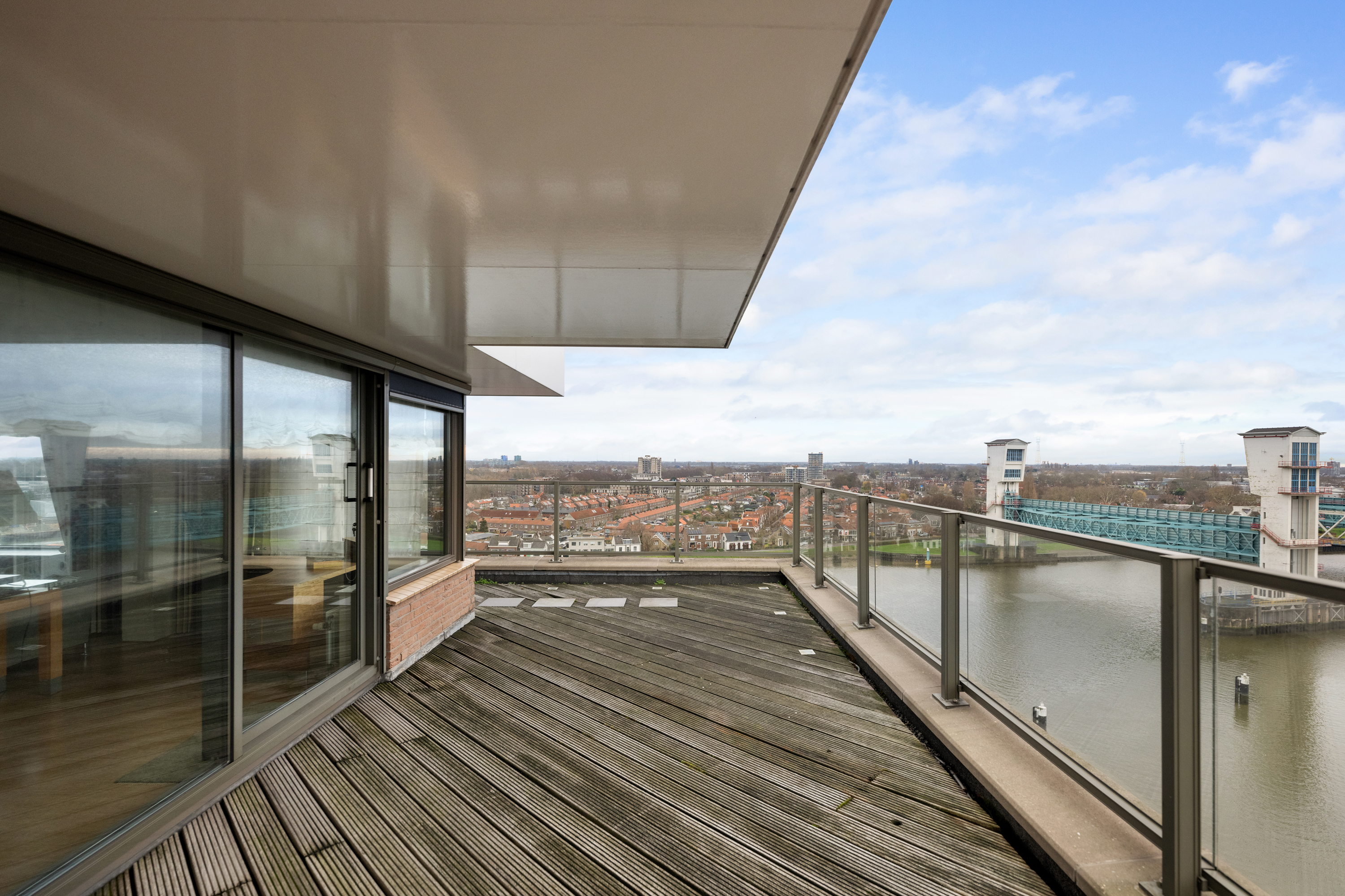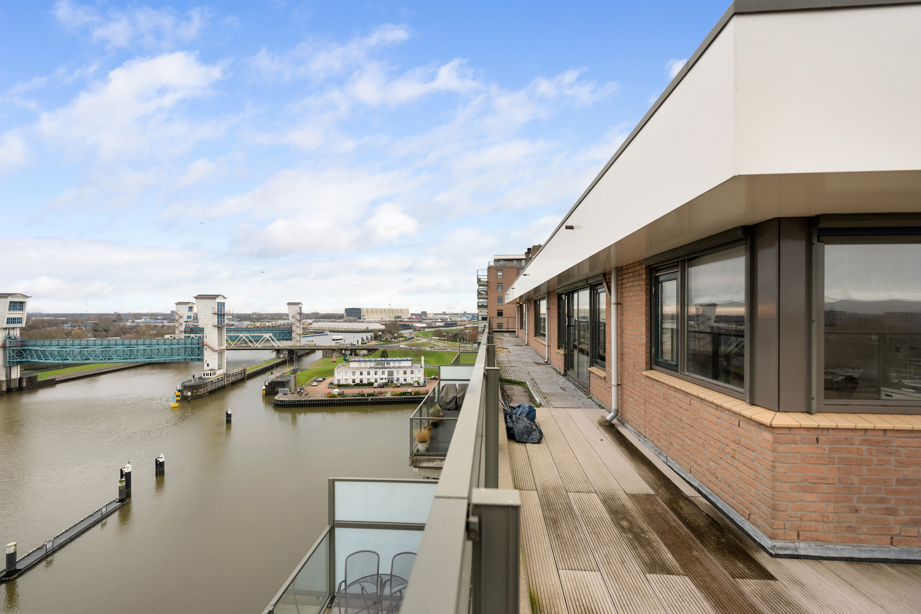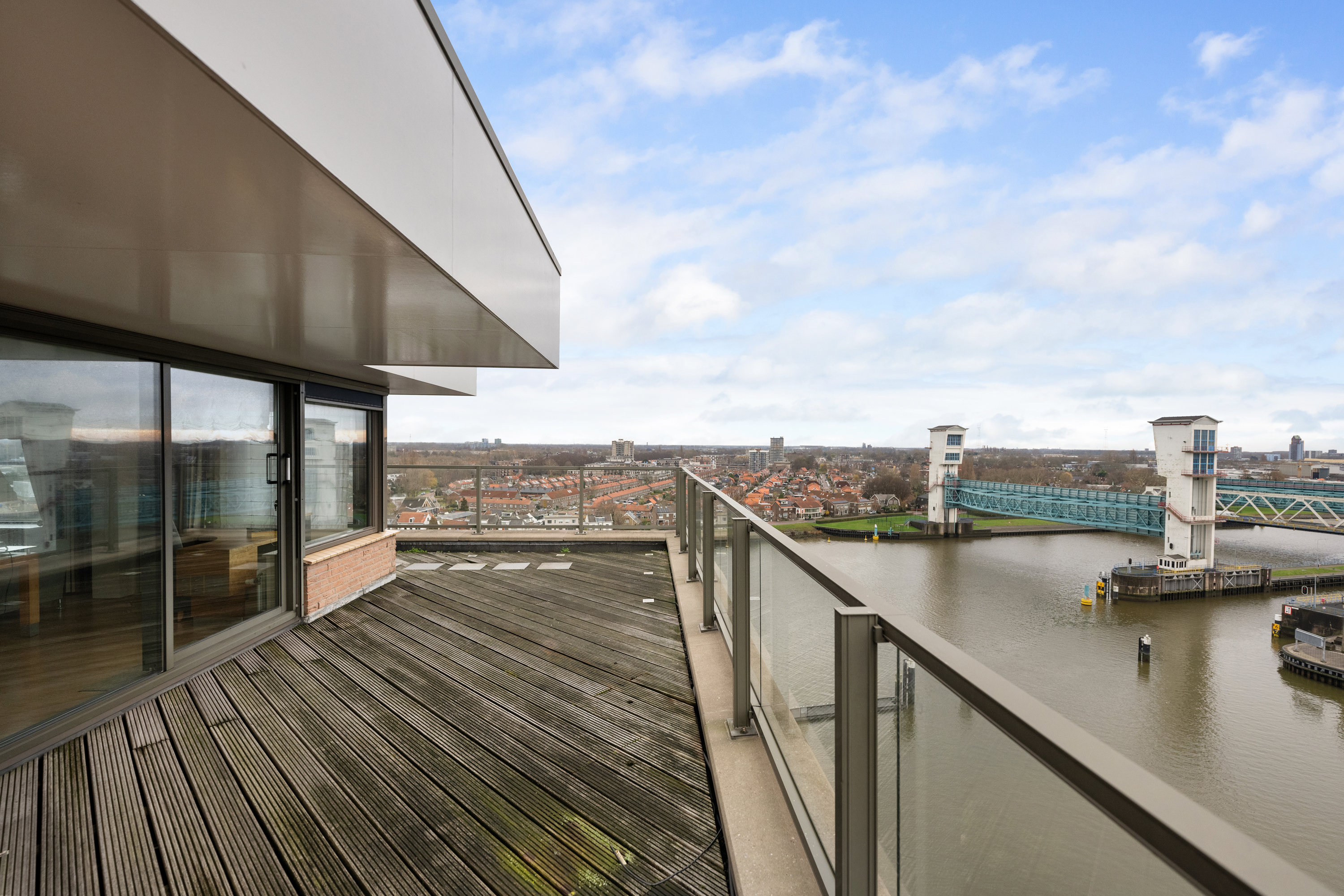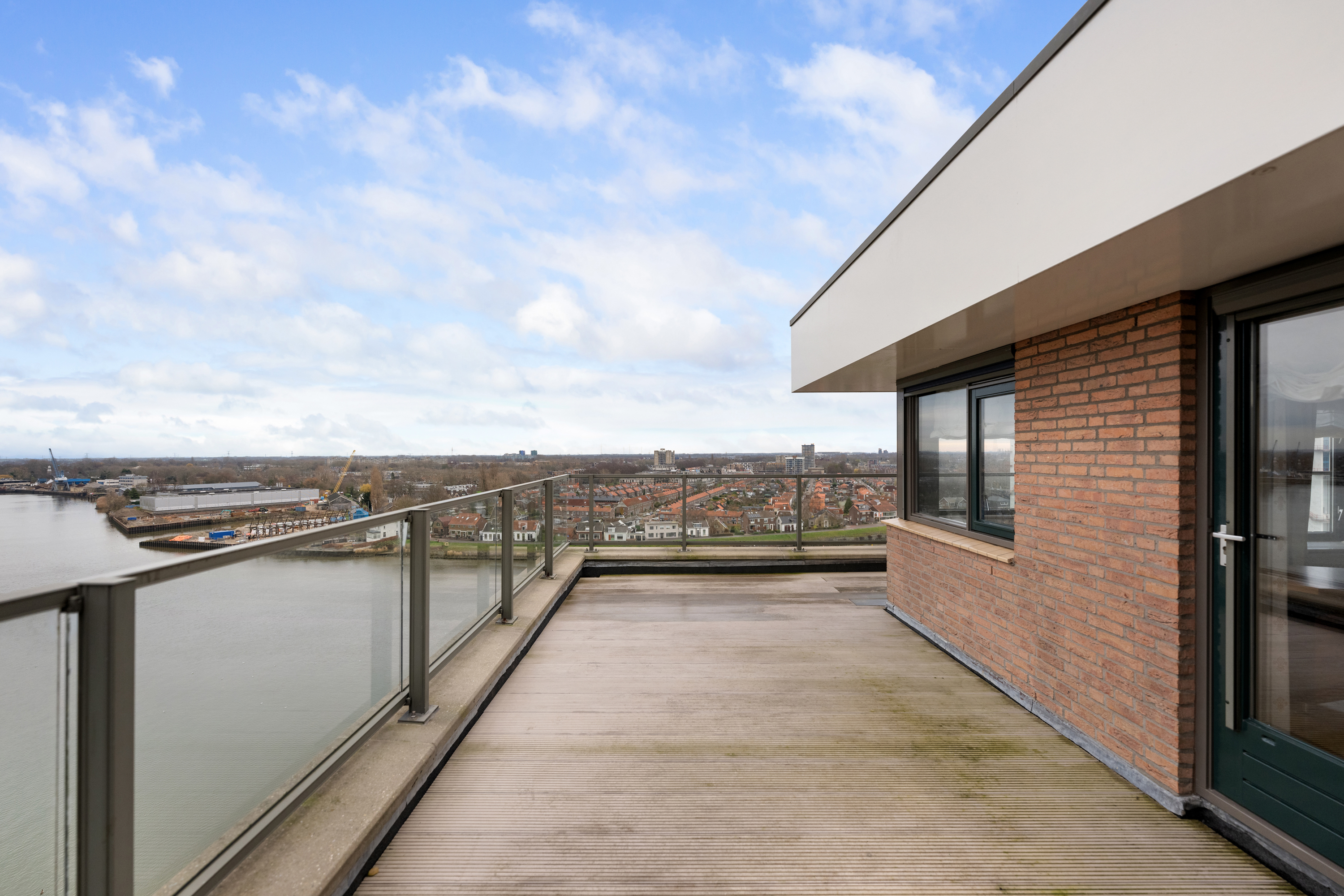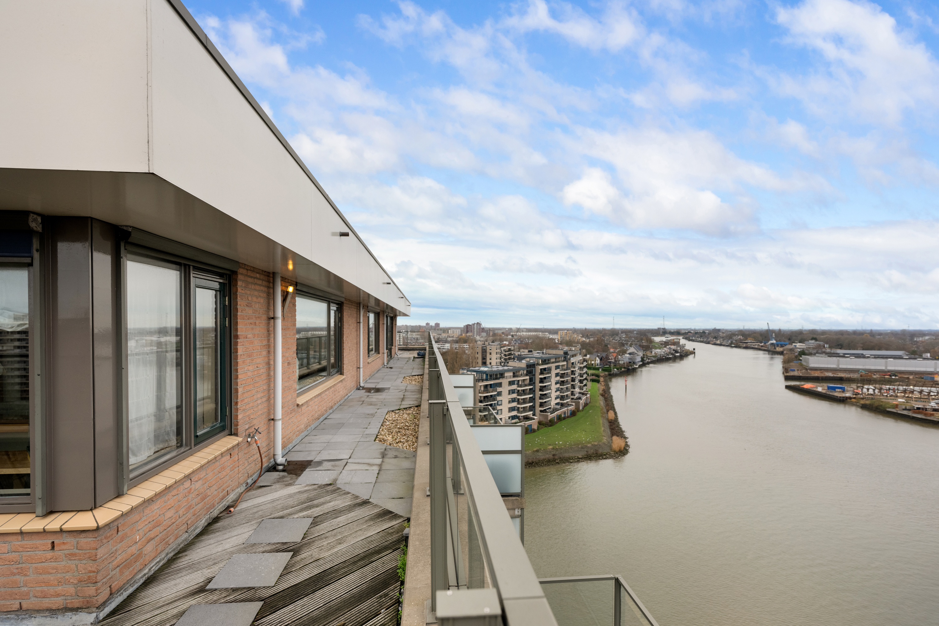 En dan het dakterras, een buitenruimte van indrukwekkend formaat, die als een privé oase fungeert. Met een oppervlakte van circa 106m² biedt het terras volop ruimte voor meerdere zit- en loungehoeken of een buitenkeuken. Hier geniet u in volledige privacy van de zon van ’s ochtends vroeg tot in de avonduren, omgeven door rust, licht en weidse vergezichten over de skyline van Rotterdam, het IJssellandschap en het achterliggende groen.