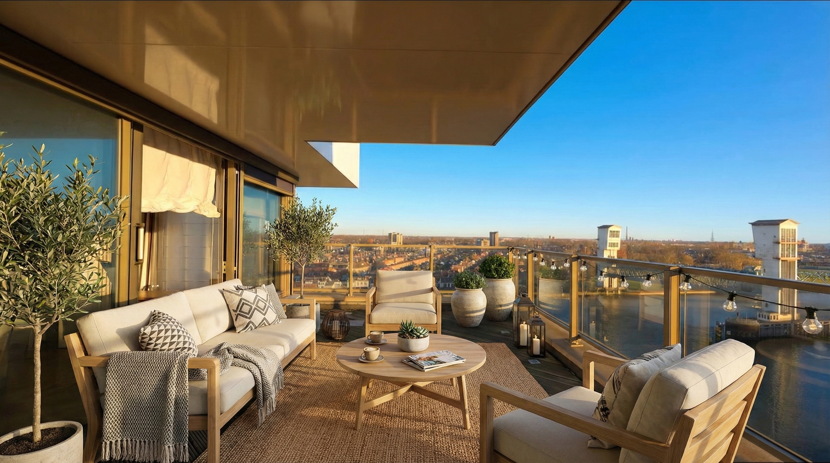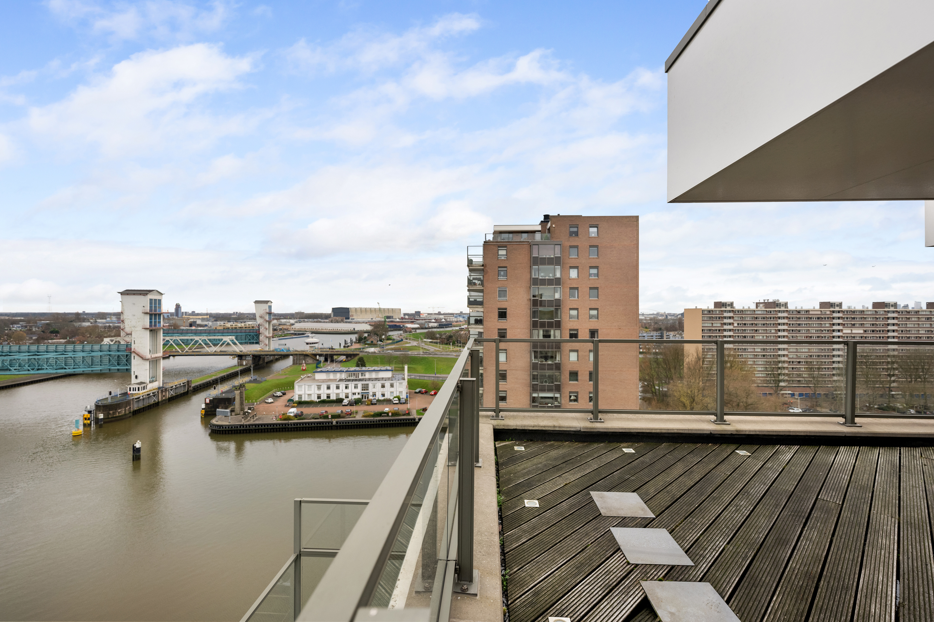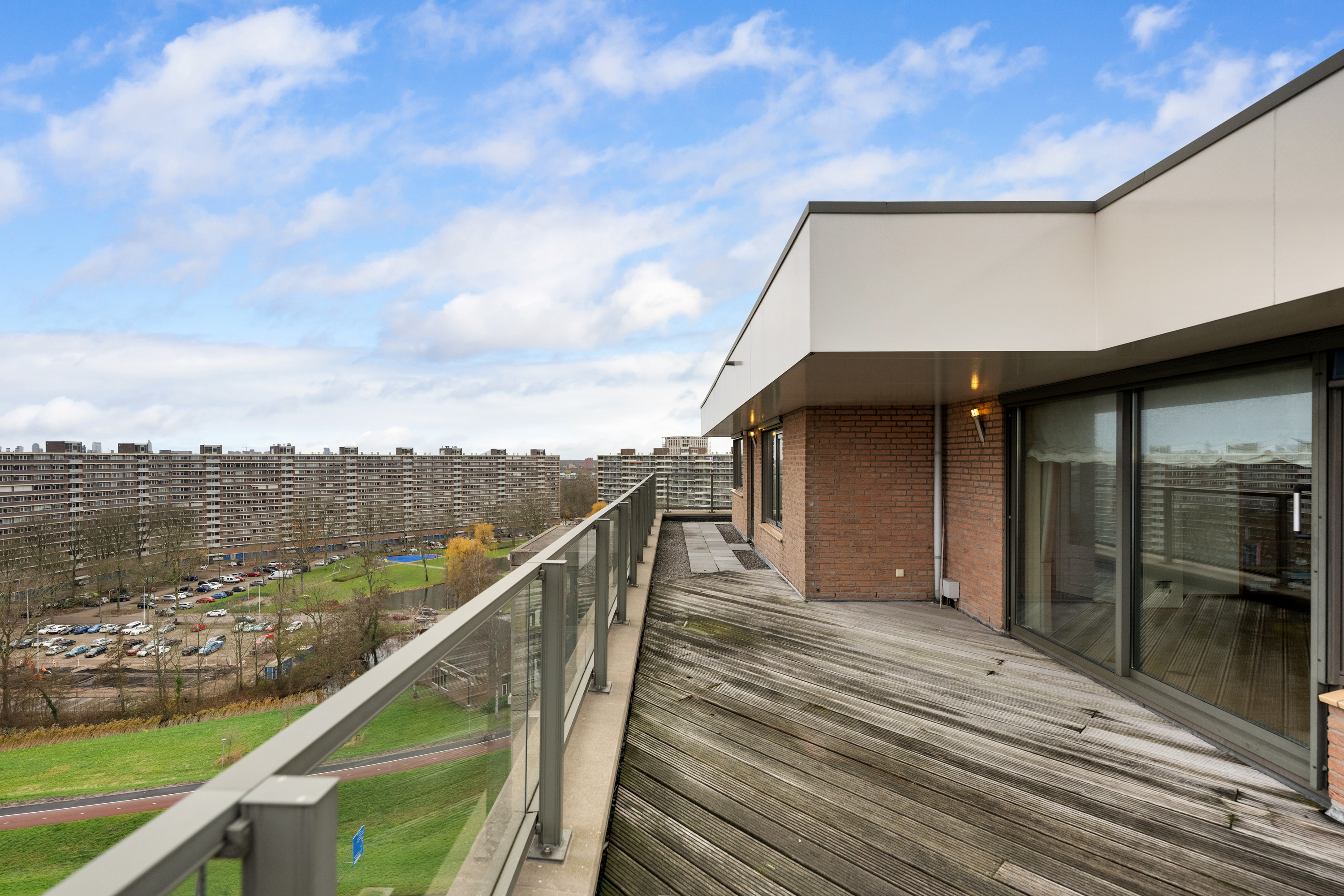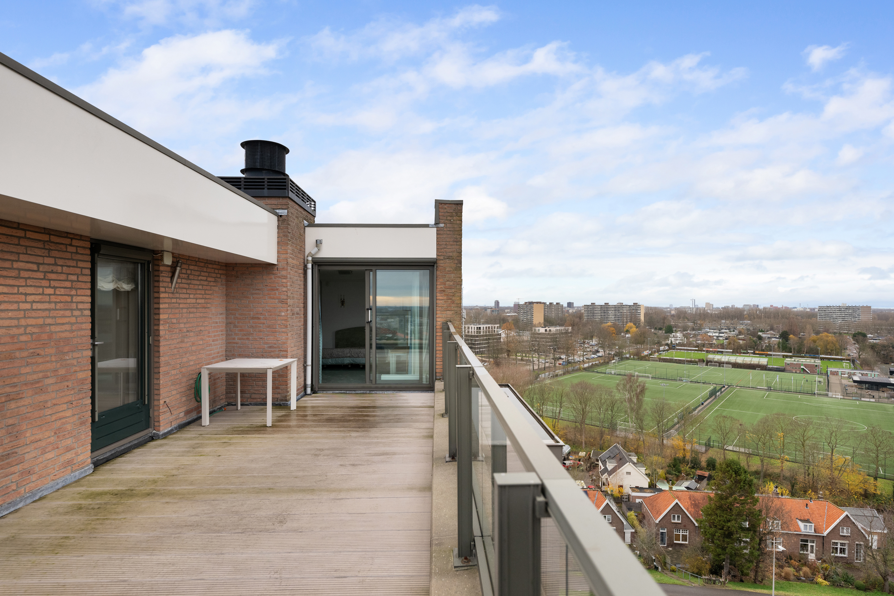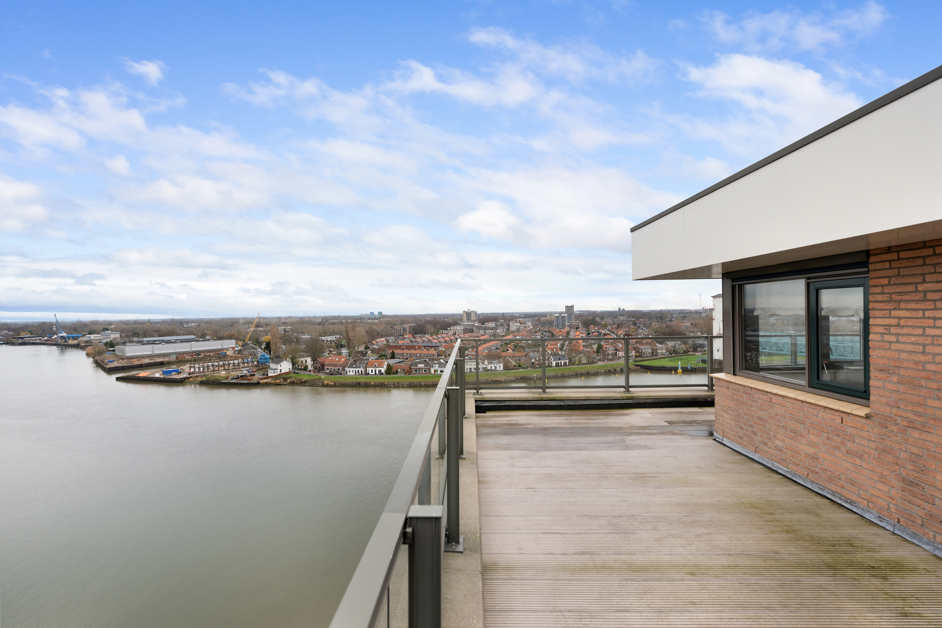 En dan het dakterras, een buitenruimte van indrukwekkend formaat, die als een privé oase fungeert. Met een oppervlakte van circa 106m² biedt het terras volop ruimte voor meerdere zit- en loungehoeken of een buitenkeuken. Hier geniet u in volledige privacy van de zon van ’s ochtends vroeg tot in de avonduren, omgeven door rust, licht en weidse vergezichten over de skyline van Rotterdam, het IJssellandschap en het achterliggende groen.