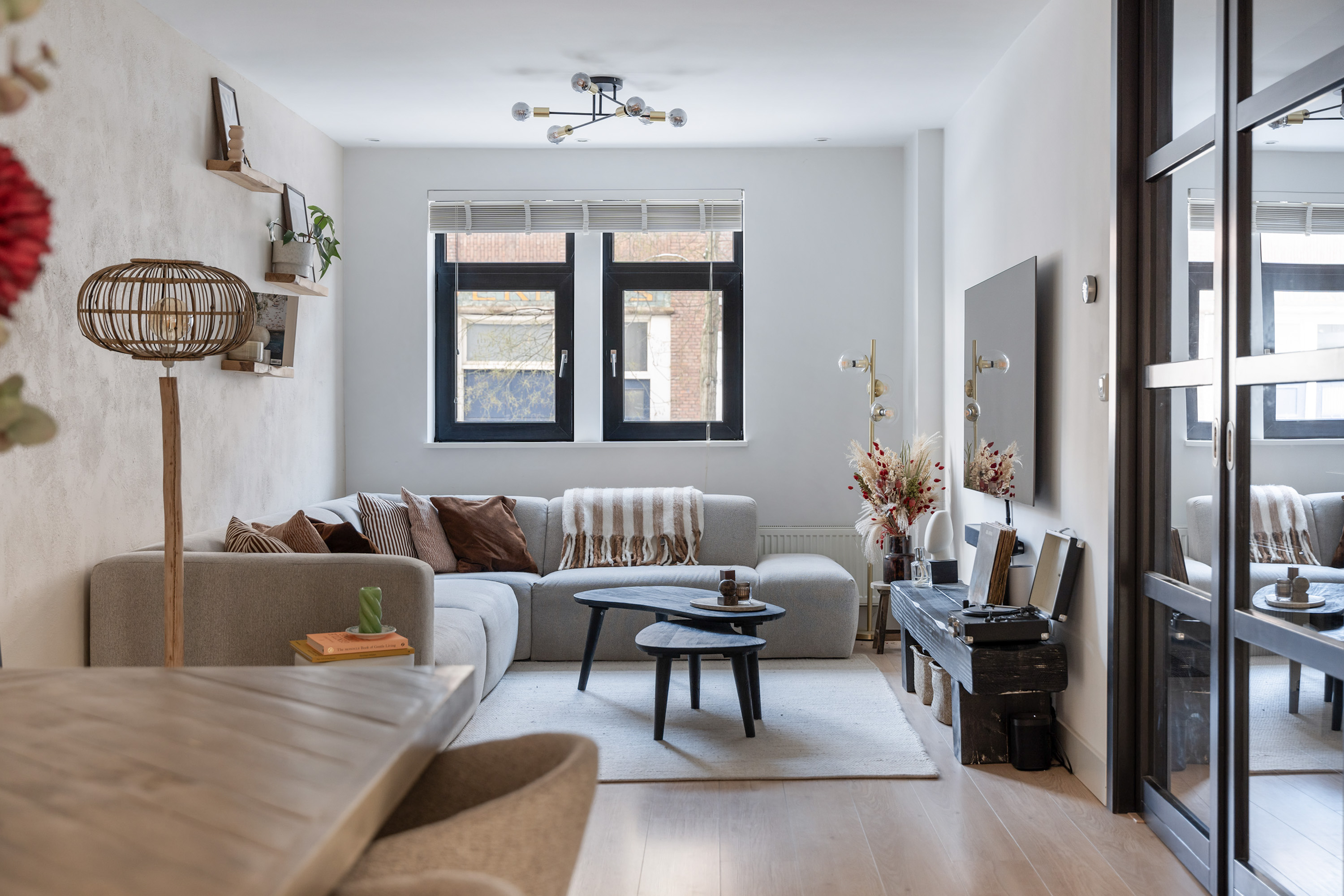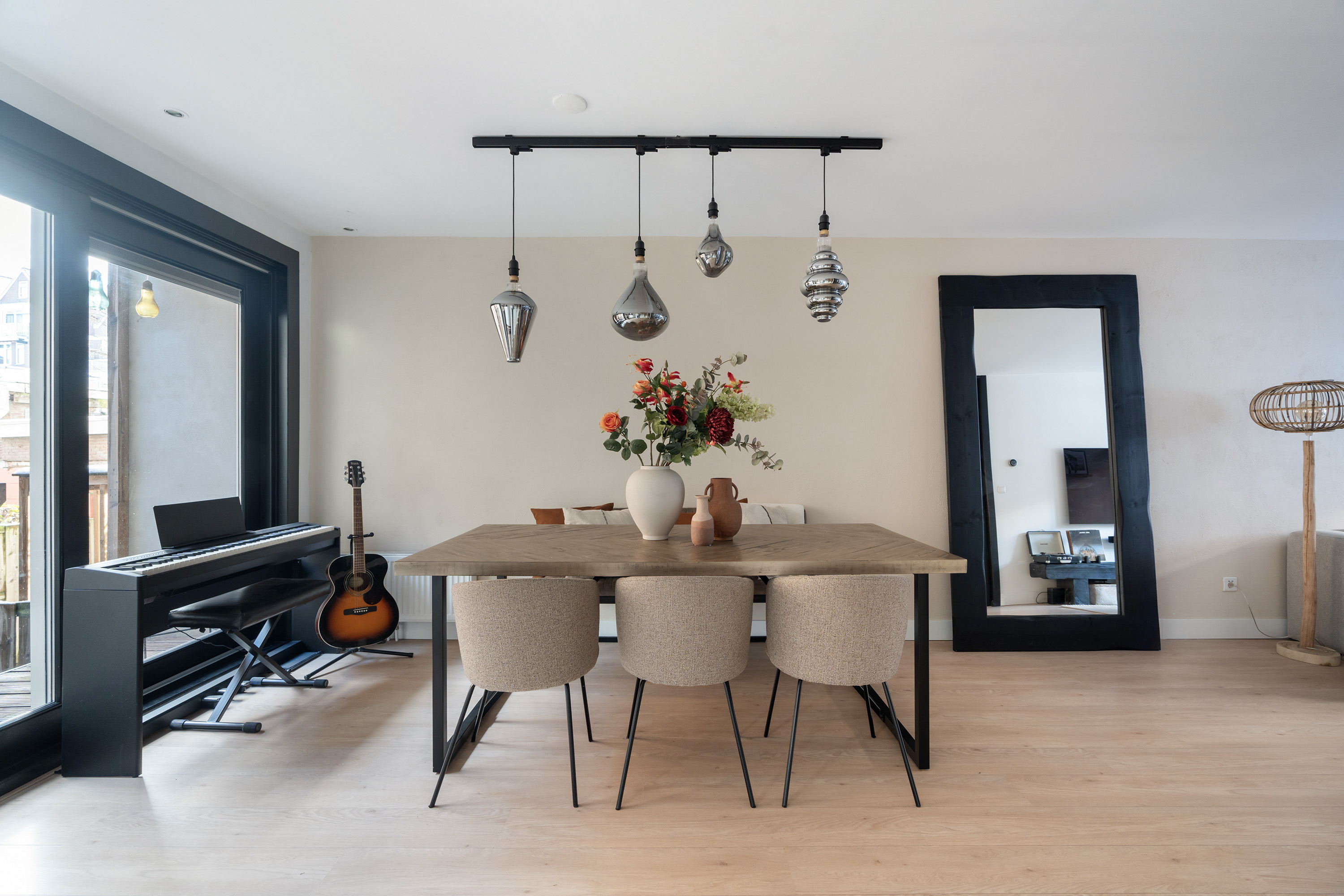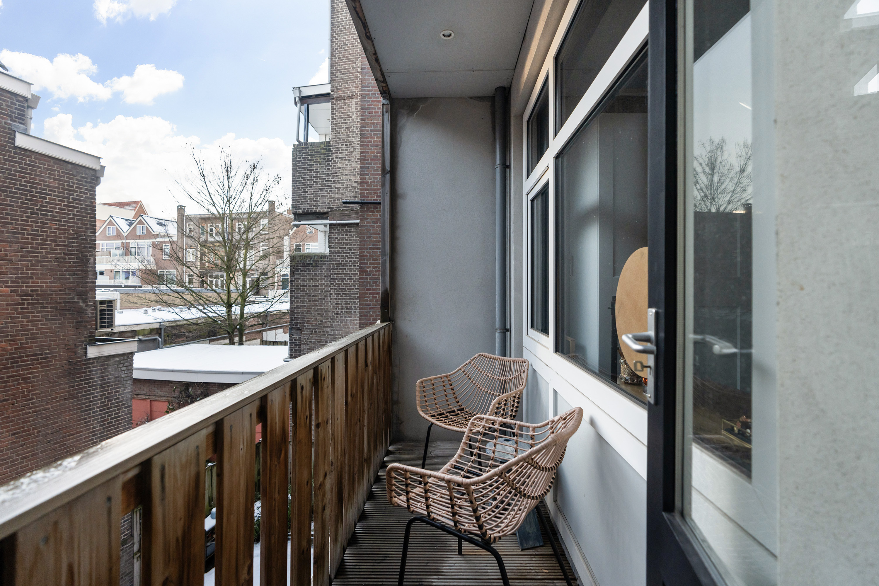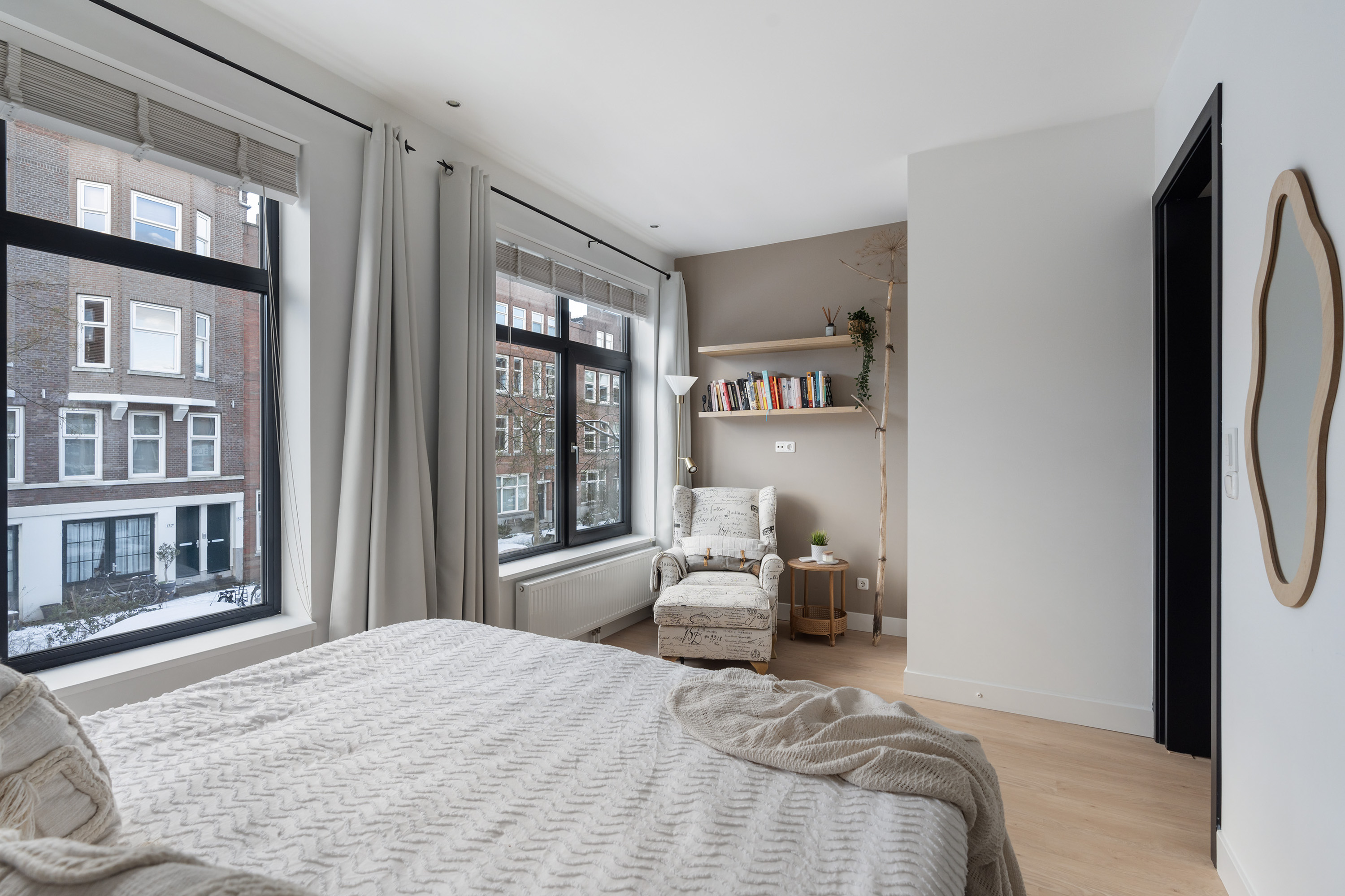 Via de entree kom je binnen op de lichte en ruime woonverdieping waar wonen, koken en eten mooi in elkaar overlopen. De moderne staal look deuren geven direct een stijlvolle eerste indruk. De woonkamer voelt open en uitnodigend aan en dankzij de grote raampartijen valt er veel natuurlijk licht naar binnen. De open keuken is modern uitgevoerd en van alle gemakken voorzien, waaronder een magnetron, oven, gas kookplaat, afzuigkap, vaatwasser en een wijn klimaatkast. De keuken is prettig gepositioneerd ten opzichte van de eetruimte en vormt het hart van de woning. Via de strakke schuifpui uit 2022 stap je zo het balkon op, gelegen op het zuidwesten. Een heerlijke plek voor een kop koffie in de zon of een borrel aan het einde van de dag. Vanaf het balkon leidt een trapje direct naar de achtertuin. Ook deze is gelegen op het zuidwesten en biedt volop privacy en zon. Een fijne buitenruimte waar je midden in de stad heerlijk kunt genieten.