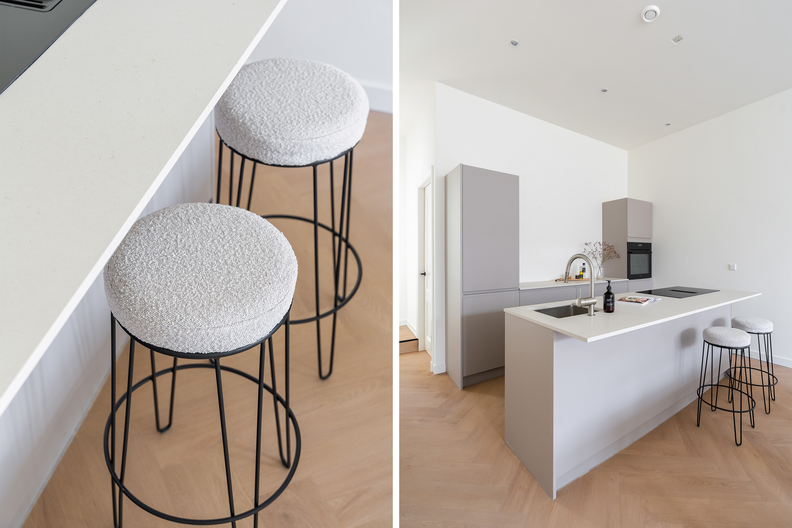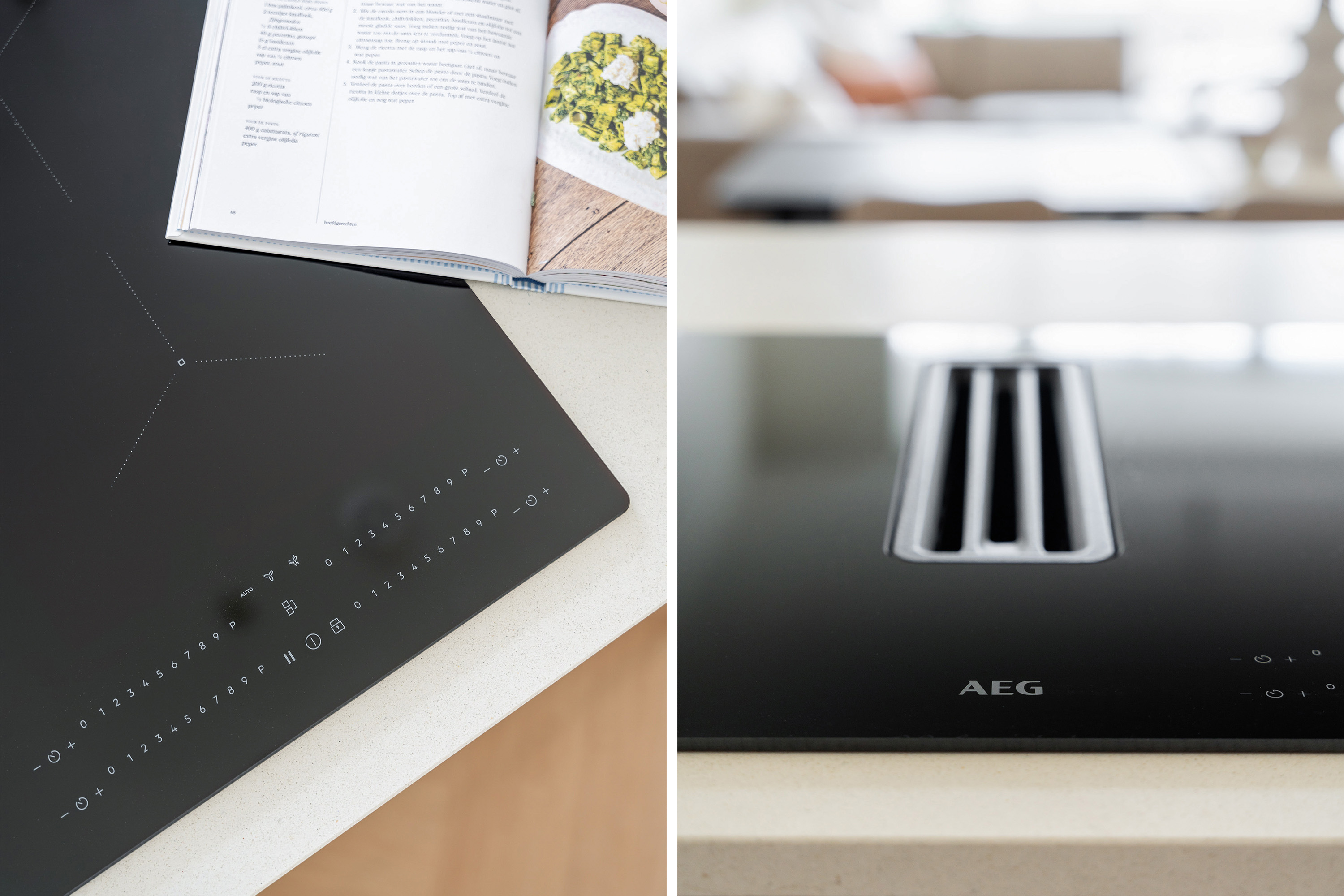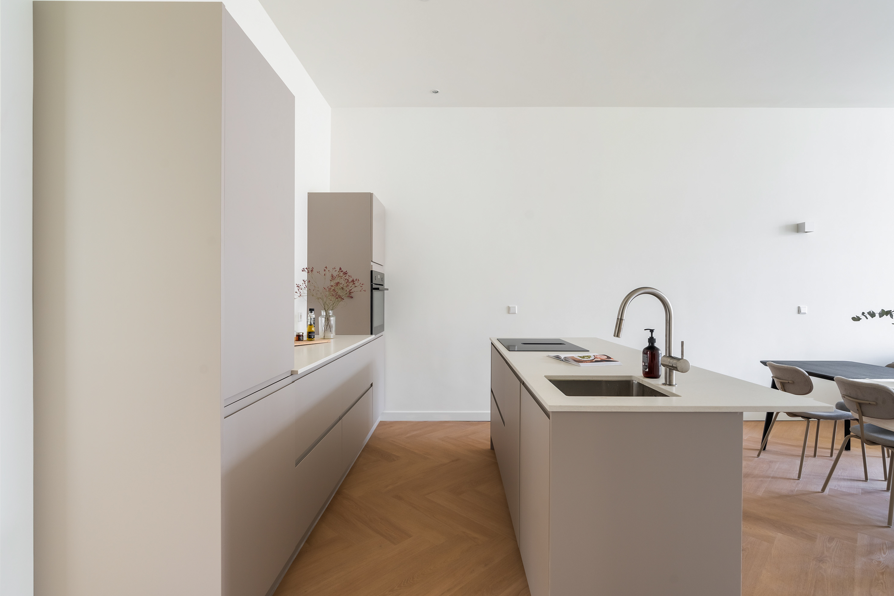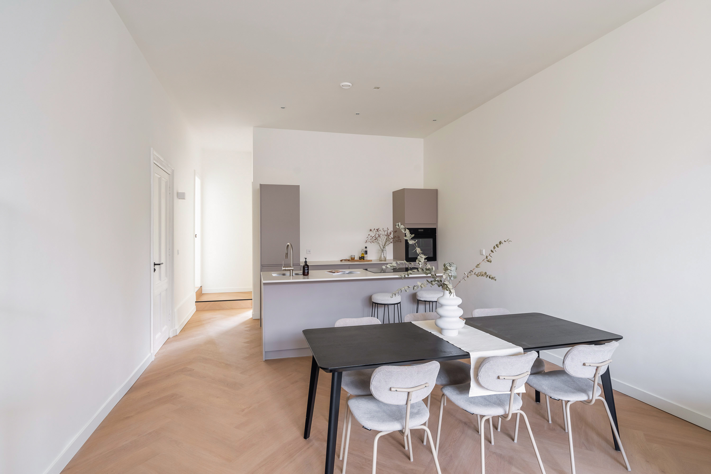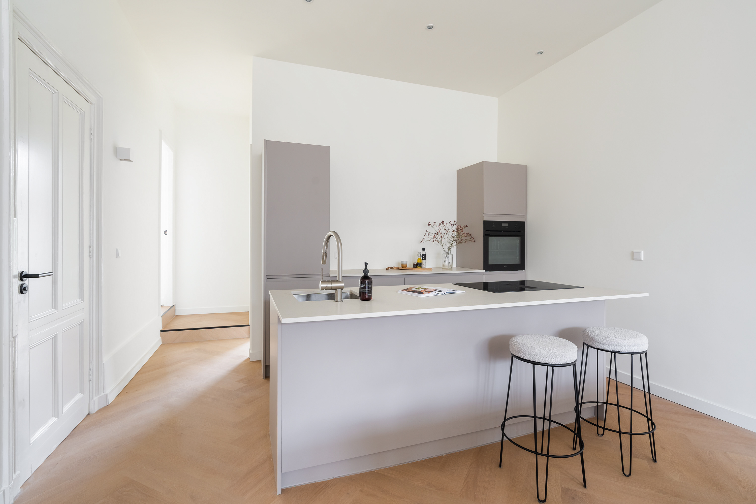 Aangrenzend vind je de moderne open keuken, die werkelijk van alle gemakken is voorzien. Denk aan hoogwaardige AEG-apparatuur, een inductiekookplaat, oven, een vaatwasser en een ruime koel-/vriescombinatie. De strakke, greeploze fronten en het werkblad zorgen voor een tijdloze en elegante uitstraling, een droom keuken waar je graag in kookt én gasten ontvangt. Omdat de woning volledig gerenoveerd is, ben jij de eerste bewoner en maakt gebruik van gloednieuwe inbouwapparatuur.
