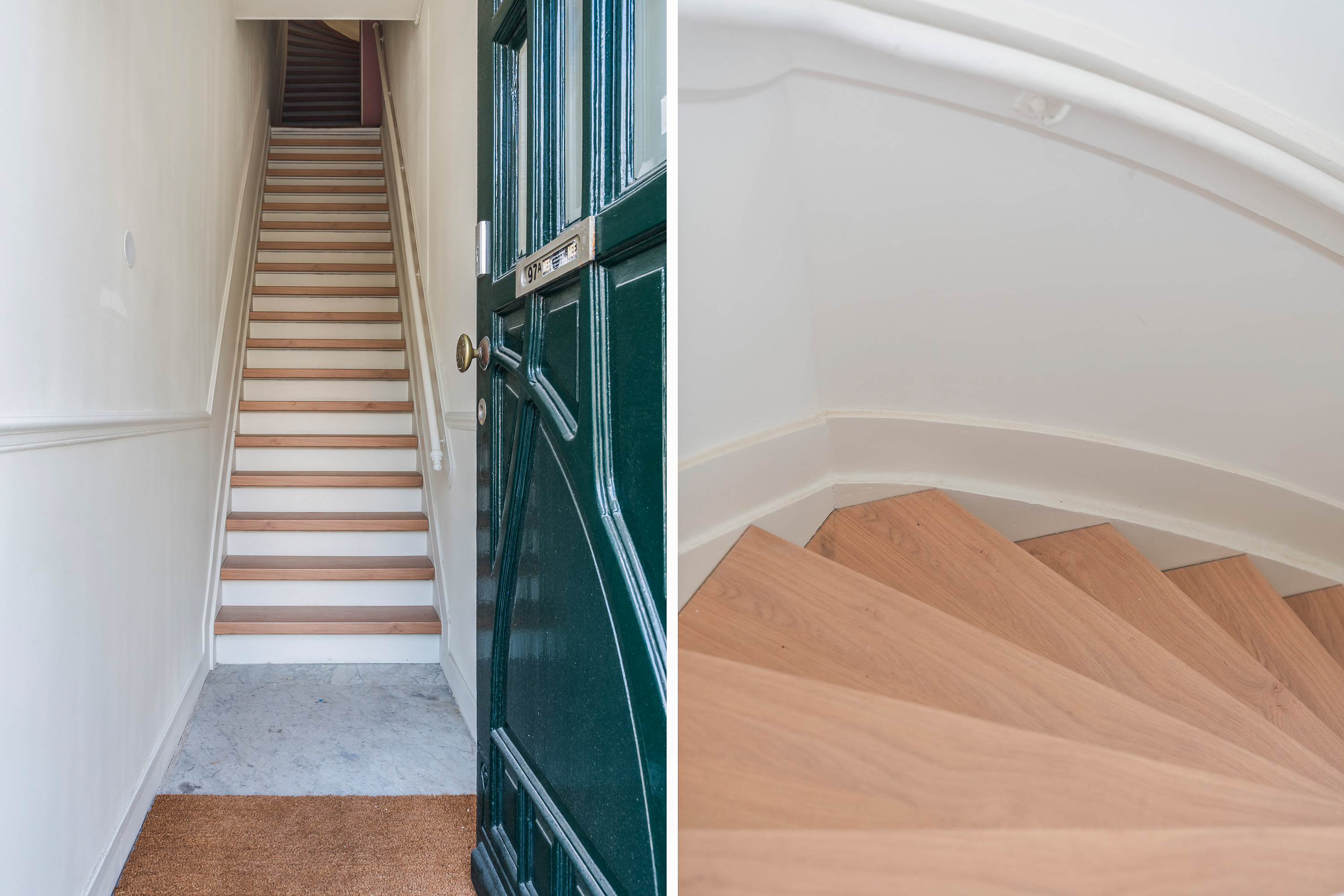 Via de gezamenlijke voordeur op straatniveau betreed je het pand. De trap leidt je naar de tweede verdieping waar de woning zich bevindt.