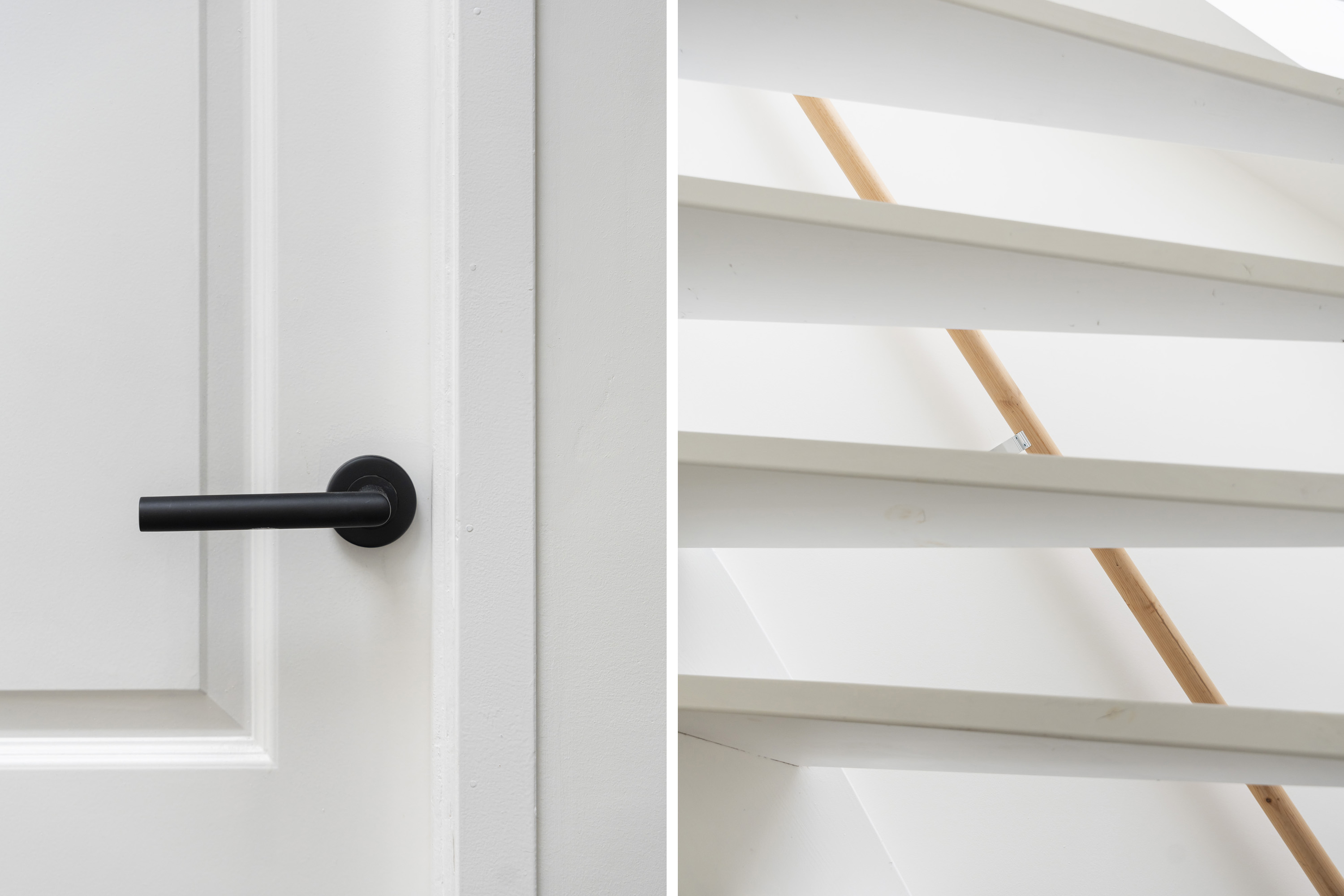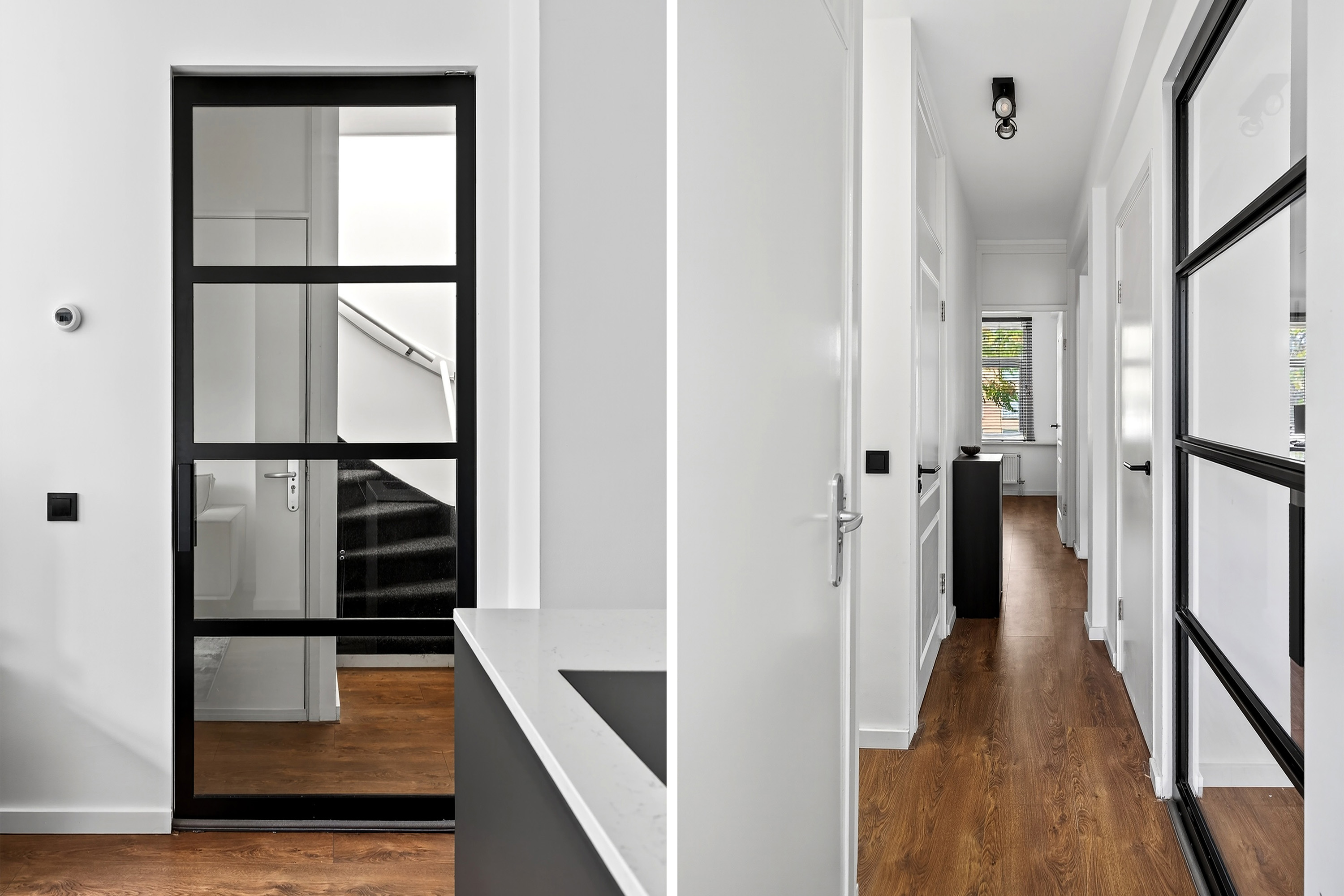 Via de entree met stijlvolle stalen deur betreed je de verdieping. De hal vormt de centrale as van deze woonlaag en biedt toegang tot alle vertrekken.