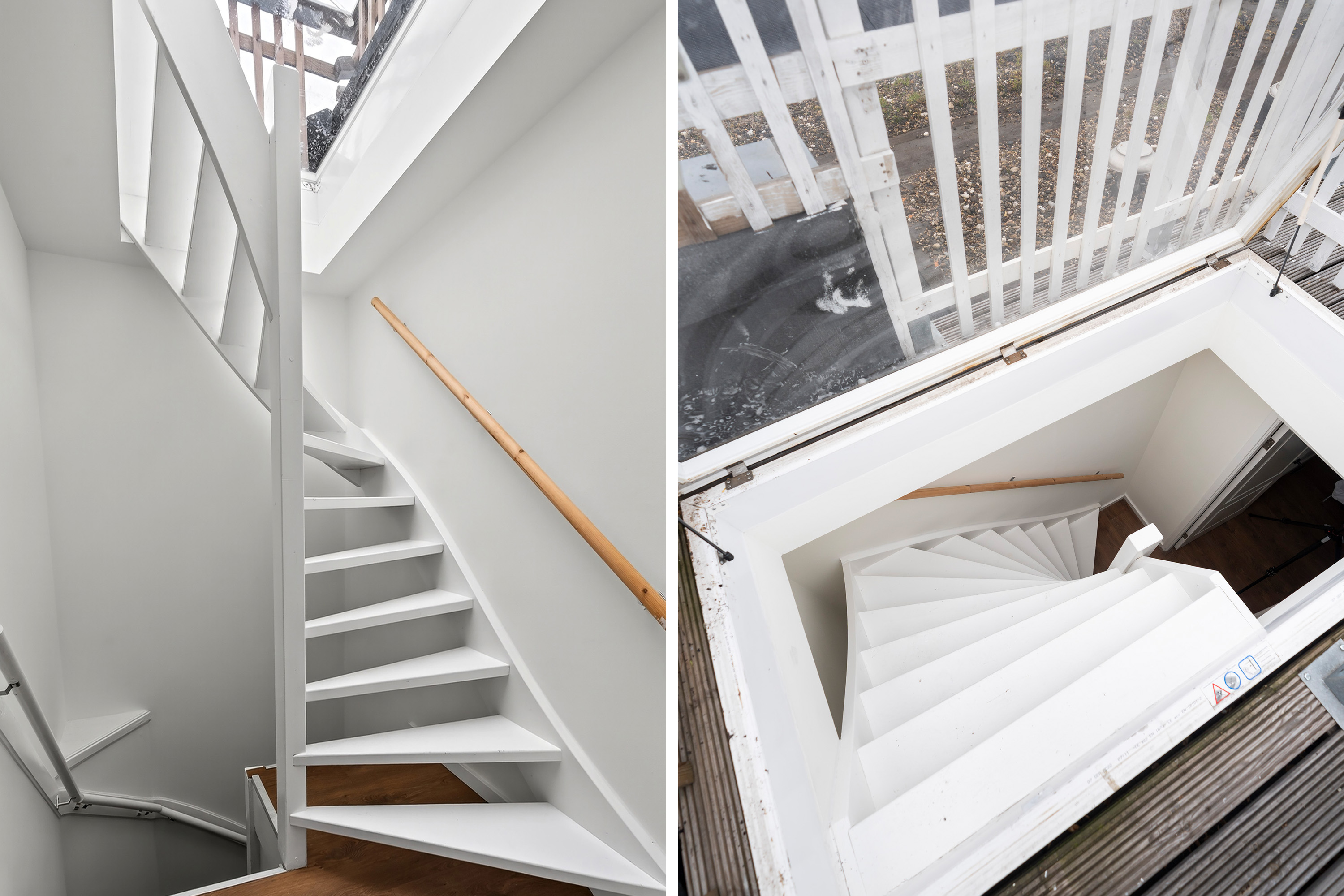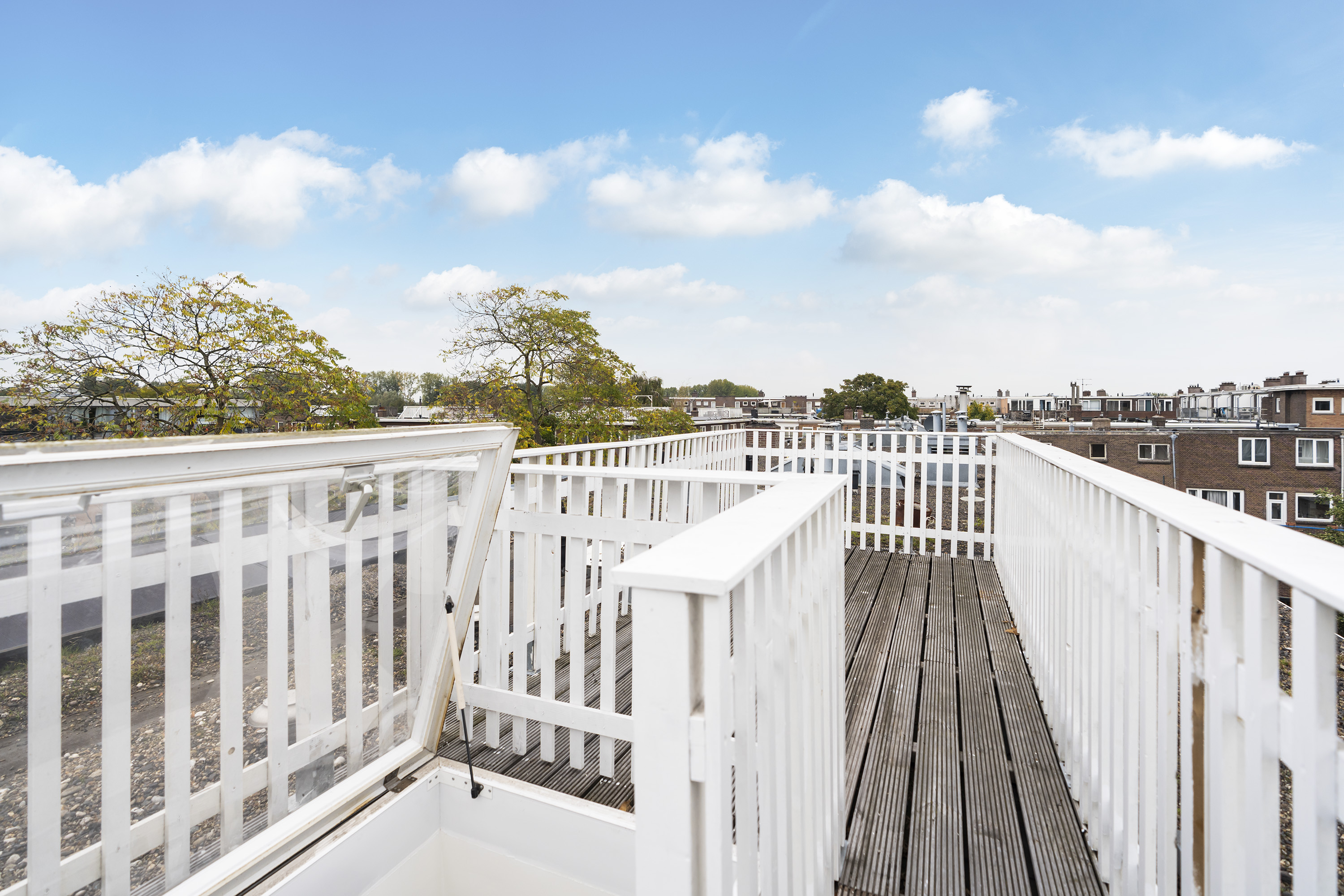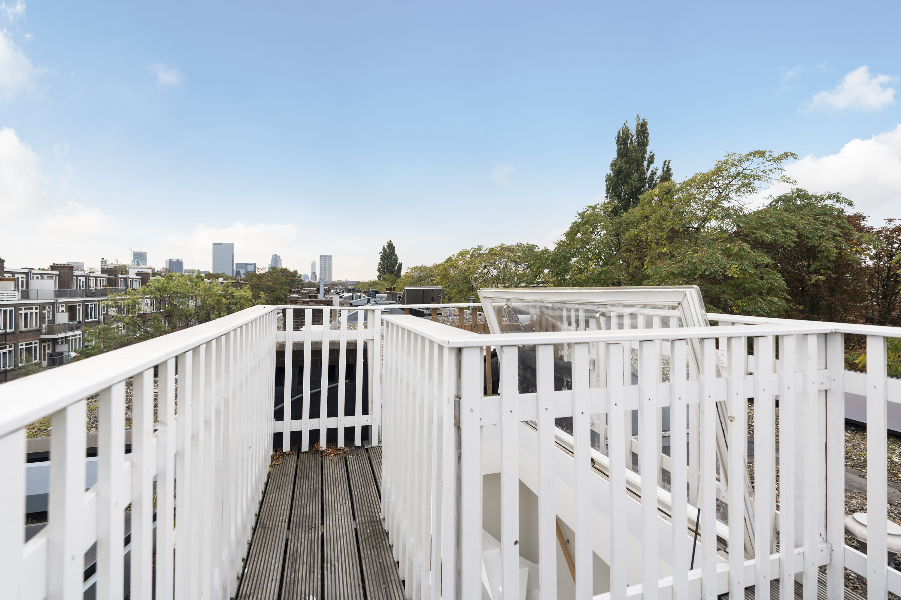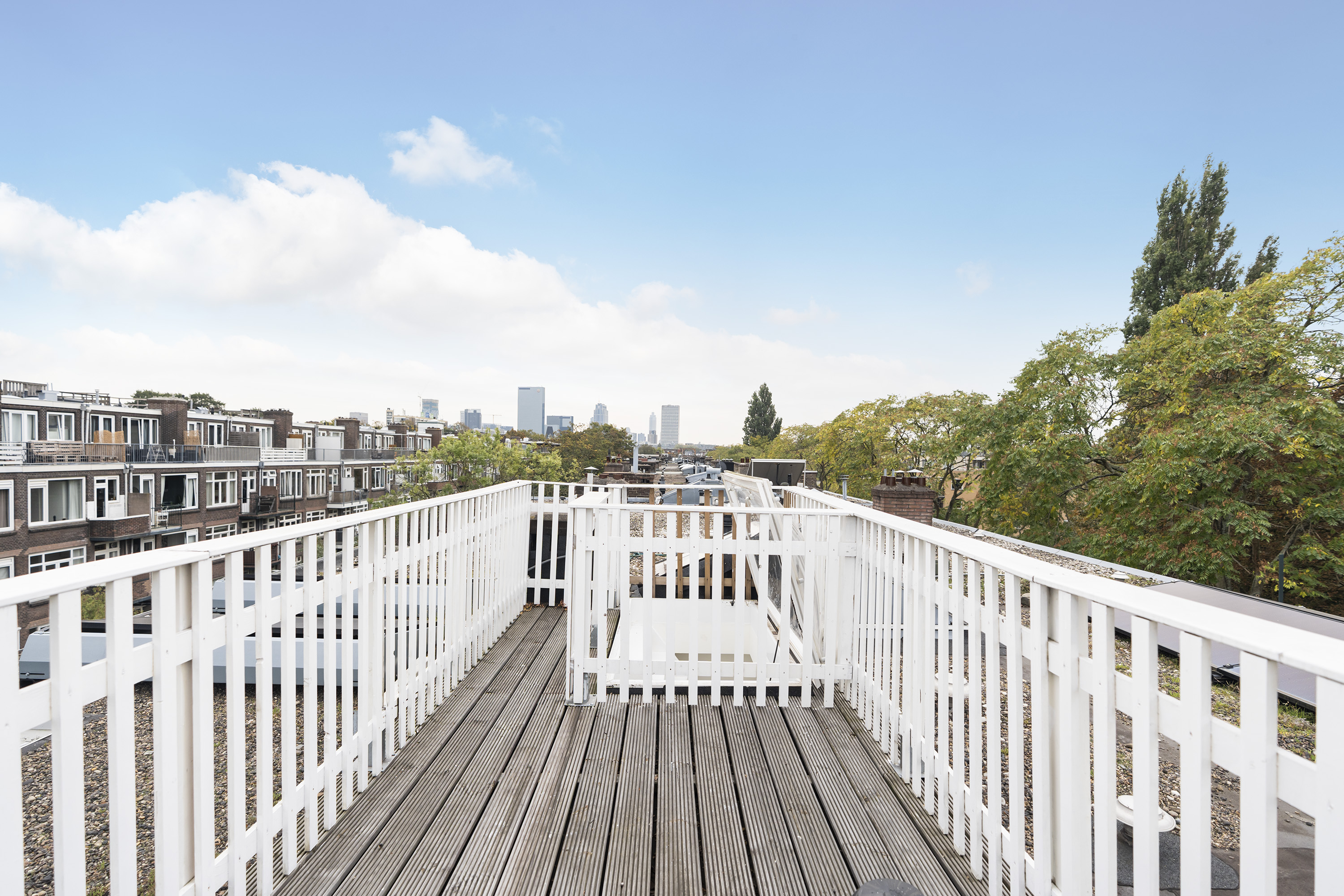 Als kroon op de woning wacht het dakterras. Deze is bereikbaar via een vaste trap vanaf de derde verdieping. Hier, hoog boven de stad en omringd door rust en ruimte, geniet je van een ongeëvenaard uitzicht over de indrukwekkende skyline van Rotterdam.