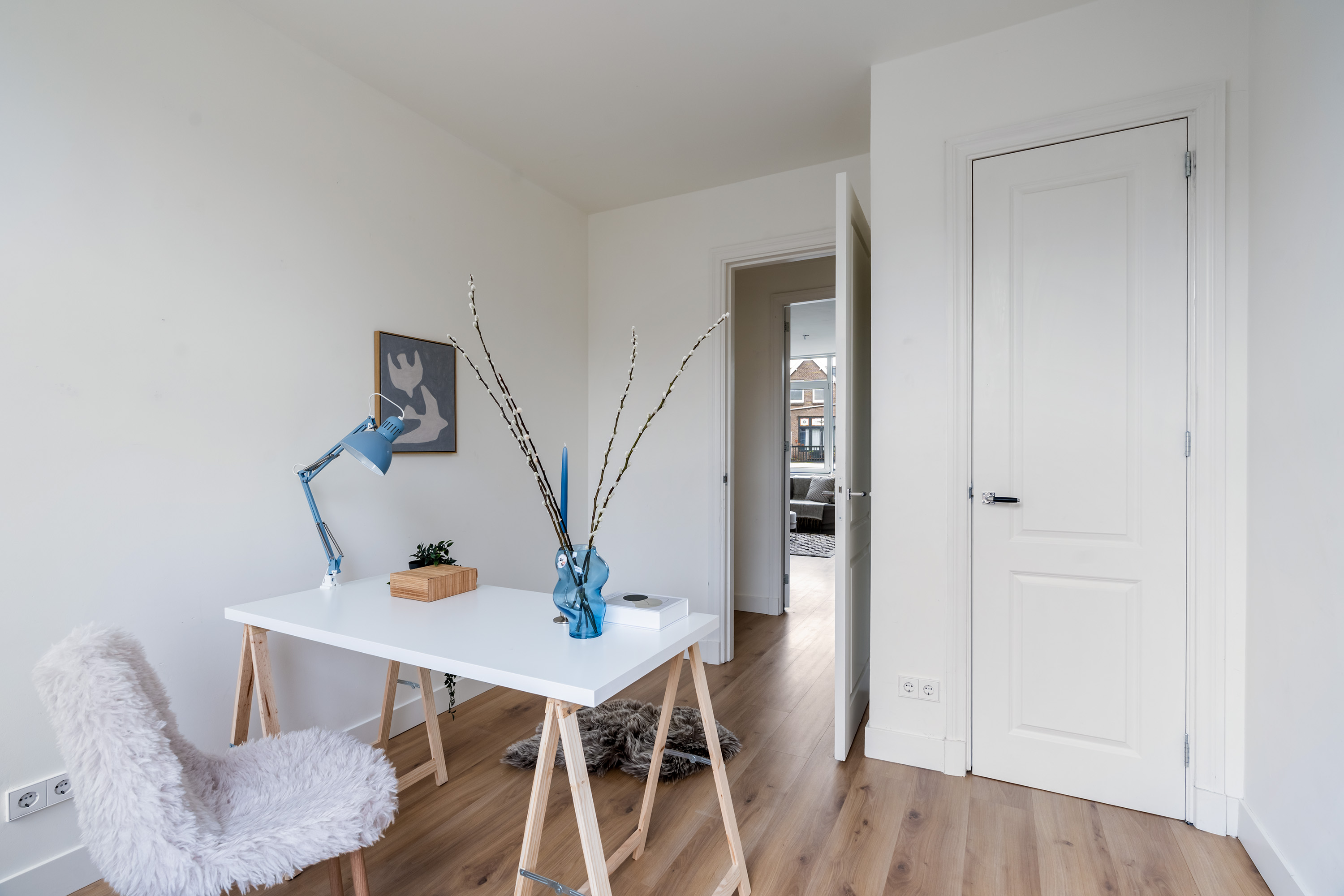 Op deze verdieping vind je daarnaast twee kamers die ideaal zijn als werkplek, logeerkamer of hobbyruimte. Verder is er een separaat toilet en de trapopgang naar de bovenste verdieping.
