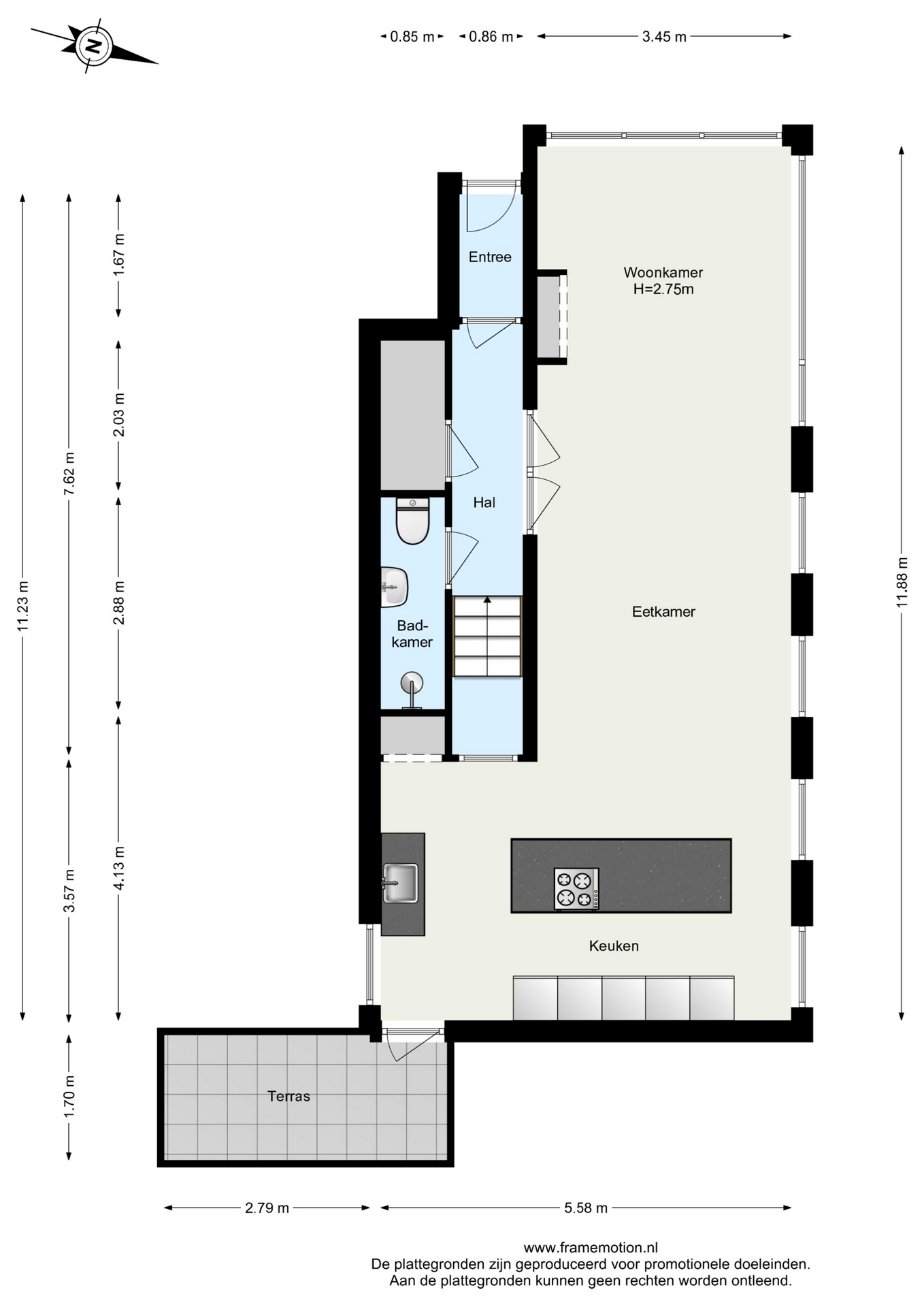 Voor de afmetingen en indeling zie onze gedetailleerde plattegrond.