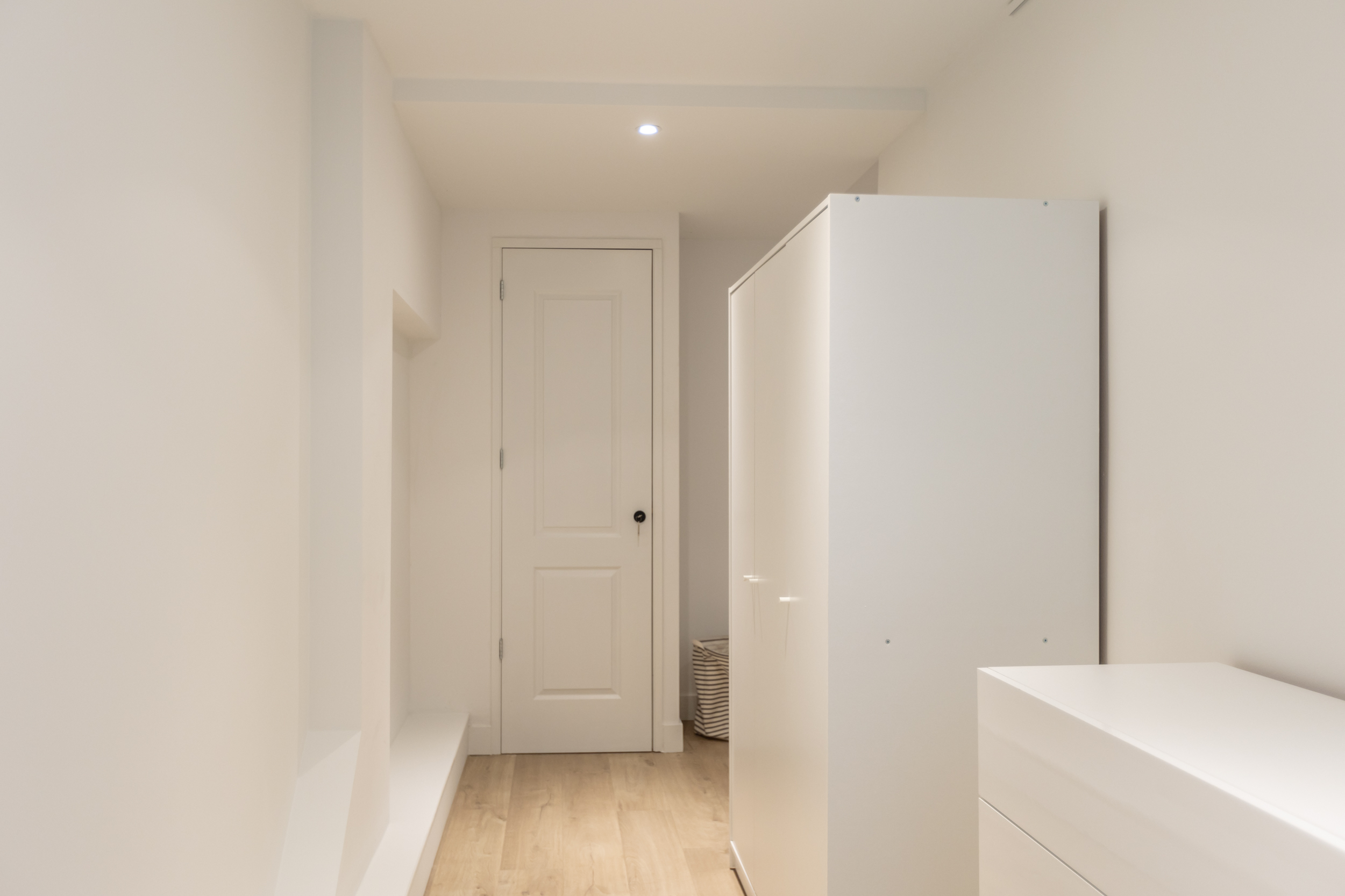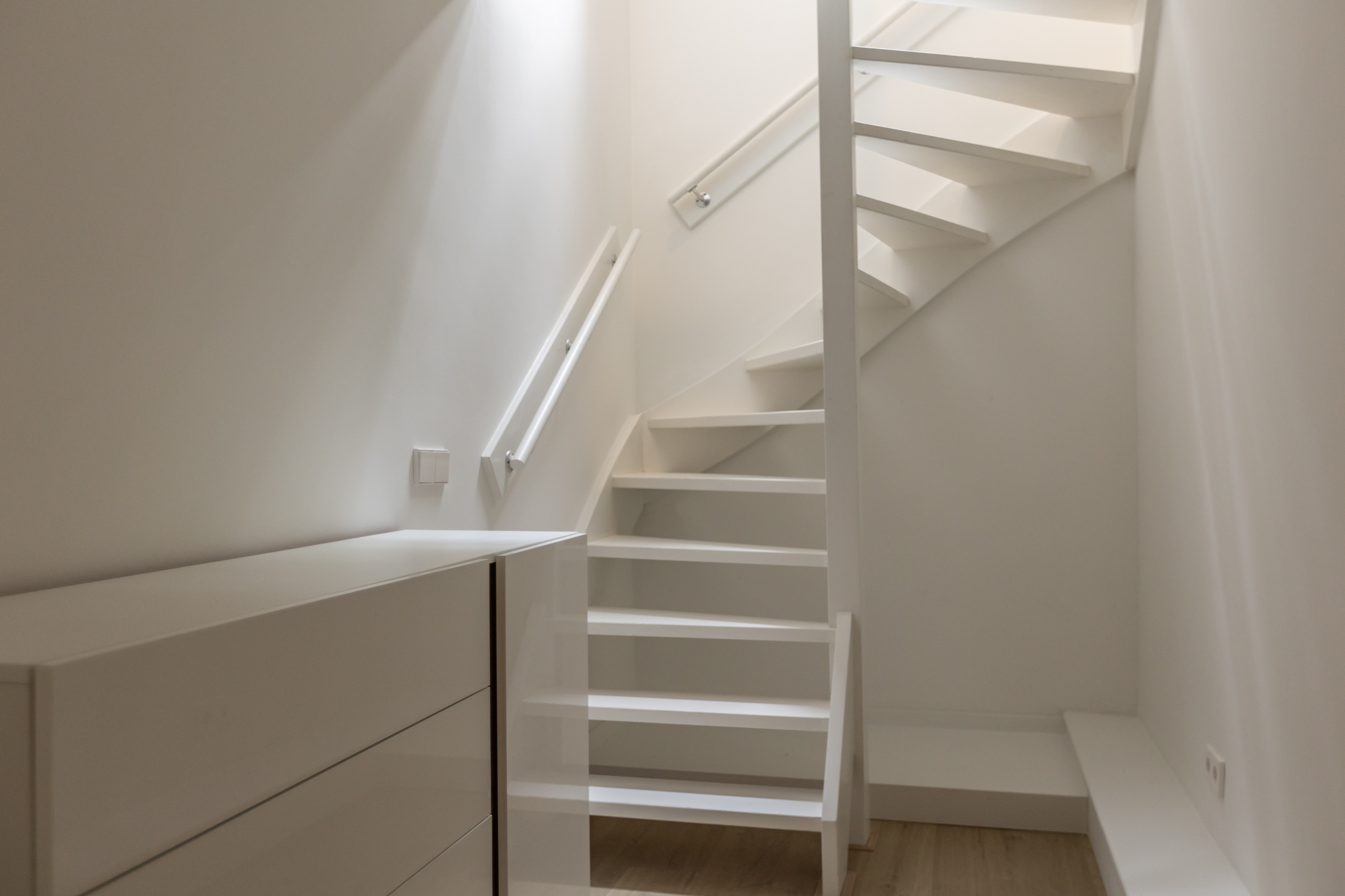Vanuit de hal met de mogelijkheid tot opstellen van je kasten kom je middels een vaste trap in de slaapkamer.