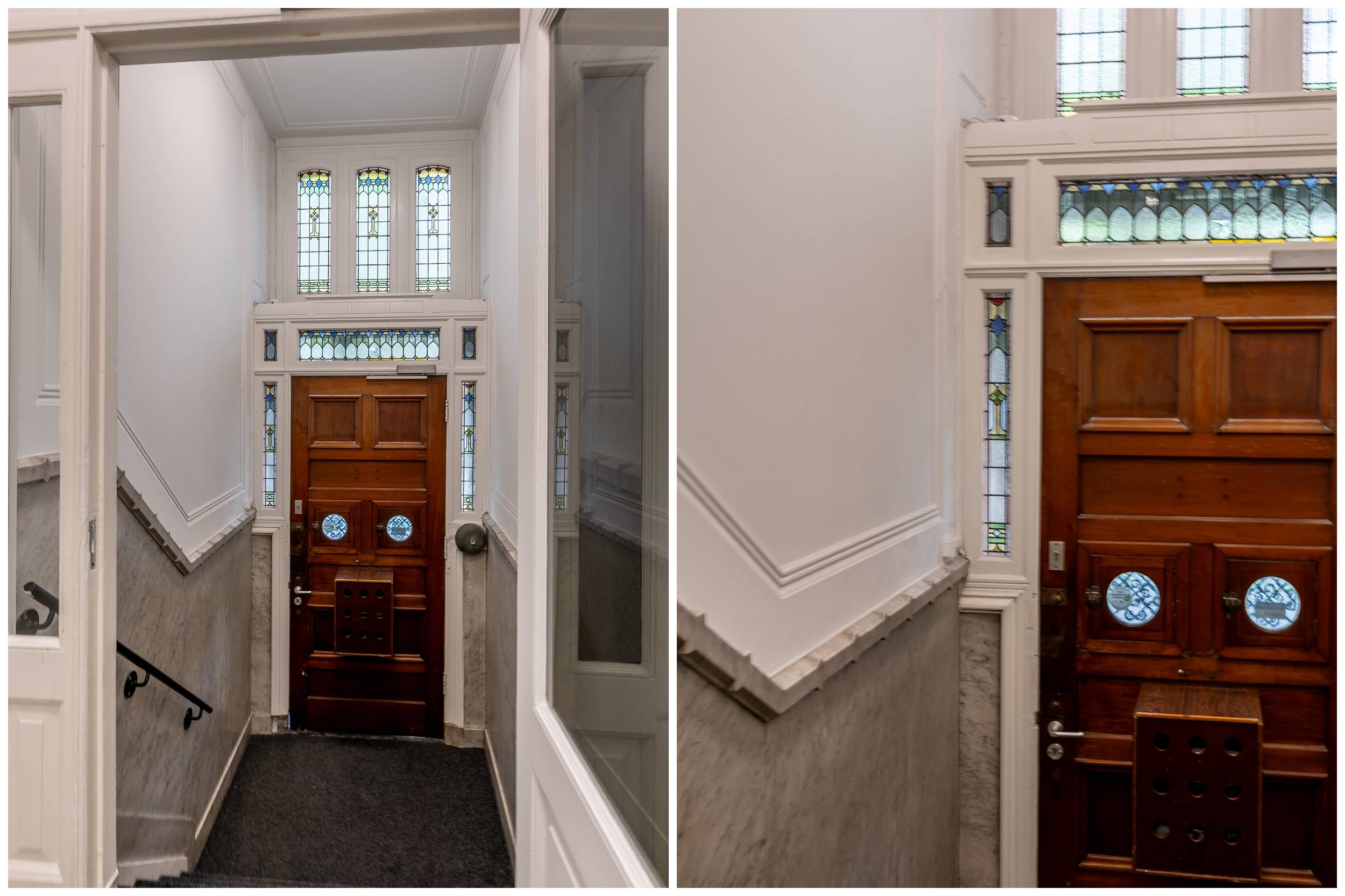 Dit klassieke gebouw betreed je middels een imposante voordeur voorzien van originele details zoals lambrisering en glas-in-lood in de tochtportaal. Dat is nog eens binnenkomen. Via dit portaal kom je in de zeer ruime, hoge hal met statig trappenhuis bereik je je nieuwe city appartement.