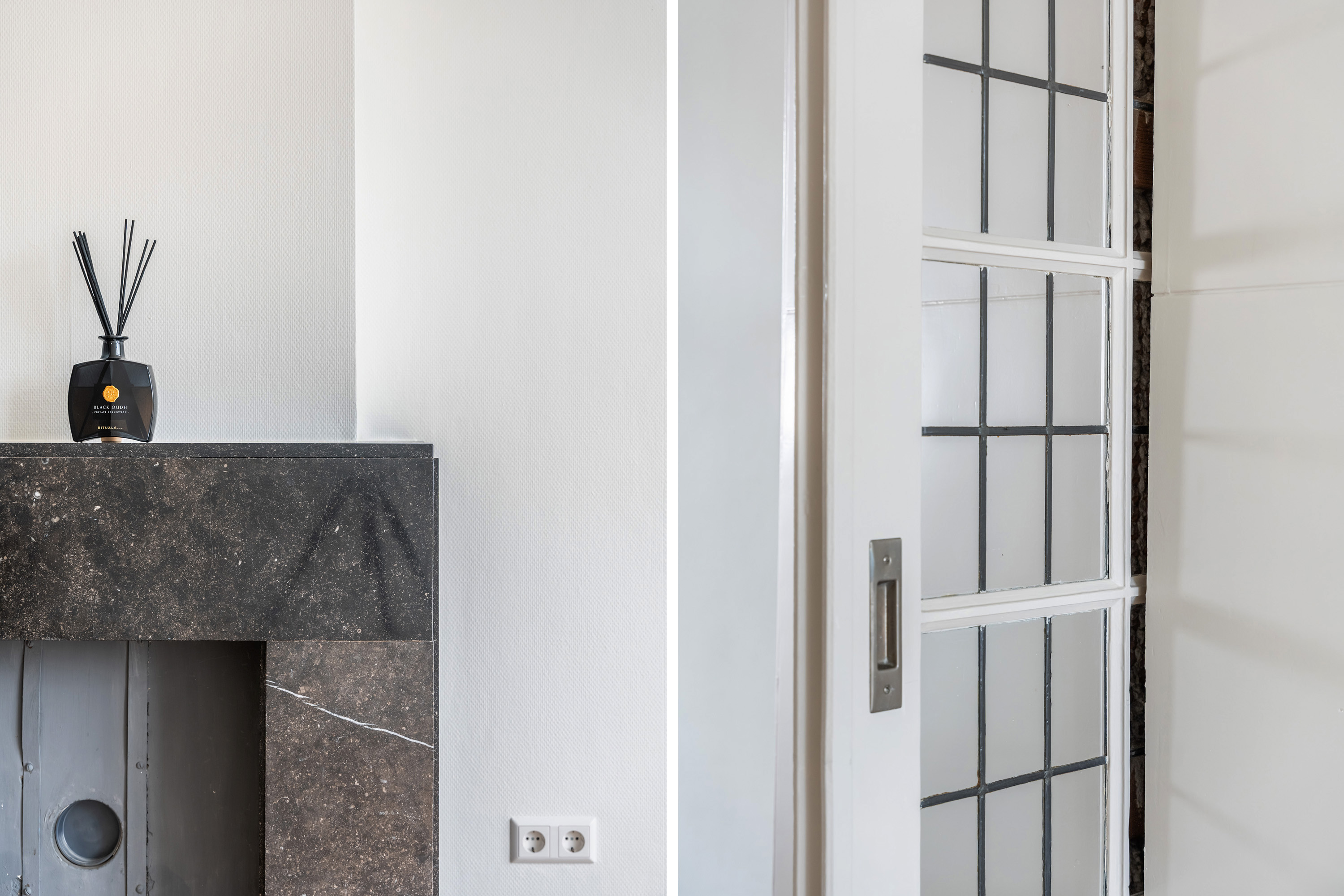 Vanuit de hal zijn alle vertrekken bereikbaar. De ruime woonkamer met en suite deuren naar de eetkamer ademt karakter, mede dankzij de prachtige glas-in-lood schuifdeuren en de vaste kasten. Dit zorgt voor een warme, klassieke sfeer. Dankzij de grote ramen aan beide zijden geniet de ruimte van veel natuurlijk licht. De eetkamer kan bovendien eenvoudig worden ingericht als extra slaapkamer, mocht daar behoefte aan zijn.