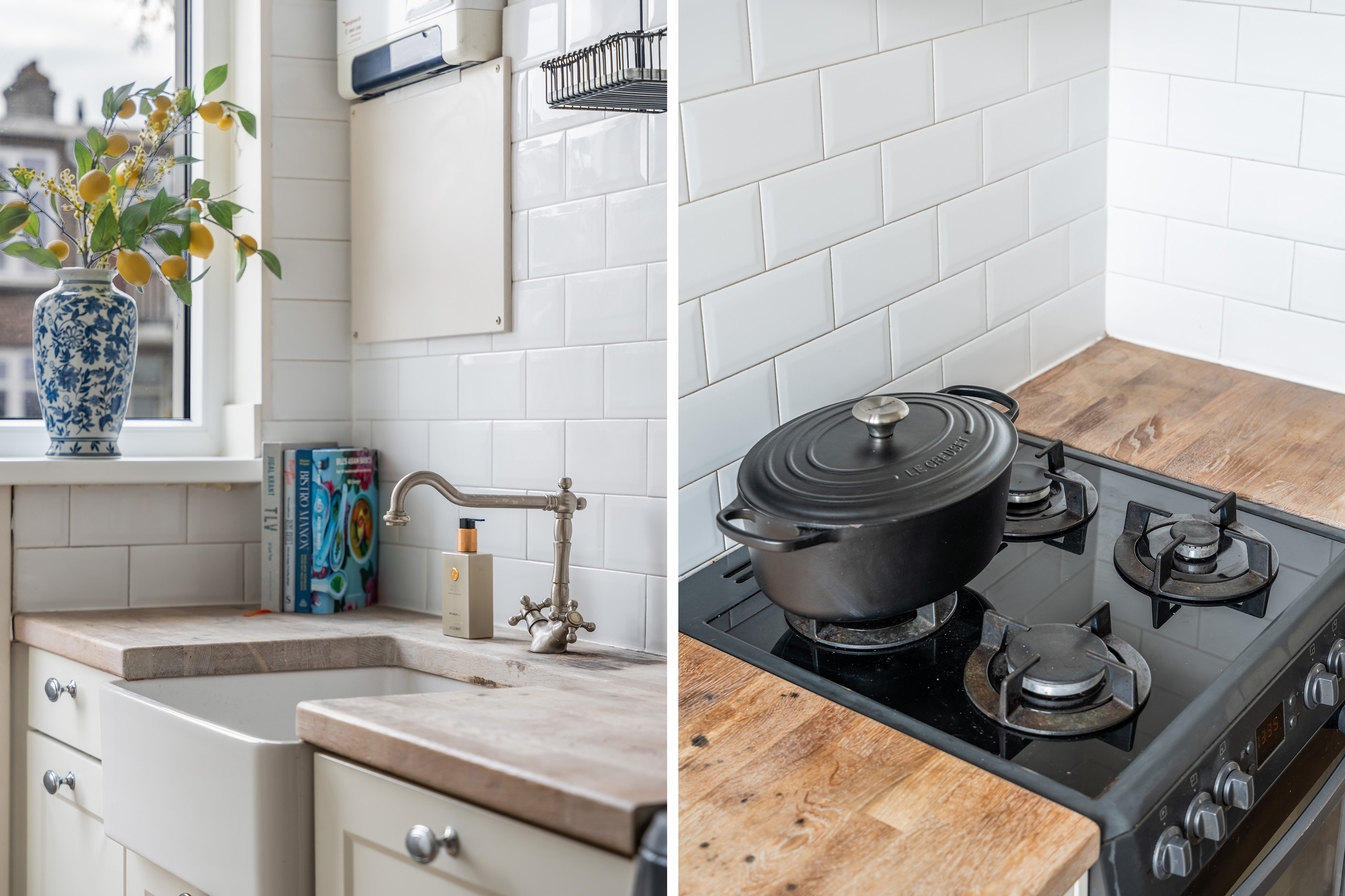 De nette keuken is voorzien van een vaatwasser, 4-pits gasfornuis, afzuiging en elektrische oven.