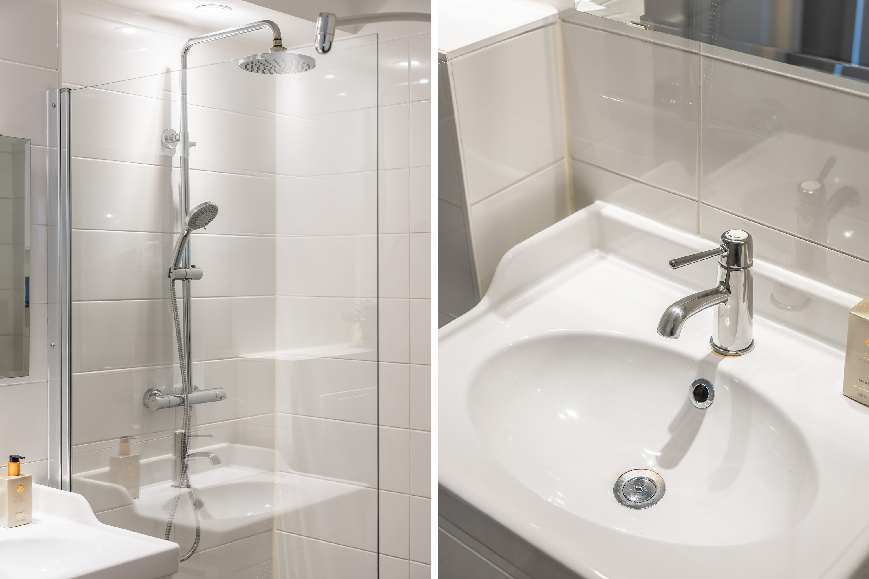 Er zijn twee slaapkamers aanwezig, één aan de voorzijde en één aan de achterzijde. De badkamer is modern betegeld en beschikt over een inloopdouche, wastafel met meubel en zwevend toilet.