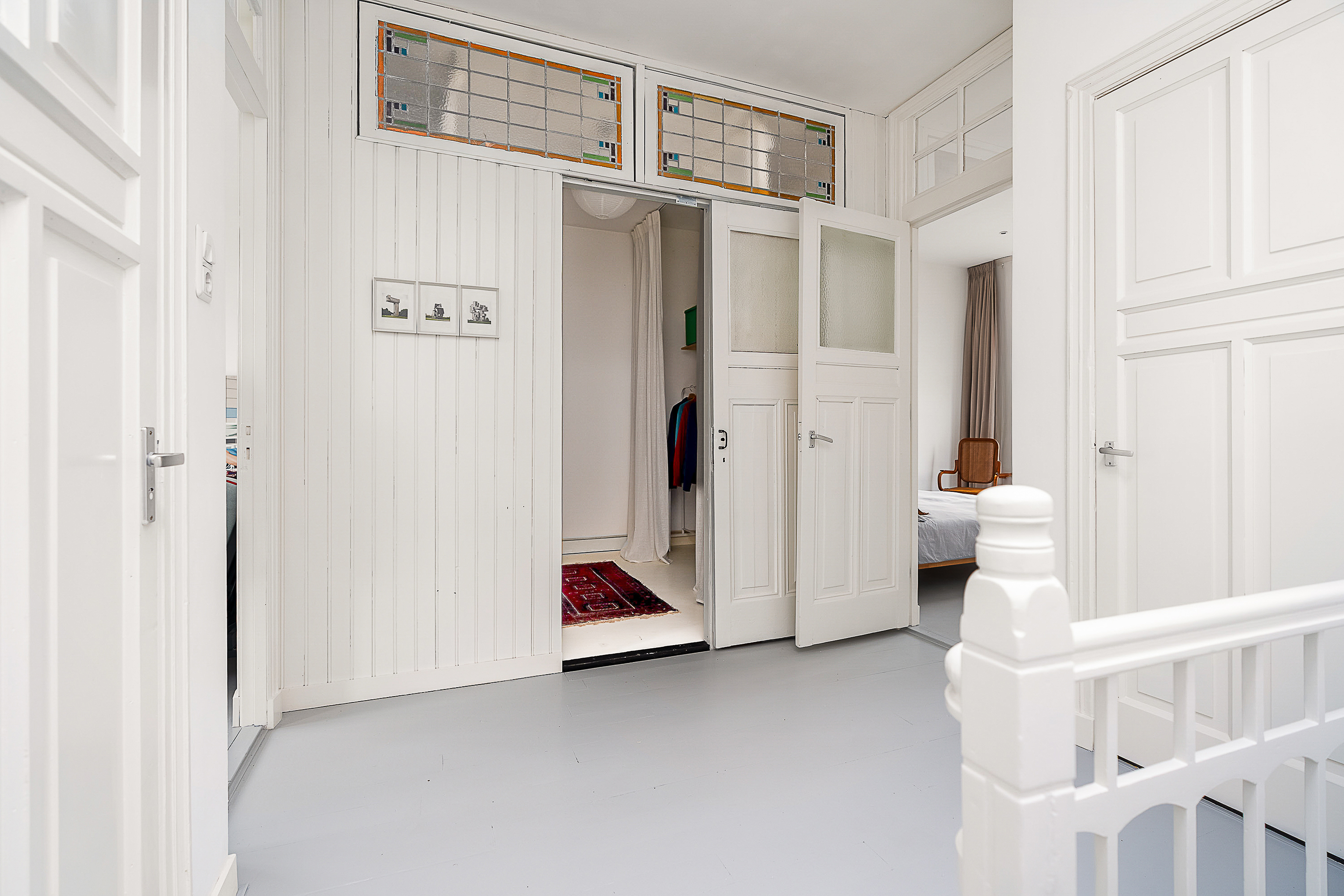 De royale doorzon living is een heerlijke plek om te ontspannen, met een ruime woonkamer aan de voorzijde en een eetkamer aan de achterzijde. De prettige indeling van de ruimte valt direct op, de eikenhouten vloer en originele details geven het geheel een warme uitstraling. Naast het woonkamer gedeelte is een aparte werkkamer aanwezig, welke afsluitbaar is doormiddel van openslaande deuren. Aan de achterzijde bevindt zich een van de twee balkons op deze verdieping, gelegen op het zuiden waar je rustig de hele dag van de zon kunt genieten met uitzicht op het groen. De open keuken is modern uitgevoerd met donkere fronten, een terrazzo werkblad en voldoende kastruimte, perfect voor wie van koken houdt De tweede badkamer is modern afgewerkt met ligbad, wastafelmeubel, inloopdouche en toilet. Aan de voorzijde is het kleinere 2e balkon te vinden. Terug op over ruime overloop, vind je hier de trap die naar de tweede verdieping brengt.