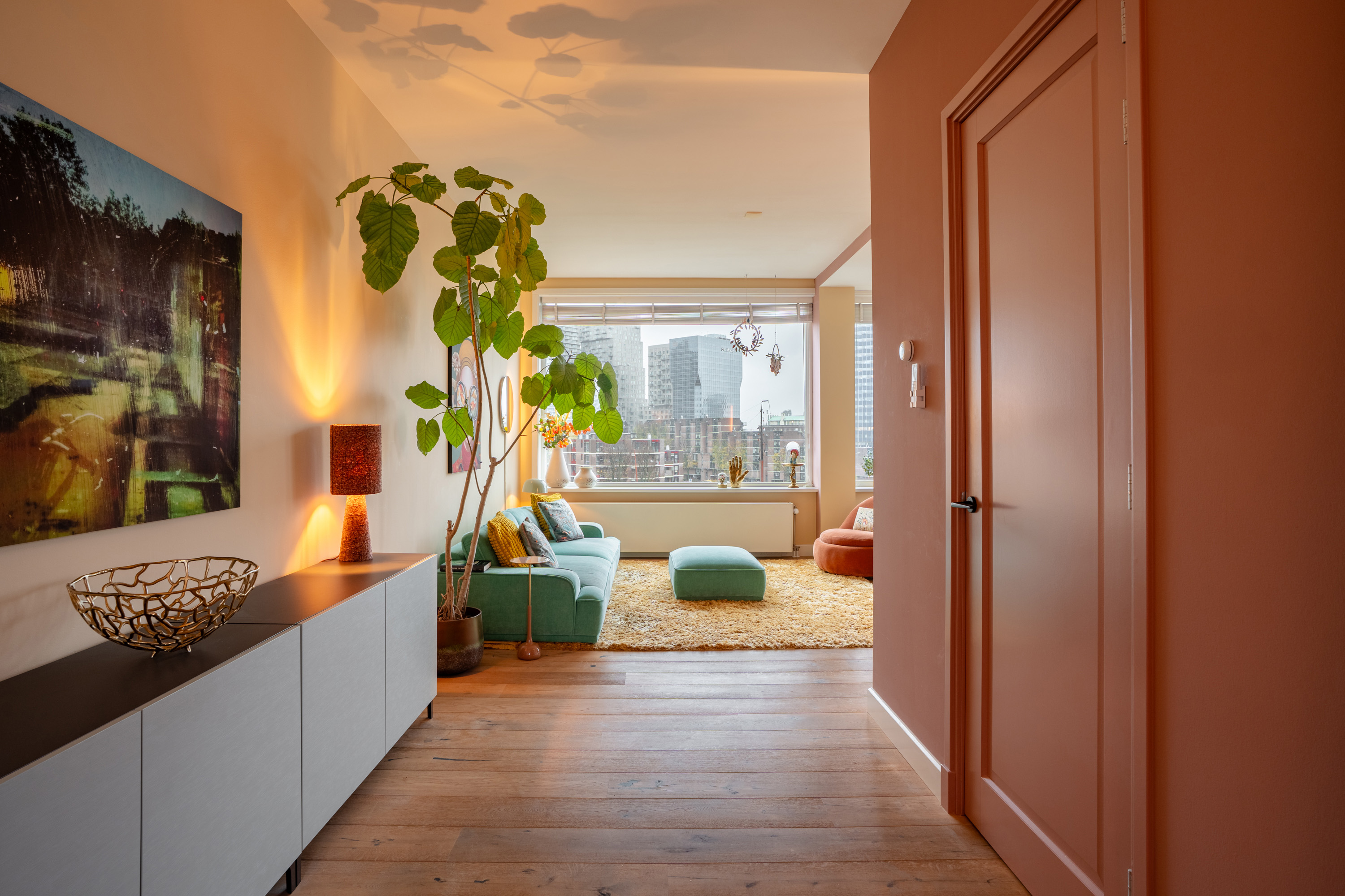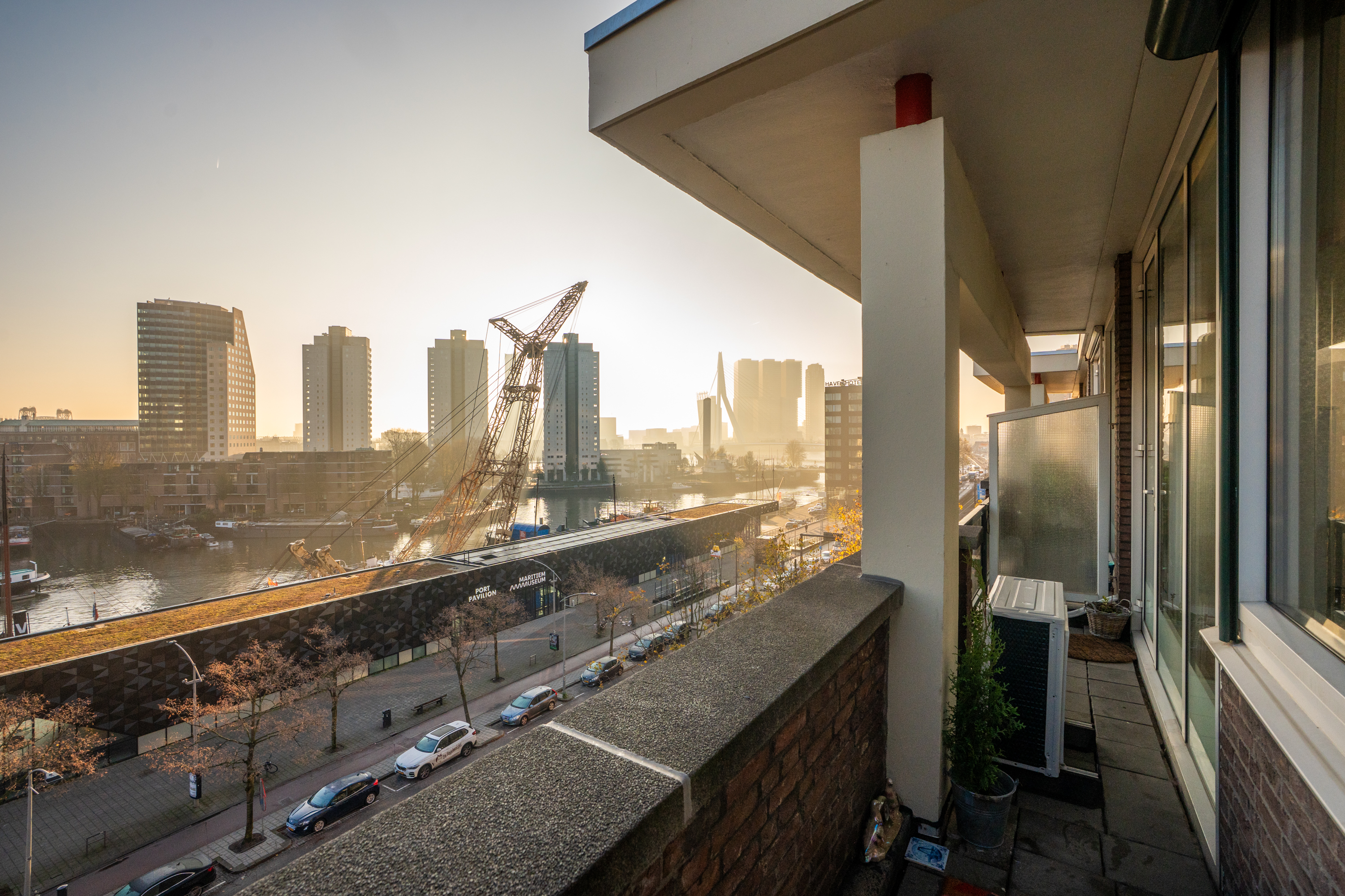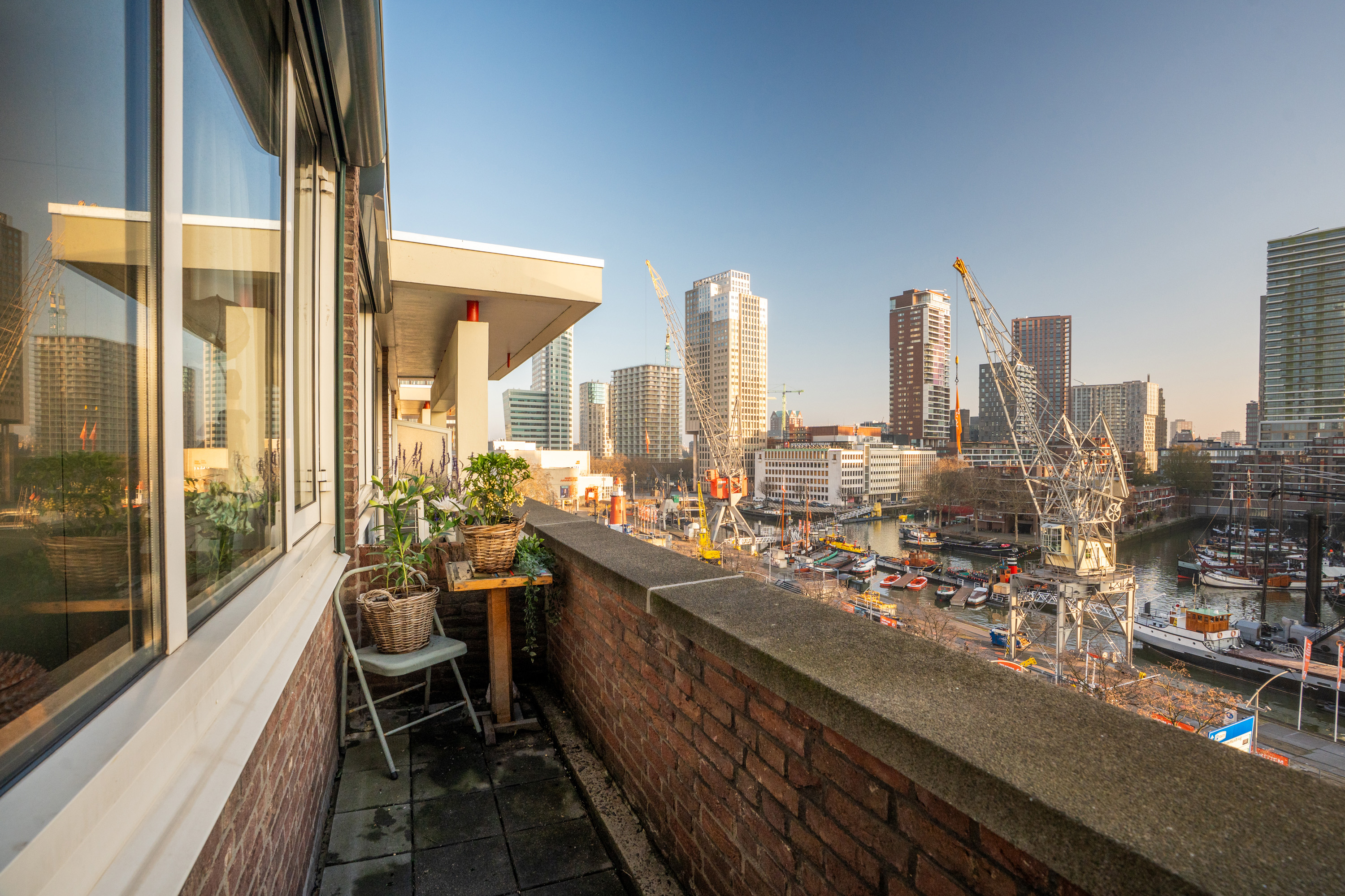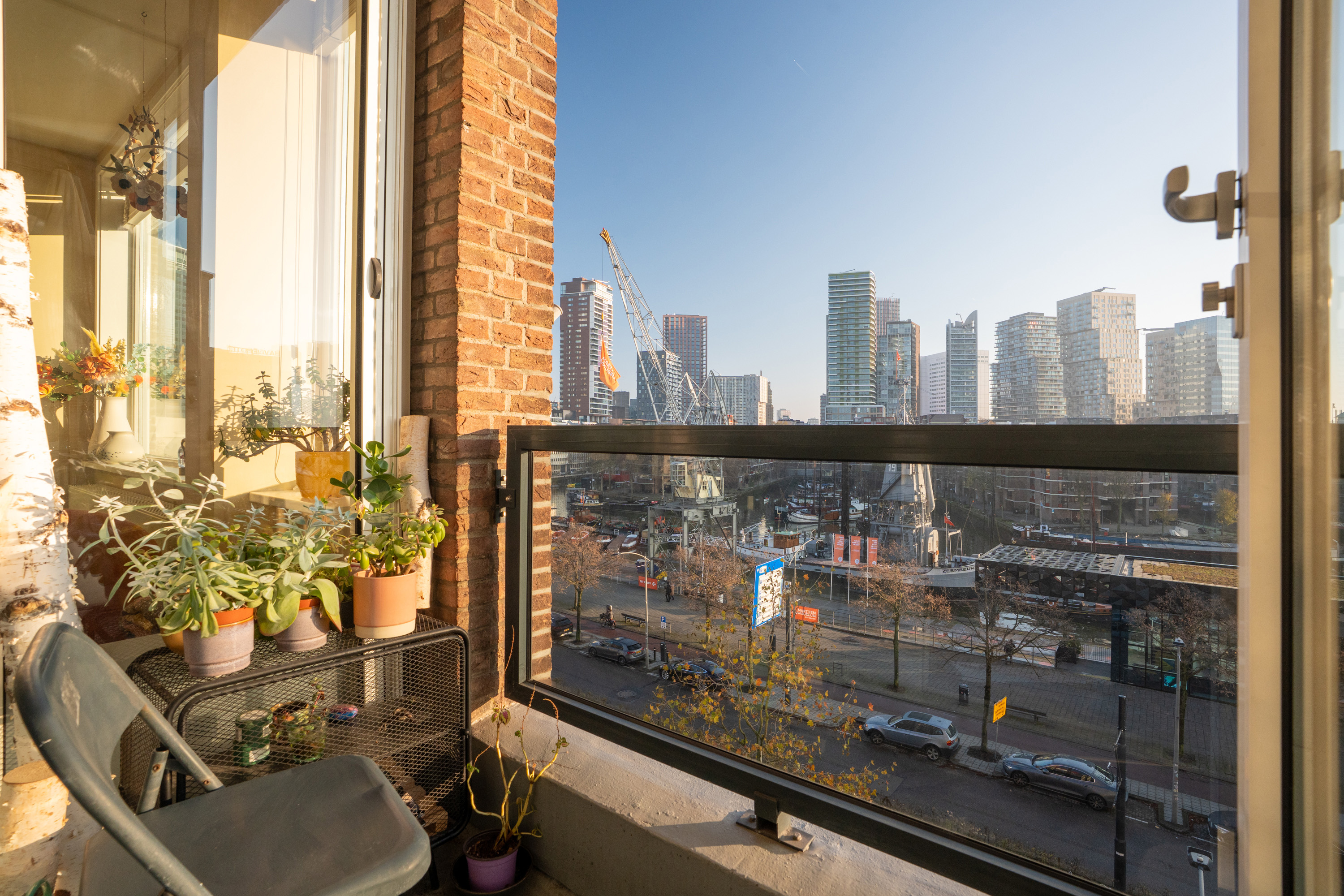 Een dubbele bovenwoning met een heerlijk buitenleven, midden in de stad! Dit stijlvolle en ruime 3-kamer appartement biedt een prachtig uitzicht over de Leuvehaven, het Maritiem District, de Erasmusbrug en de skyline van Rotterdam. De woning beschikt over twee balkons en een zeer royaal dakterras van circa 30 m2. Direct voor de deur verrijst een groene kade met bomen en recreatieve mogelijkheden: een lommerrijke promenade midden in het centrum waar je straks dagelijks op uitkijkt (gereed eind 2027). Een unieke combinatie van groen, water en stedelijke dynamiek, terwijl alles wat de stad te bieden heeft zich op loopafstand bevindt. Wat een droomwoning op een toplocatie!