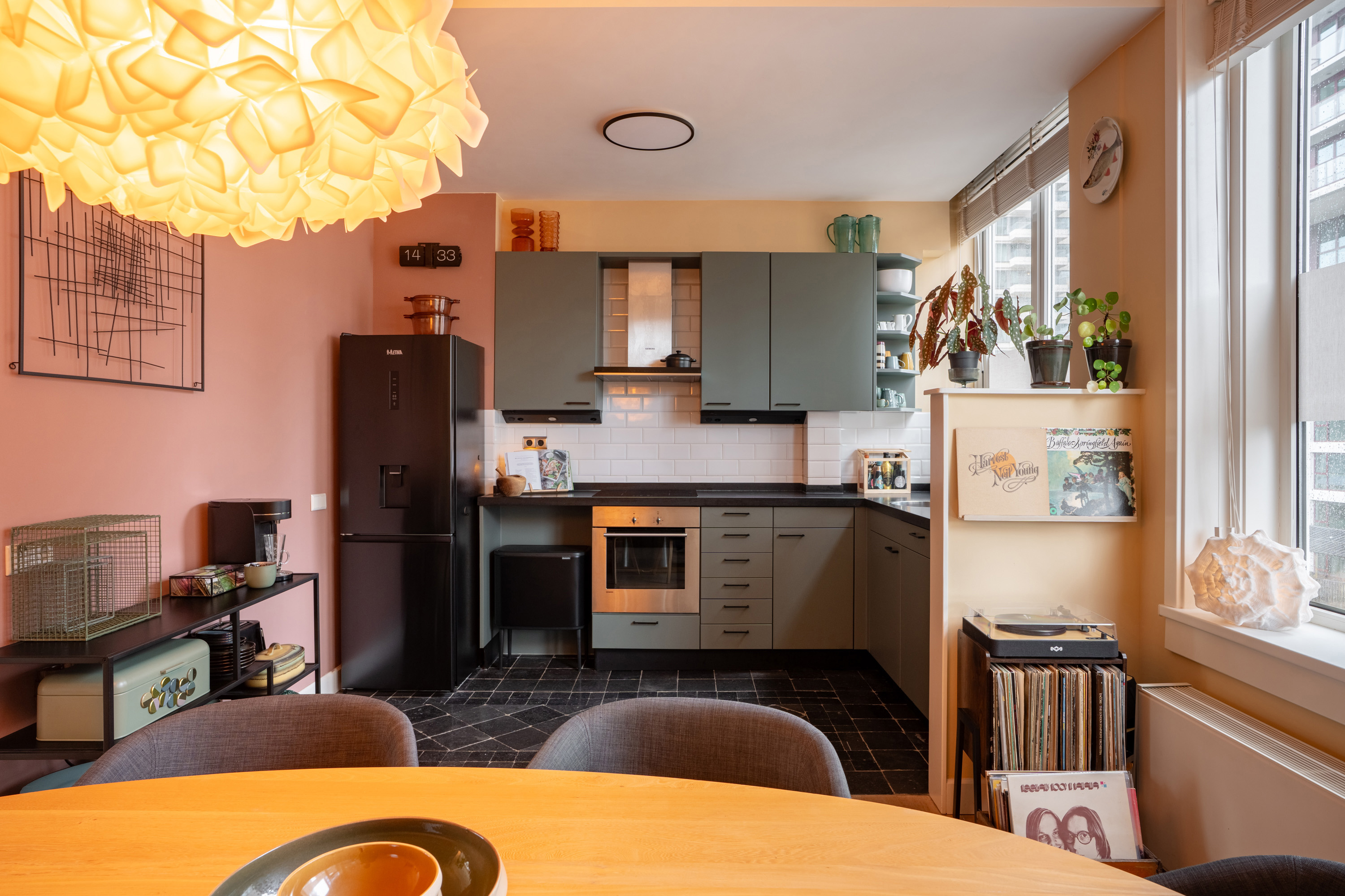 Vanuit de hal is onder andere het royale leefgedeelte te bereiken. Deze ruimte heeft een perfecte indeling met aan de ene zijde de woonkamer en aan de andere zijde de woonkeuken, waardoor er een mooie scheiding ontstaat tussen ontspannen en koken, zonder dat de open en ruime sfeer verloren gaat. Daarbij zorgt de houten vloer voor een warme én huiselijke sfeer. Vanuit de woonkamer zorgen de grote raampartijen niet alleen voor heerlijk veel lichtinval, maar ook voor een weids uitzicht over de Leuvehaven met de Rotterdamse hoogbouw op de achtergrond en zelfs de iconische Erasmusbrug in zicht. Elke dag begint én eindigt met een prachtig stadsdecor! Dit uitzicht zet zich voort op het balkon dat is gelegen op het oosten, waardoor je in de zomermaanden ook buitenshuis volop kunt genieten. De woonkeuken, aan de andere zijde, heeft genoeg ruimte voor een grote eettafel. De open keuken is voorzien van inductiekookplaat, afzuigkap, oven, vaatwasser en een losse koel-vriescombinatie (blijft achter). De perfecte gelegenheid voor gezellige diners of avondje heerlijk borrelen!