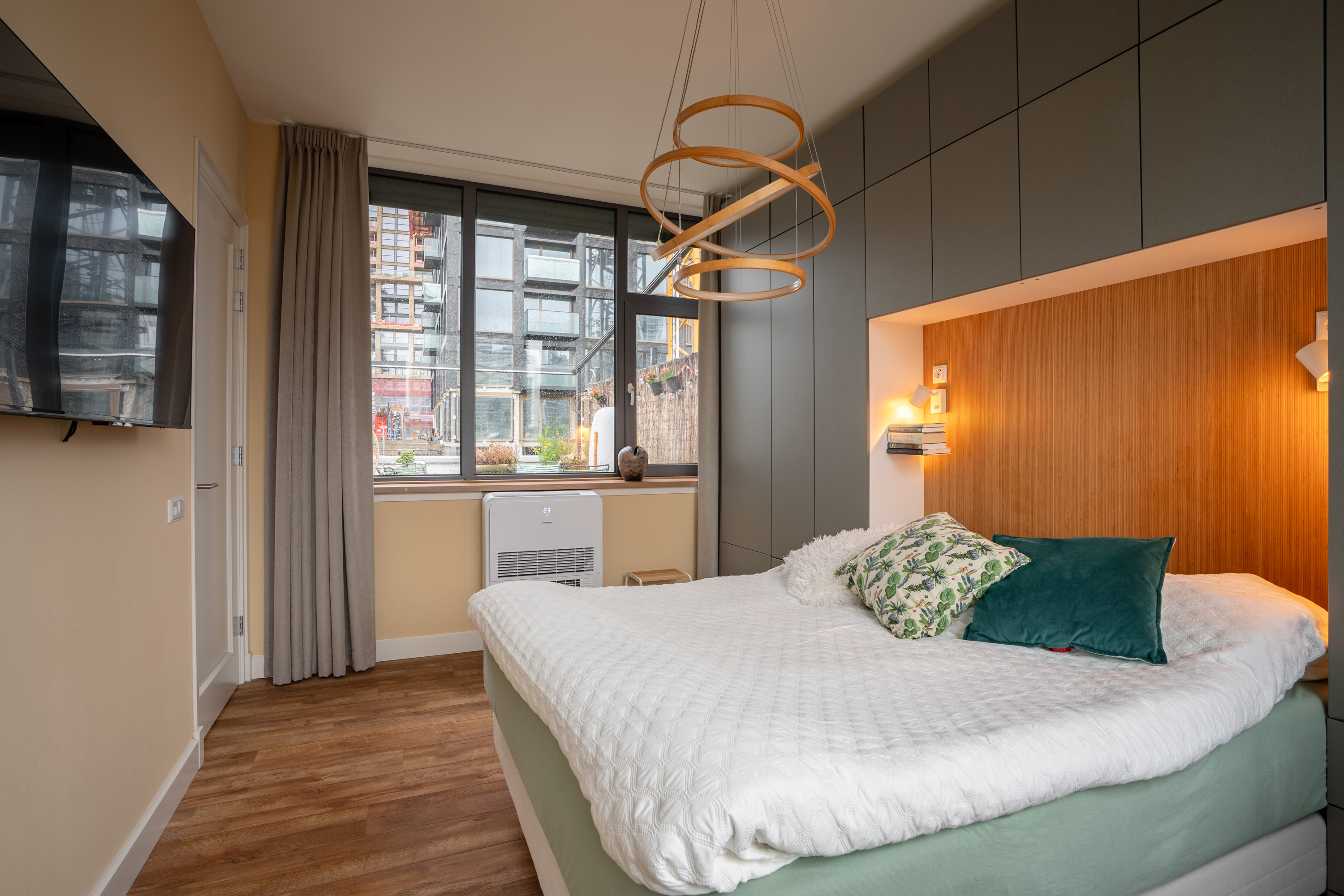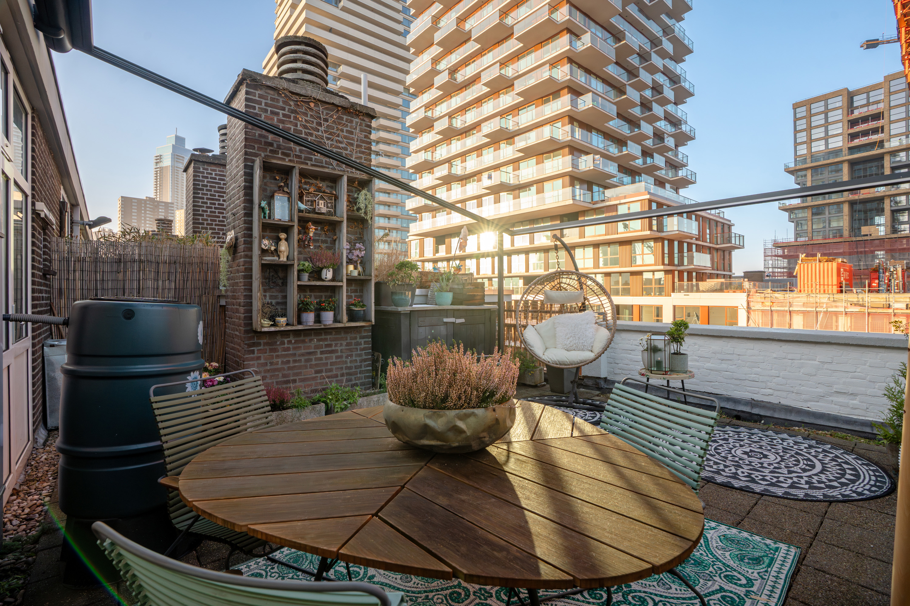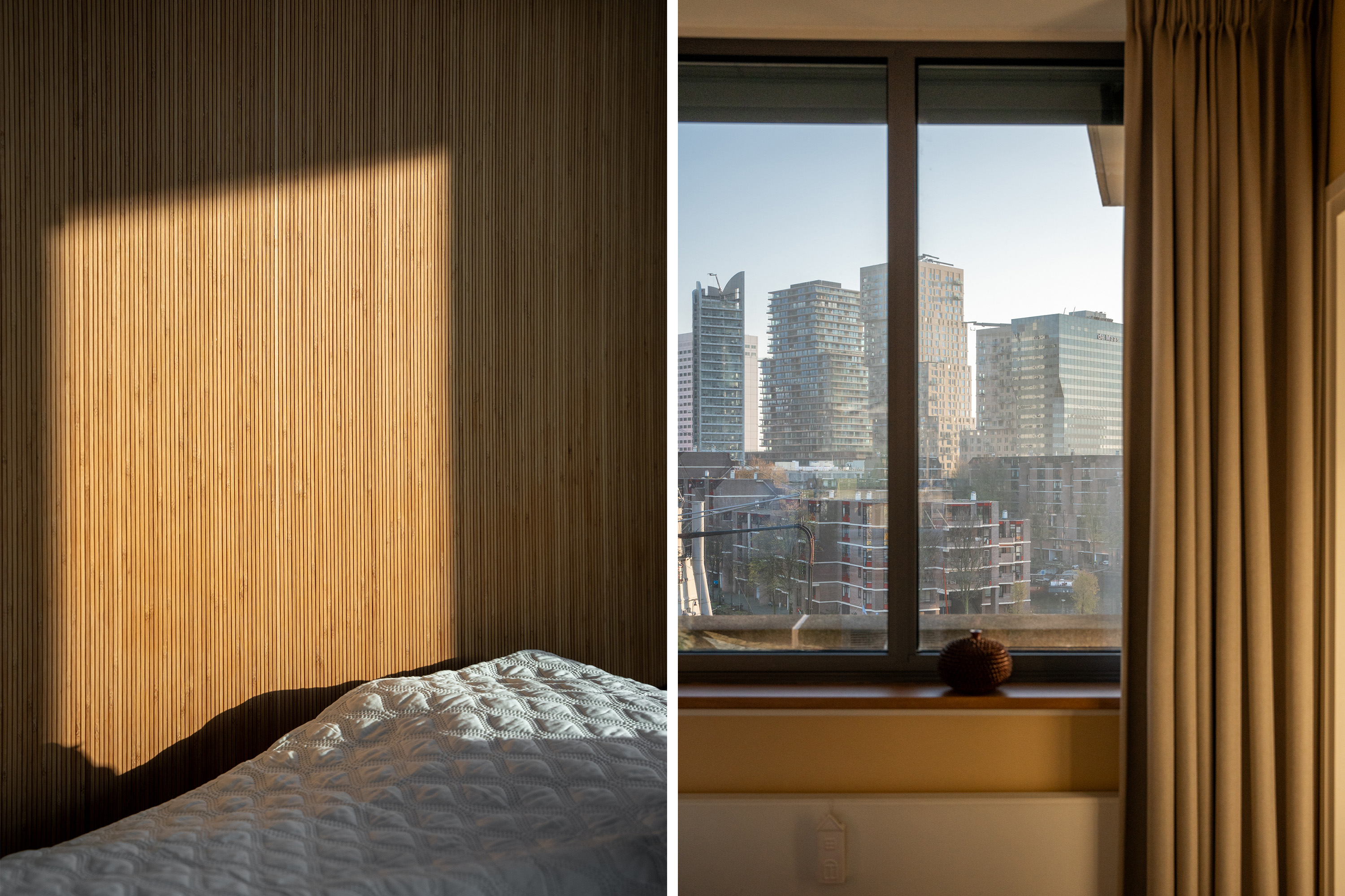 Op deze verdieping bevinden zich twee slaapkamers met beide het indrukwekkende stadse uitzicht aan de voorzijde! In de hoofdslaapkamer is een op maat gemaakte bedkastenwand gebouwd (blijft achter), die zorgt voor extra veel opbergruimte en daarnaast een stoere touch geeft. Hier vanuit loop je door naar de tweede slaapkamer met toegang tot het pandbrede balkon. En raad eens: ook hier bewonder je wederom het fantastische uitzicht! Alsof dat nog niet genoeg is, bereik je via de overloop aan de andere zijde het zeer royale terras op het westen. Heb je ooit zo heerlijk beschut buiten kunnen genieten, terwijl je toch midden in het bruisende stadsleven zit? Wat een pluspunt! Hier kijk je uit op de nieuwe luxe Baantoren (oplevering 2026). Terug op de overloop is een wasruimte en het separate toilet met fonteintje te vinden.