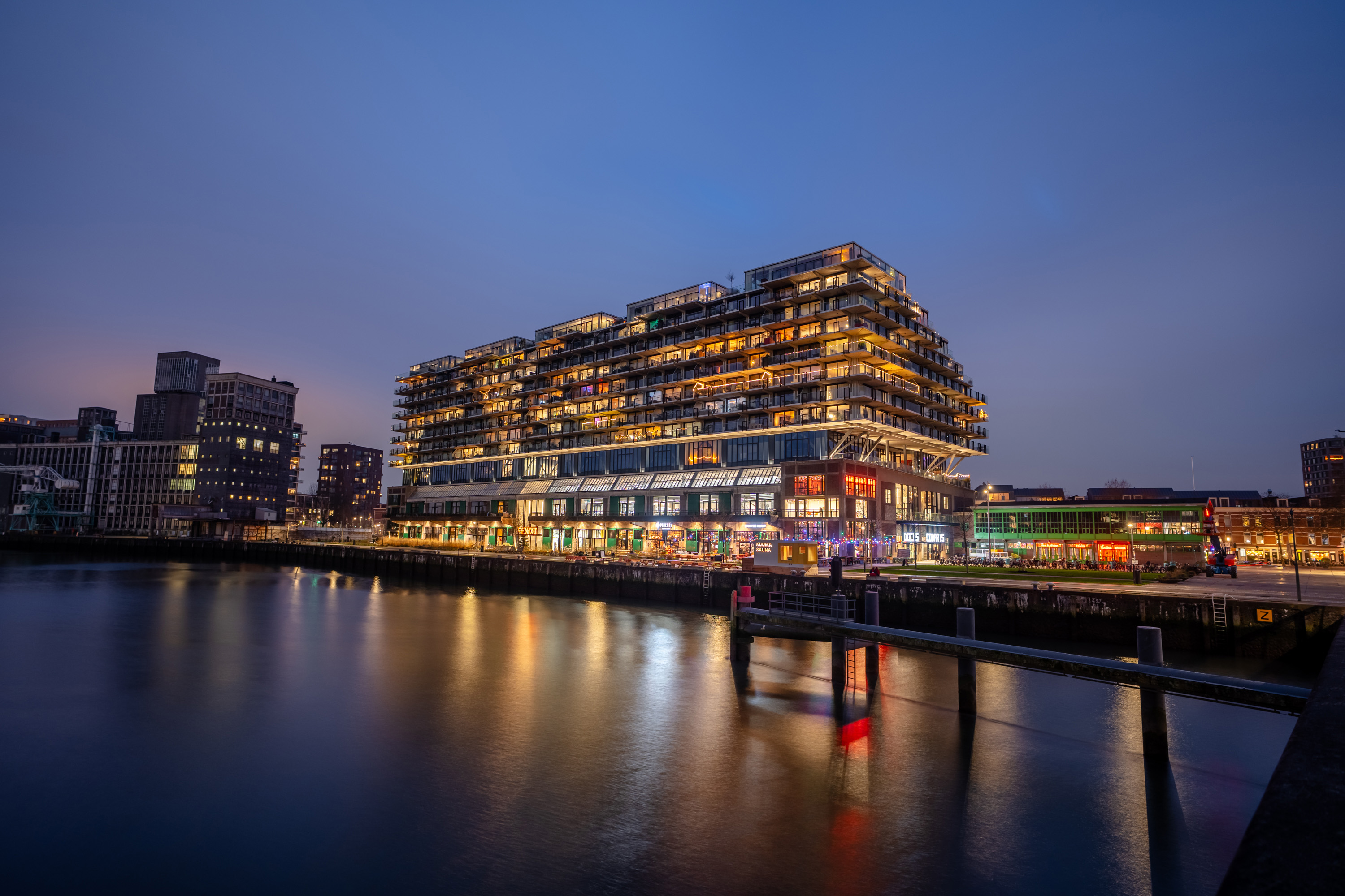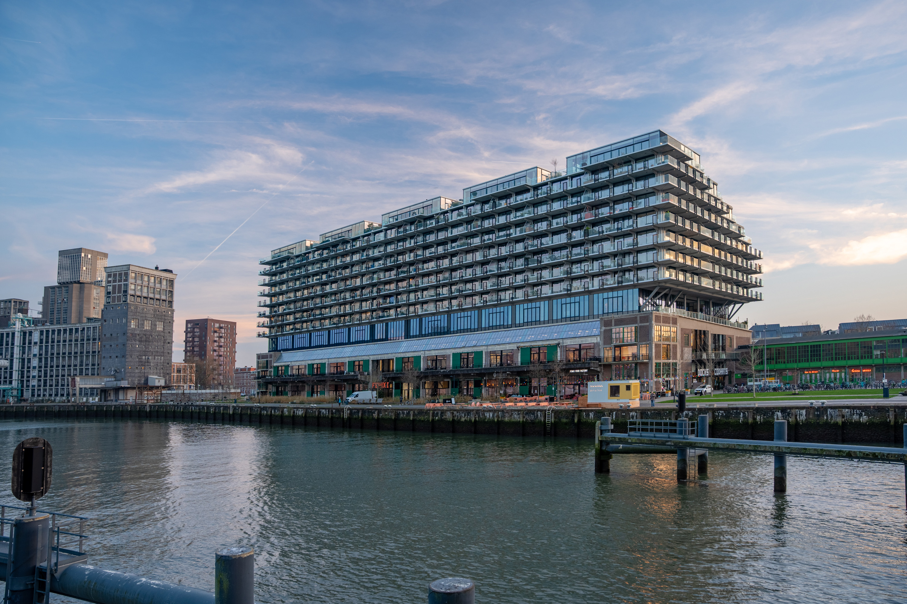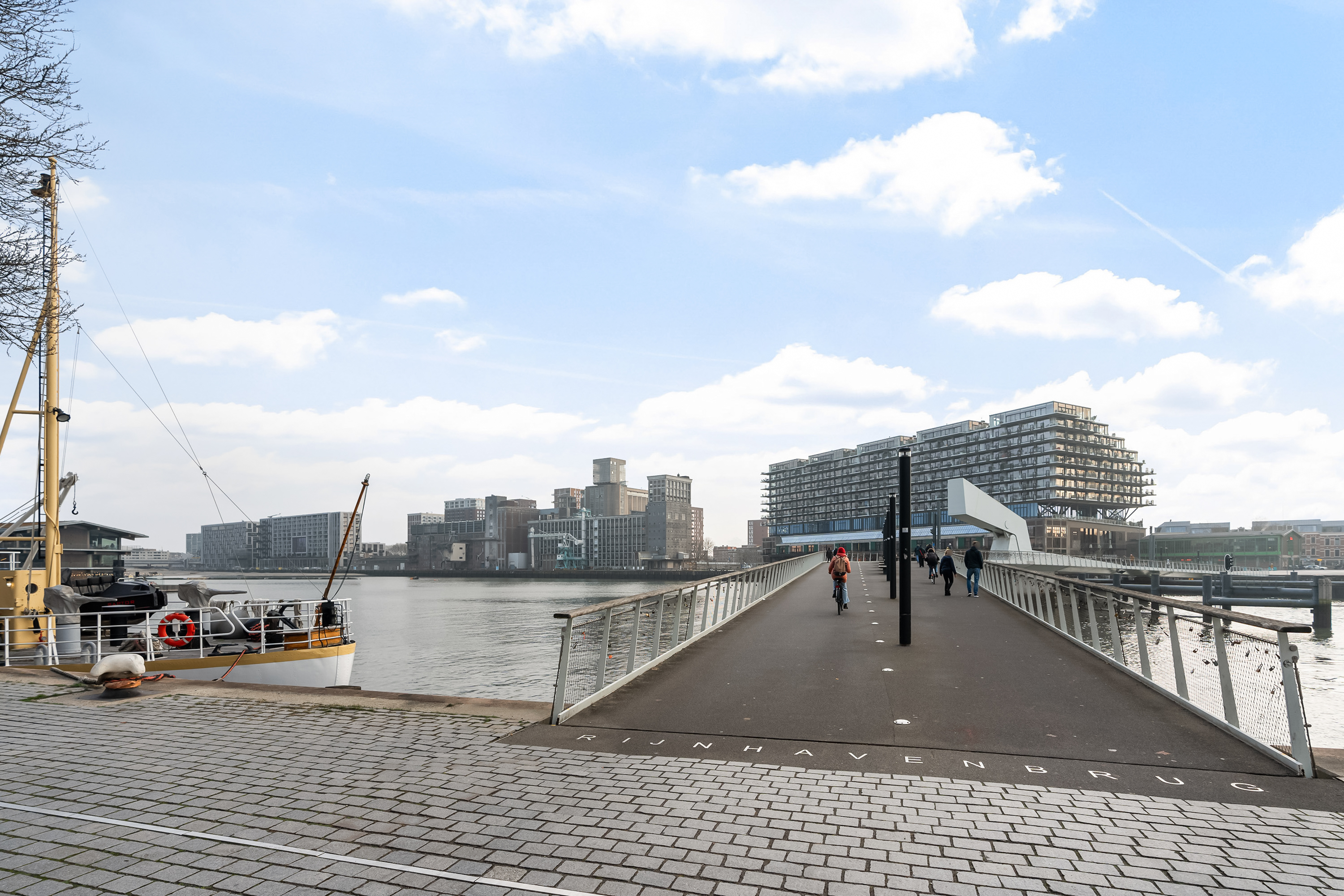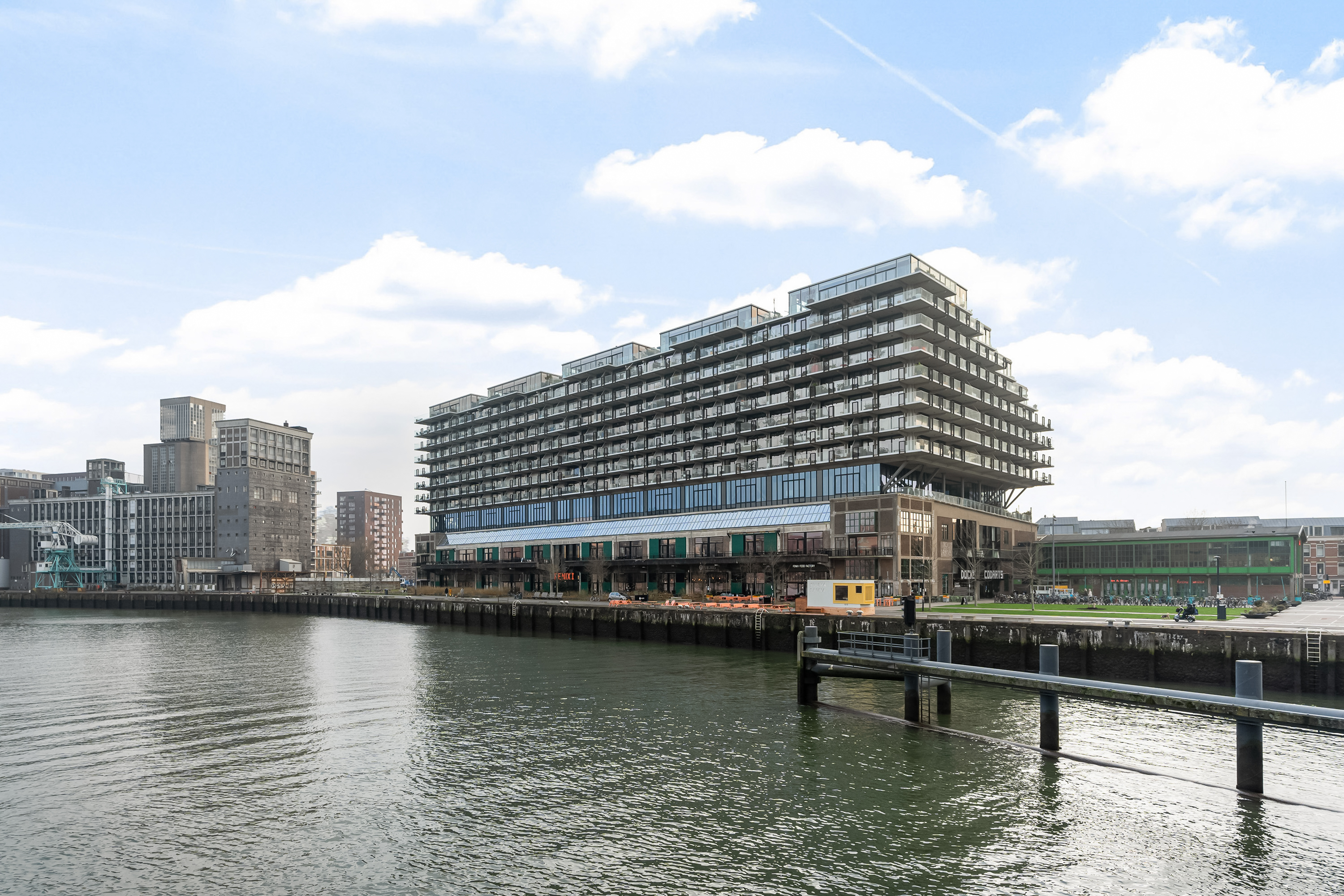 Katendrecht, oftewel ‘De Kaap’ is een voormalige zeemansbuurt en heeft de laatste jaren een enorme ontwikkeling doorgemaakt waardoor deze buurt hip & happening is. Door de populariteit vestigen steeds meer (creatieve) ondernemers zich op dit schiereiland waardoor er van alles te vinden is. Het wemelt er dan ook van leuke restaurants, winkeltjes en (koffie)barretjes waardoor je volop op culinair gebied kunt genieten. Dat maakt Katendrecht een echte droombestemming voor foodlovers! Het Deliplein is een leuke plek met vele opties voor bijvoorbeeld een goede kop koffie, diner of avondje uit. Ook qua cultuur kom je niets tekort, met twee theaters, een filmhuis en musea op loopafstand. Het stadscentrum is binnen handbereik: met het openbaar vervoer en met de fiets (10 minuten). De vernieuwde Fenix Food Factory is recent geopend in het gebouw waarin de woning is gelegen. Aan de kade is tevens een opstapplaats voor de watertaxi te vinden.