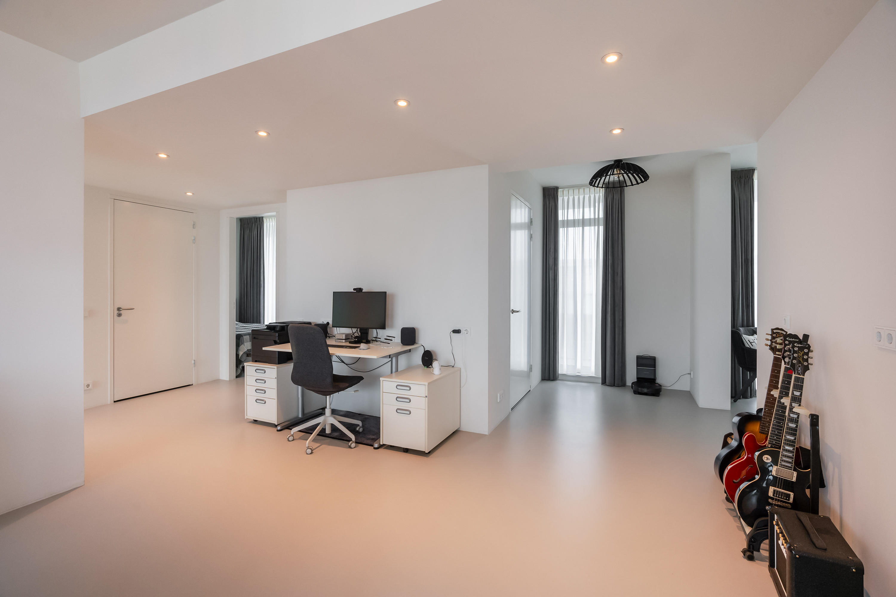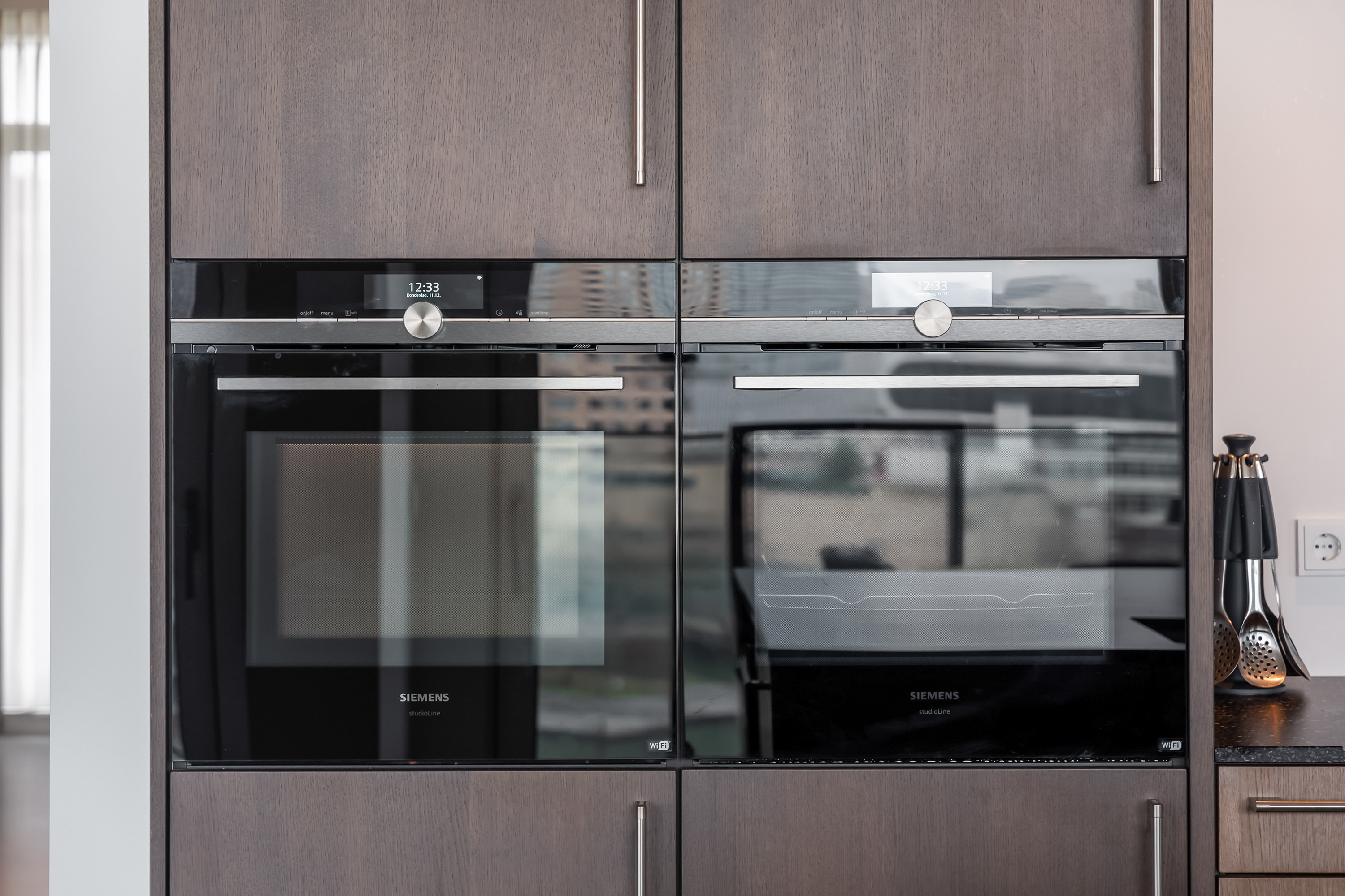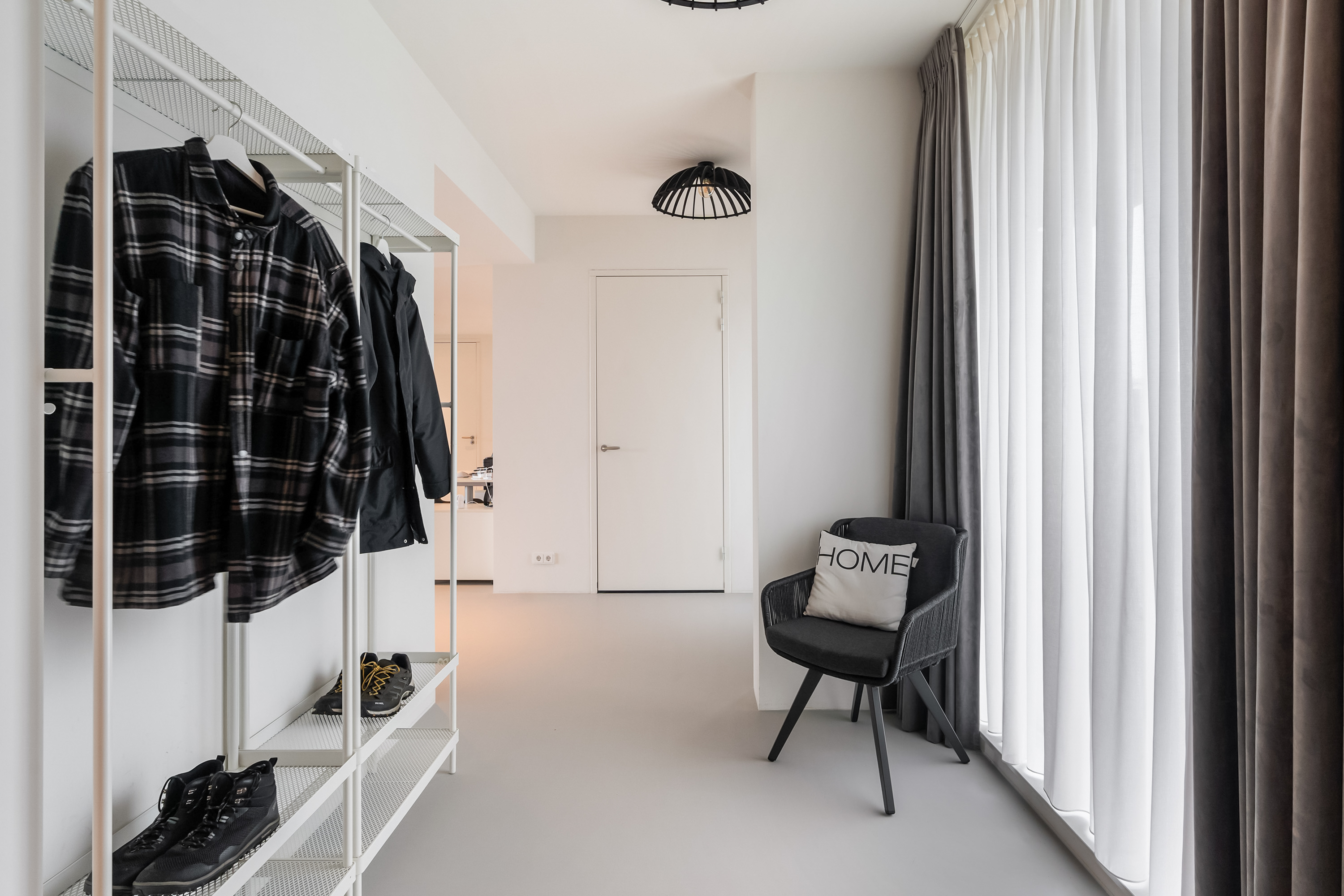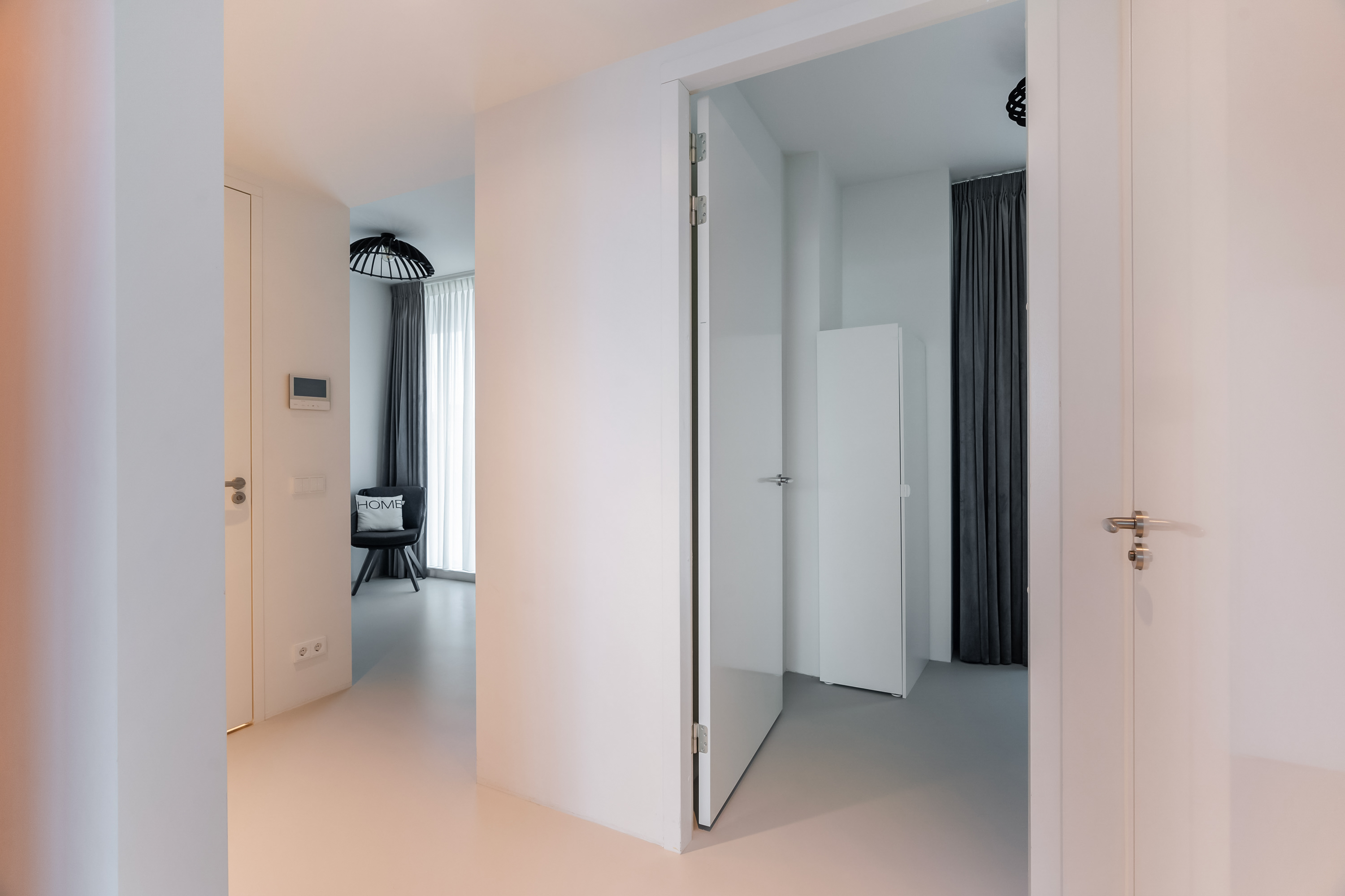 Zodra je de woning binnenstapt, voel je het meteen: ruimte, licht en uitzicht. De royale hal geeft toegang tot alle vertrekken en biedt voldoende ruimte voor een garderobekast. De leefruimte is indrukwekkend groot en dankzij de loftindeling (ontworpen door Seventeenone.nl) en hoge raampartijen baadt deze in het licht. De woonkamer, keuken en eetkamer lopen vloeiend in elkaar over en bieden een fantastisch zicht op de Maas en de skyline van Rotterdam. De gehele woning is voorzien van een Domotica Systeem van Busch Jaeger, hiermee kun je slim schakelen en diverse ruimtes verlichten. Ook de aansturing van de elektrische over-gordijnen en het aan-uit schakelen van sommige stopcontacten gaat via dit systeem, hoe handig?