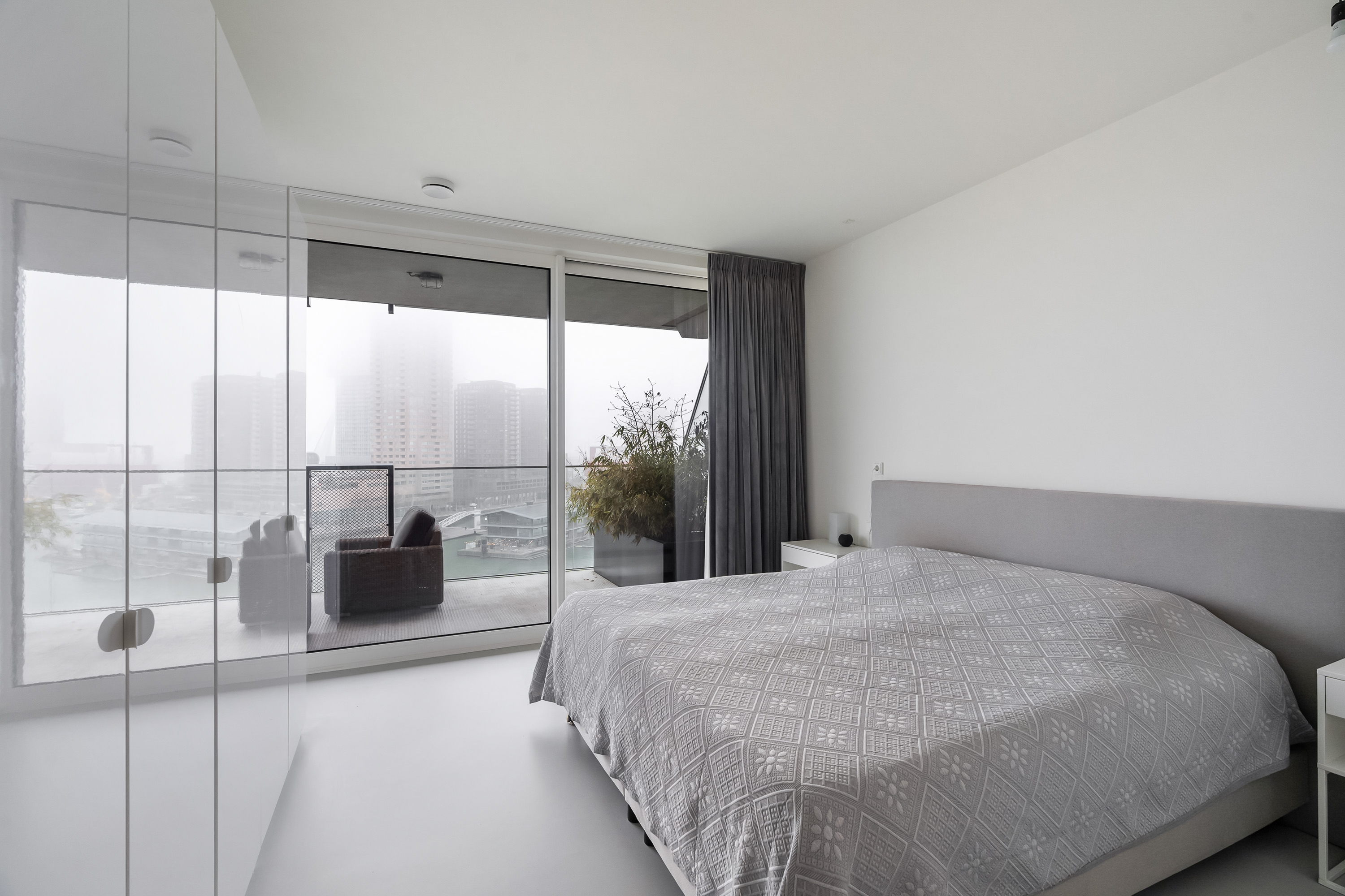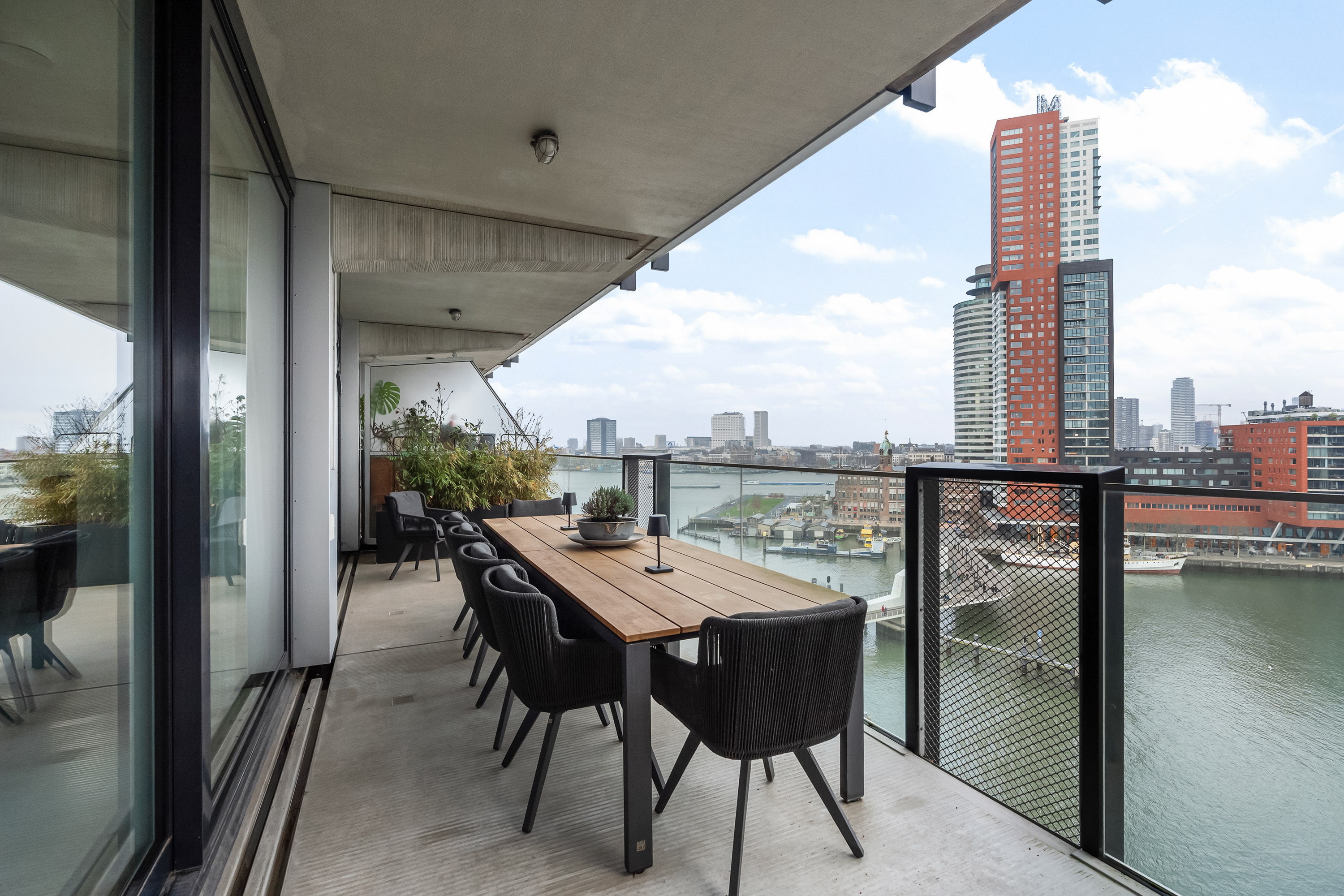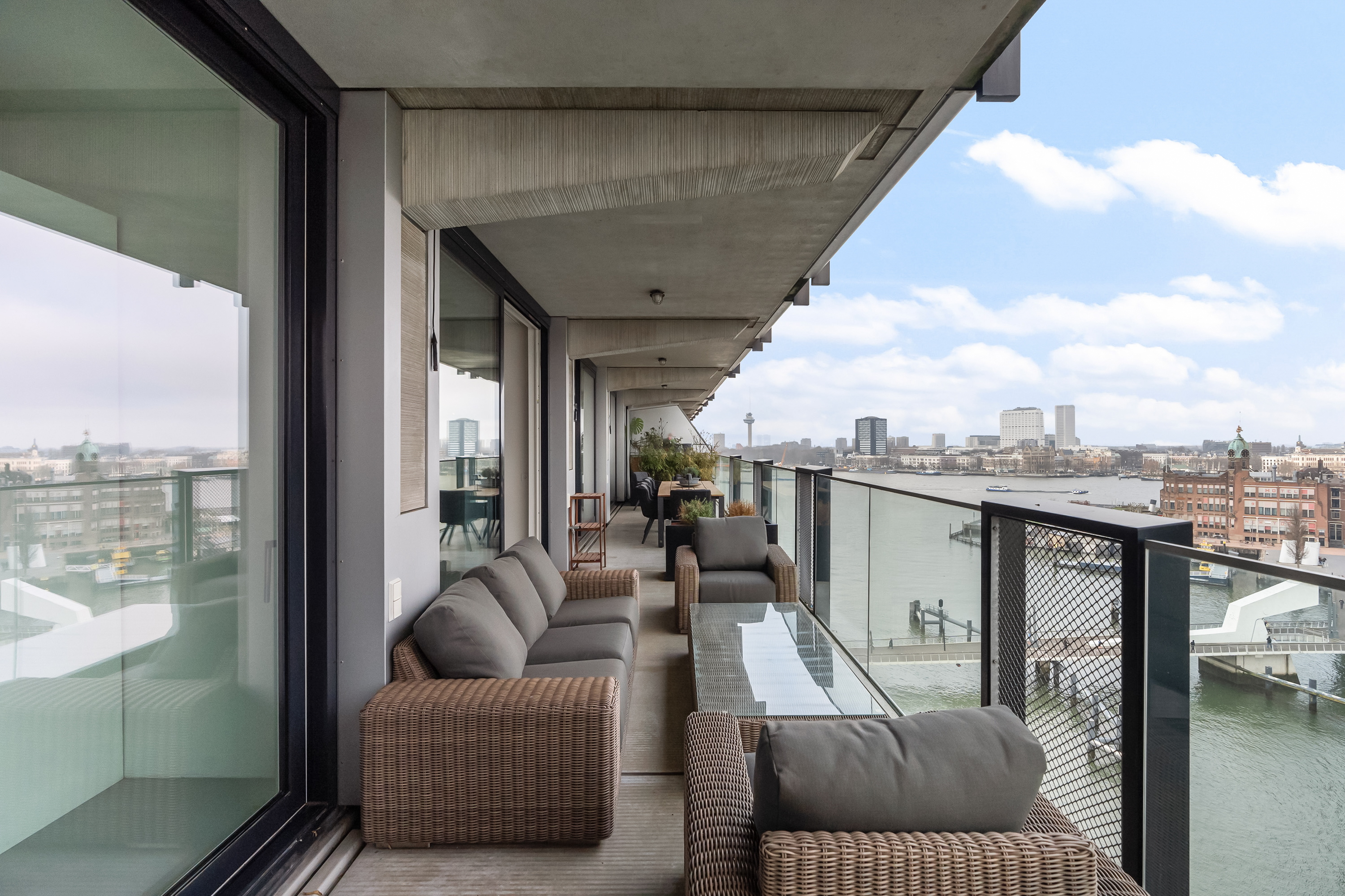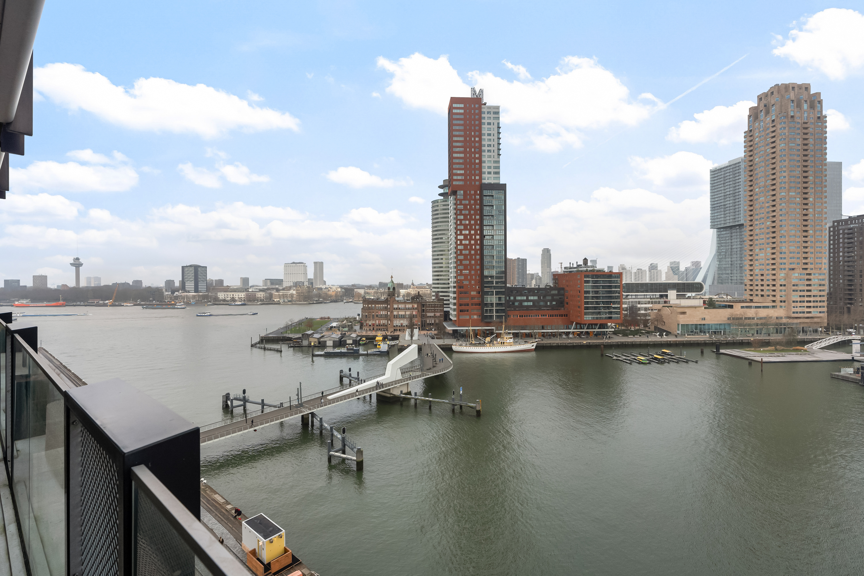 Wauw, wat een uitzicht! Wonen op hoogte, met een panorama waar je elke dag opnieuw stil van wordt. Deze moderne loftwoning op de vijfde verdieping is in 2019 gerealiseerd en combineert ruimte, luxe en comfort met een ongekend uitzicht over de Maas en de Kop van Zuid. Alles klopt hier, van de strakke afwerking tot de stijlvolle inrichting. Een woning waar zichtbaar met liefde is gewoond en waar je zó in kunt. Met maar liefst vier slaapkamers, een royale leefruimte en een fenomenaal terras is dit een plek waar wonen en genieten naadloos samenkomen.