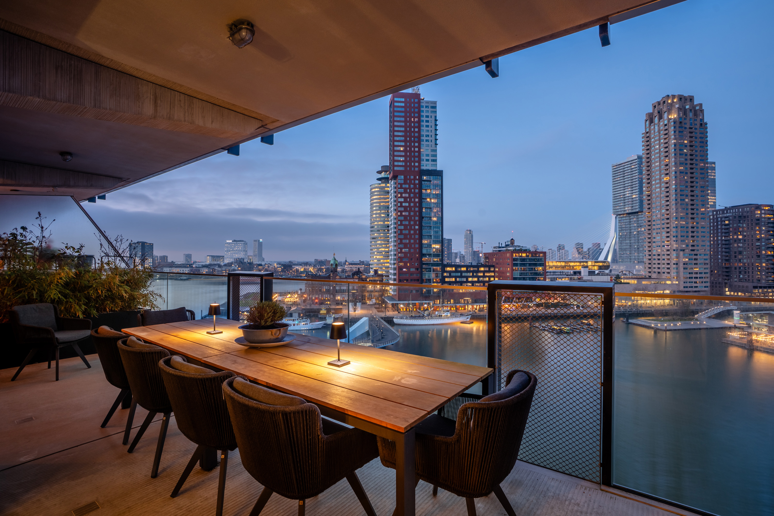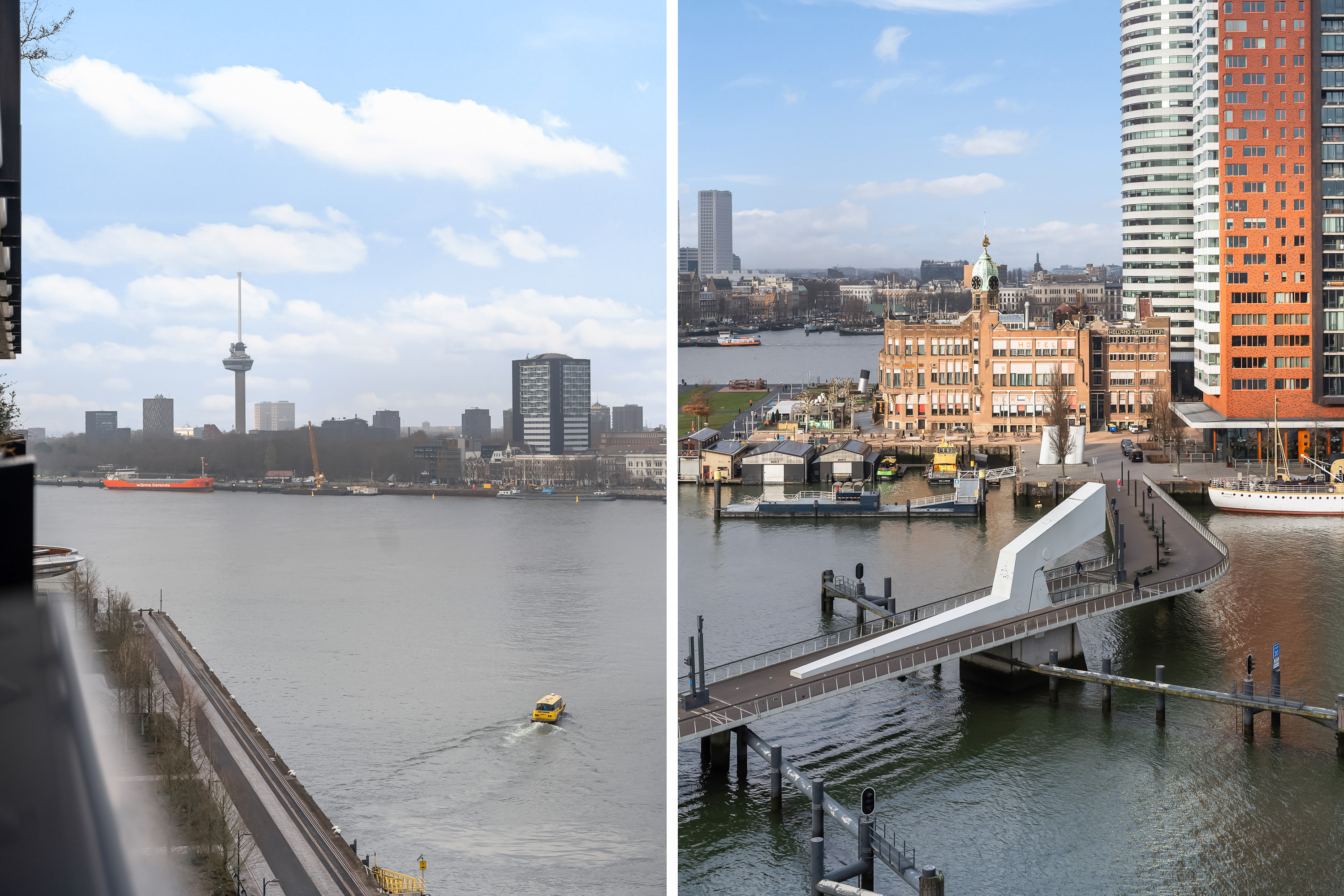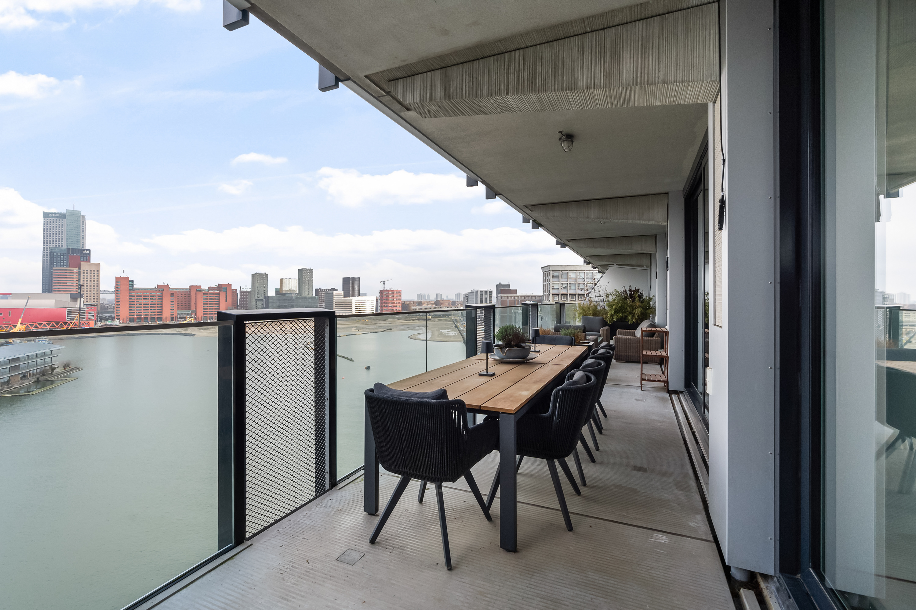 Wauw, wat een uitzicht! Wonen op hoogte, met een panorama waar je elke dag opnieuw stil van wordt. Deze moderne loftwoning op de vijfde verdieping is in 2019 gerealiseerd en combineert ruimte, luxe en comfort met een ongekend uitzicht over de Maas en de Kop van Zuid. Alles klopt hier, van de strakke afwerking tot de stijlvolle inrichting. Een woning waar zichtbaar met liefde is gewoond en waar je zó in kunt. Met maar liefst vier slaapkamers, een royale leefruimte en een fenomenaal terras is dit een plek waar wonen en genieten naadloos samenkomen.