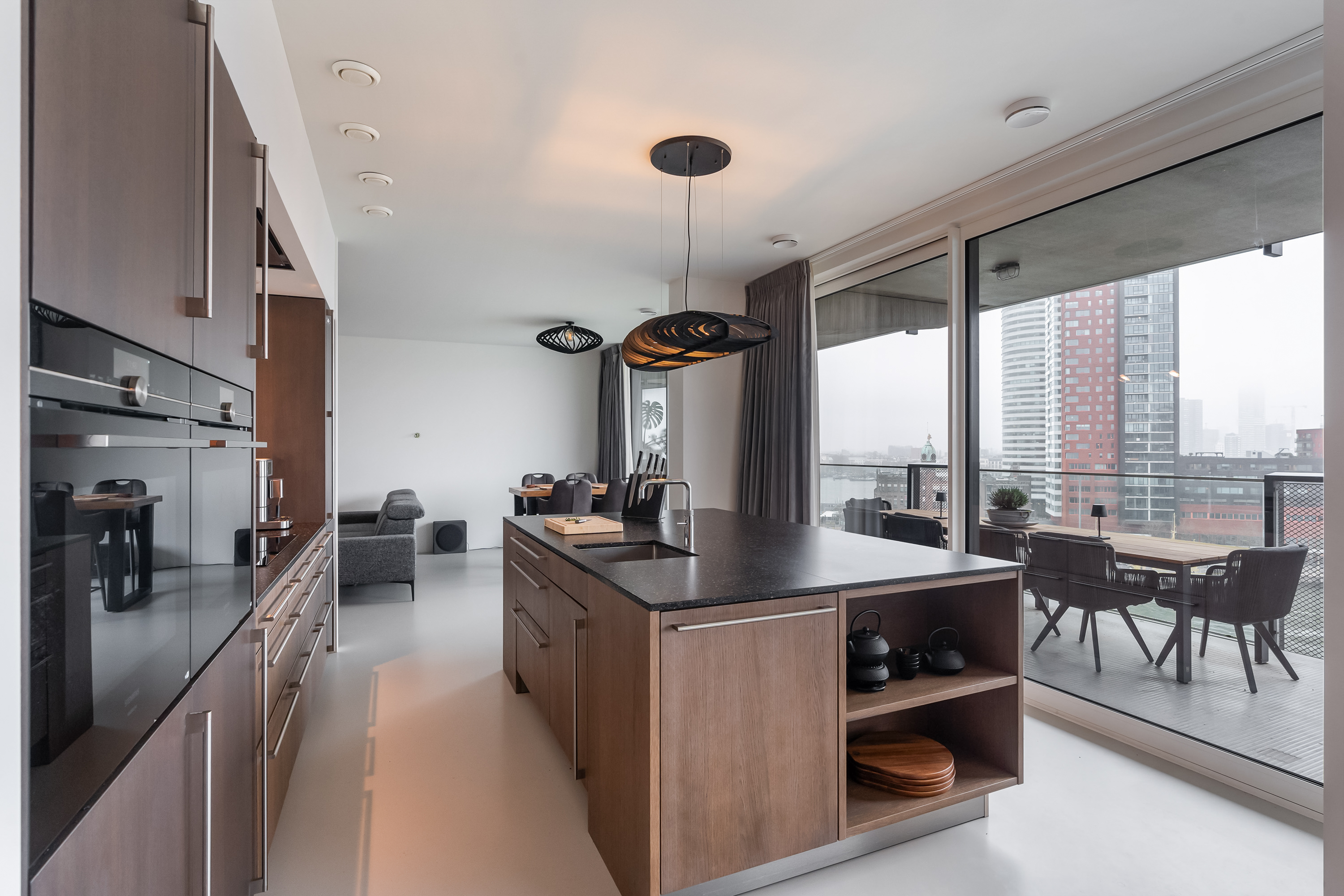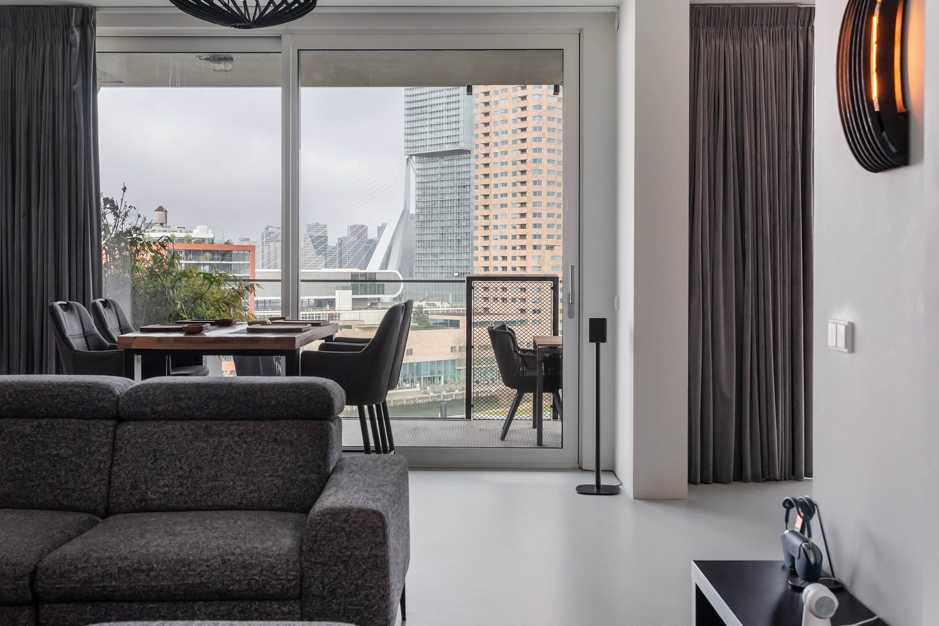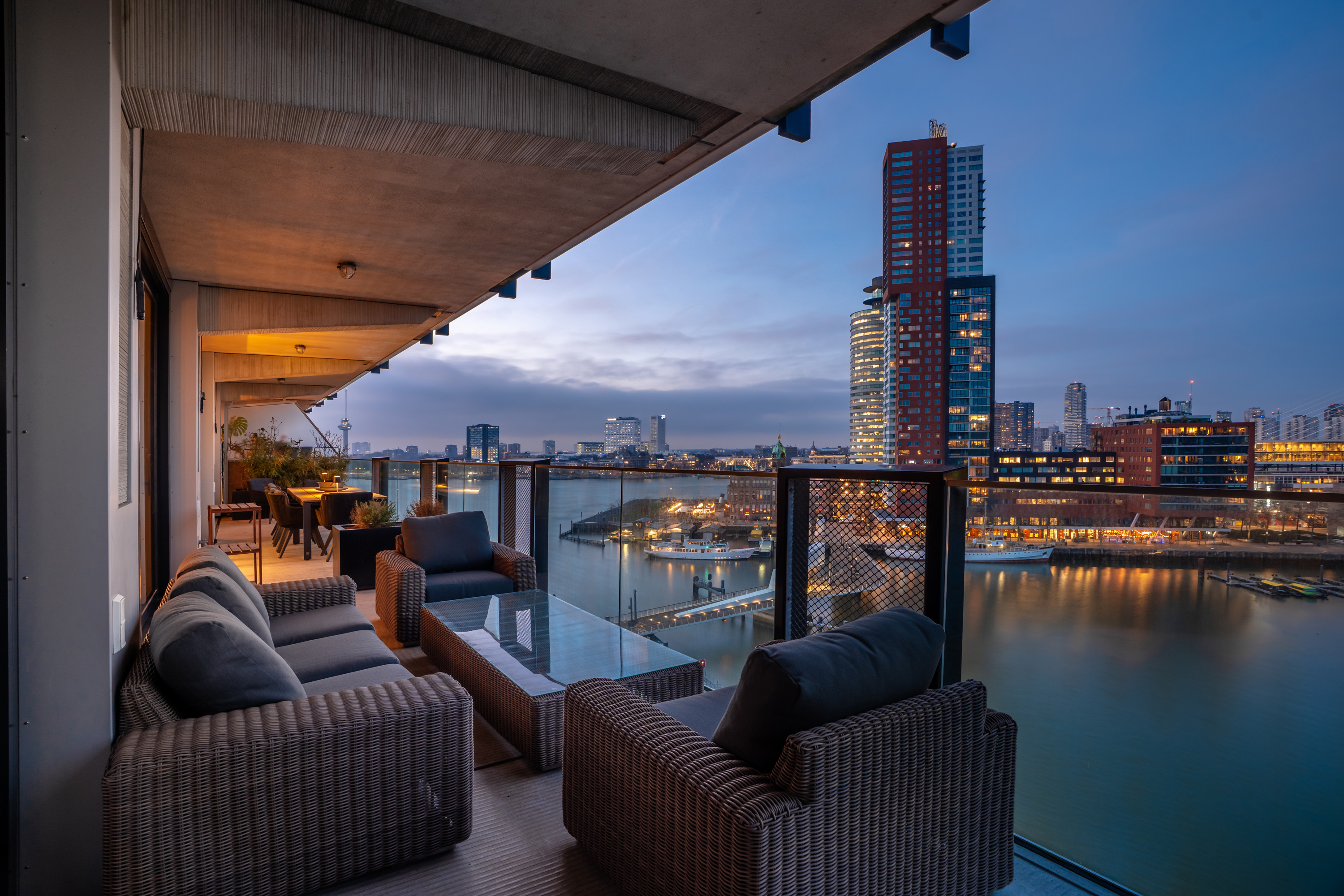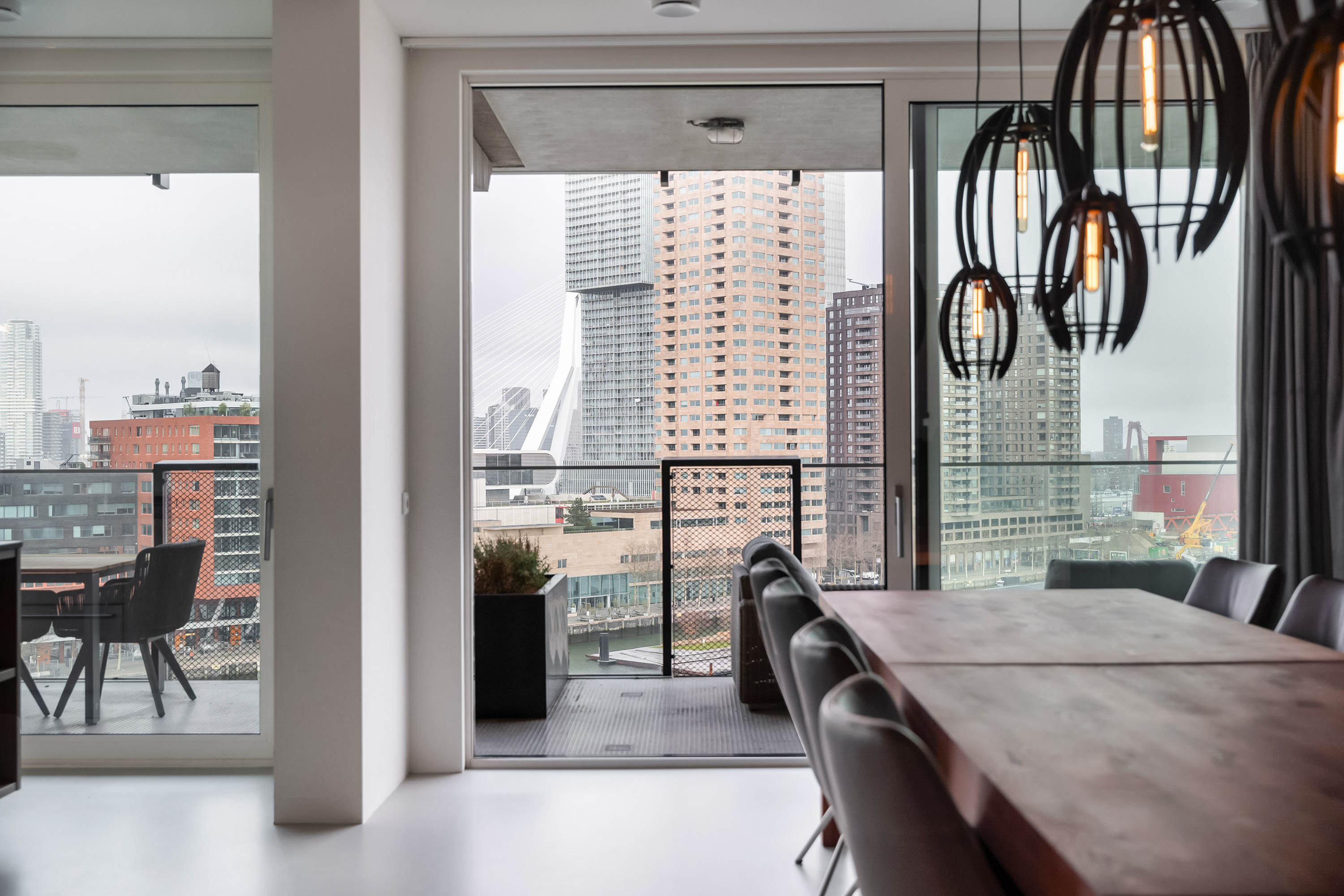 Wauw, wat een uitzicht! Wonen op hoogte, met een panorama waar je elke dag opnieuw stil van wordt. Deze moderne loftwoning op de vijfde verdieping is in 2019 gerealiseerd en combineert ruimte, luxe en comfort met een ongekend uitzicht over de Maas en de Kop van Zuid. Alles klopt hier, van de strakke afwerking tot de stijlvolle inrichting. Een woning waar zichtbaar met liefde is gewoond en waar je zó in kunt. Met maar liefst vier slaapkamers, een royale leefruimte en een fenomenaal terras is dit een plek waar wonen en genieten naadloos samenkomen.