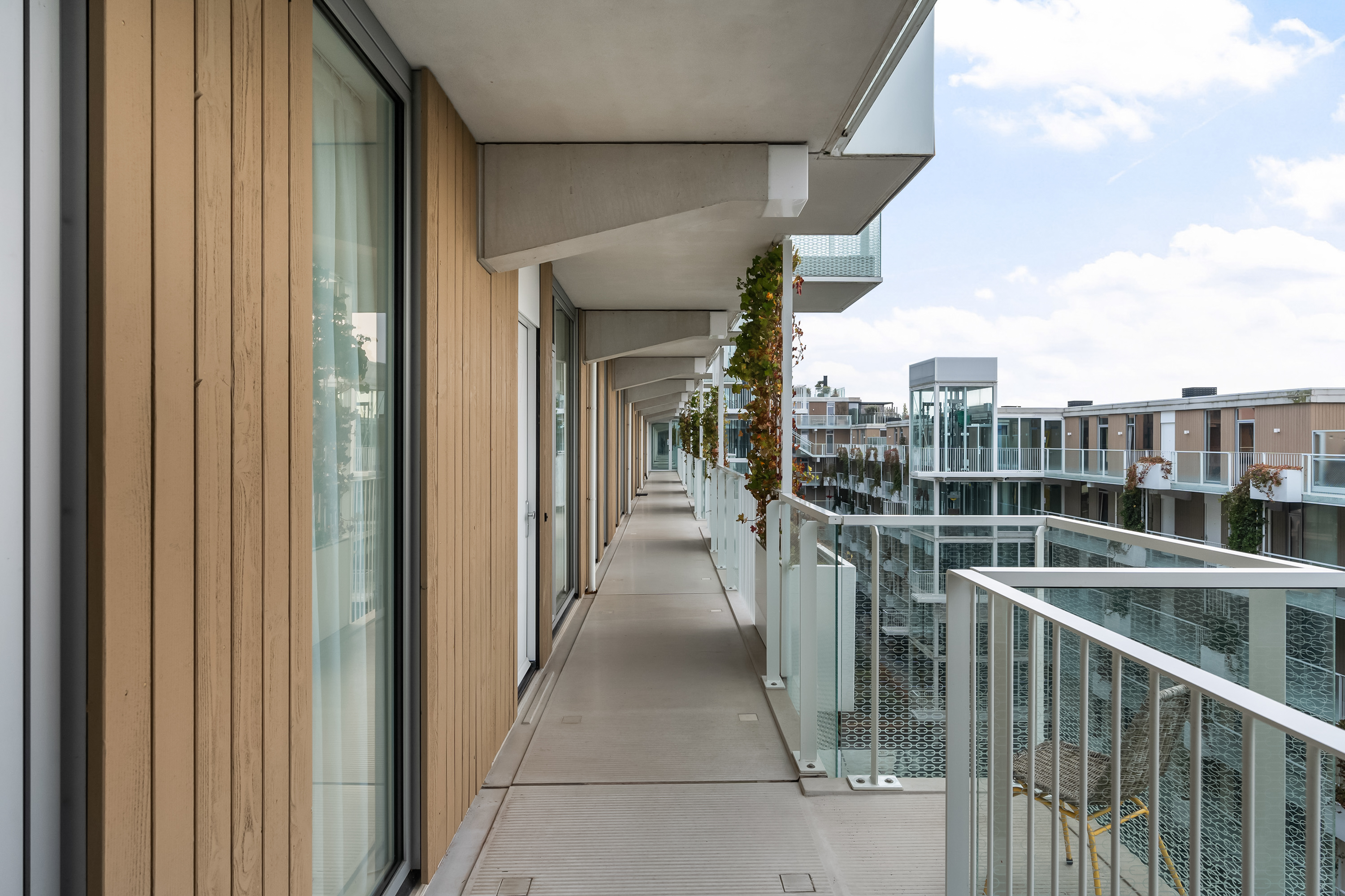 Bij de woning hoort een externe berging in de onderbouw van het complex. Hier bevindt zich ook de gezamenlijke fietsenstalling, die is uitgerust met een elektrische lift, waardoor je zelfs met een snorscooter eenvoudig in en uit kunt rijden.