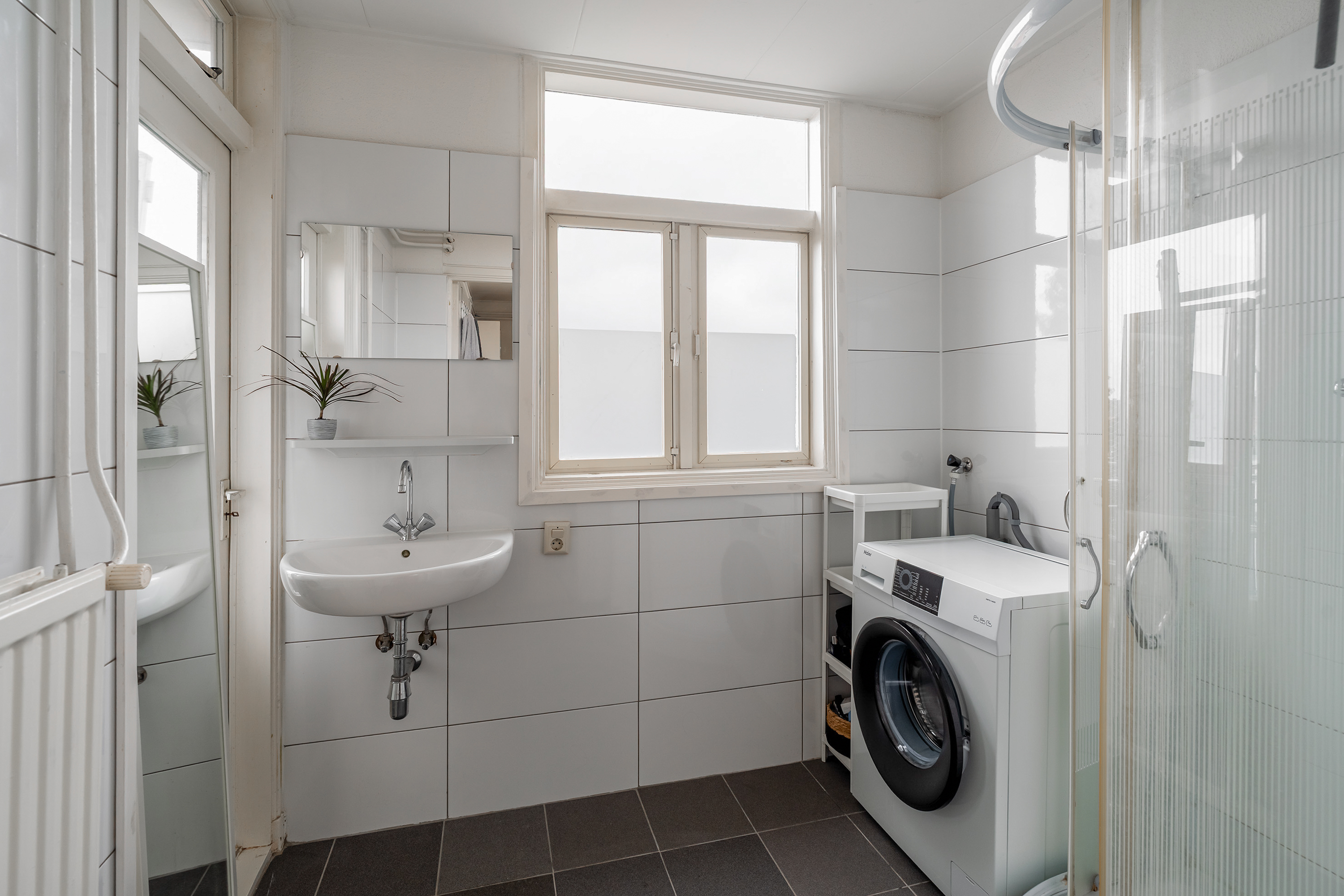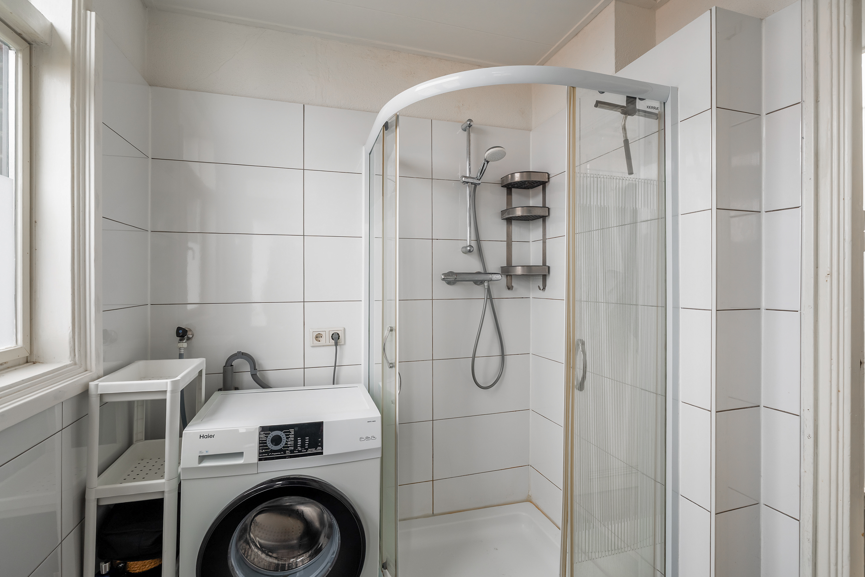 Via de interne trap bereik je de bovenste woonlaag. Hier bevindt zich de ruime slaapkamer met voldoende plek voor een grote kast. De badkamer is voorzien van een douche, wastafel en wasmachineaansluiting. Vanuit deze halve verdieping is er toegang tot het tweede balkon, eveneens gelegen op het noordoosten, waar je in alle rust van de buitenlucht geniet.