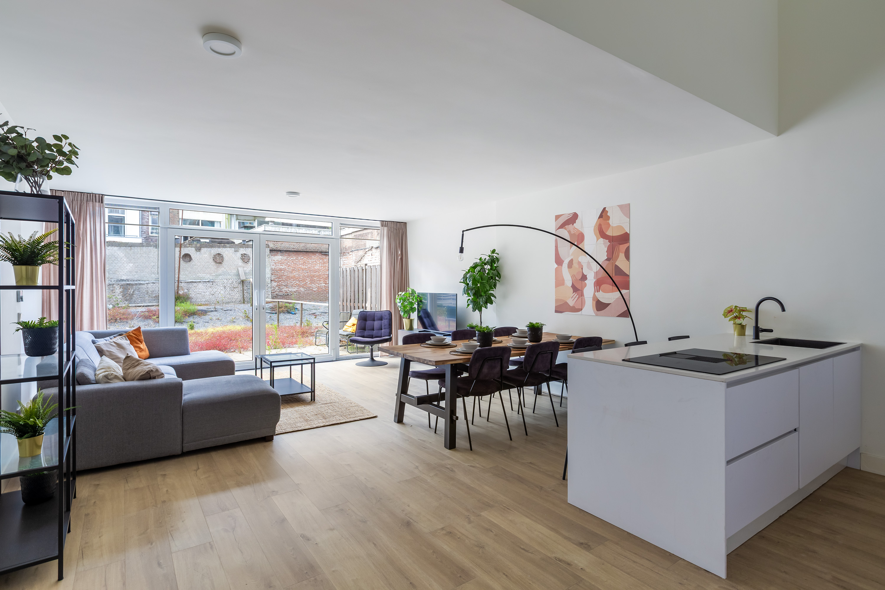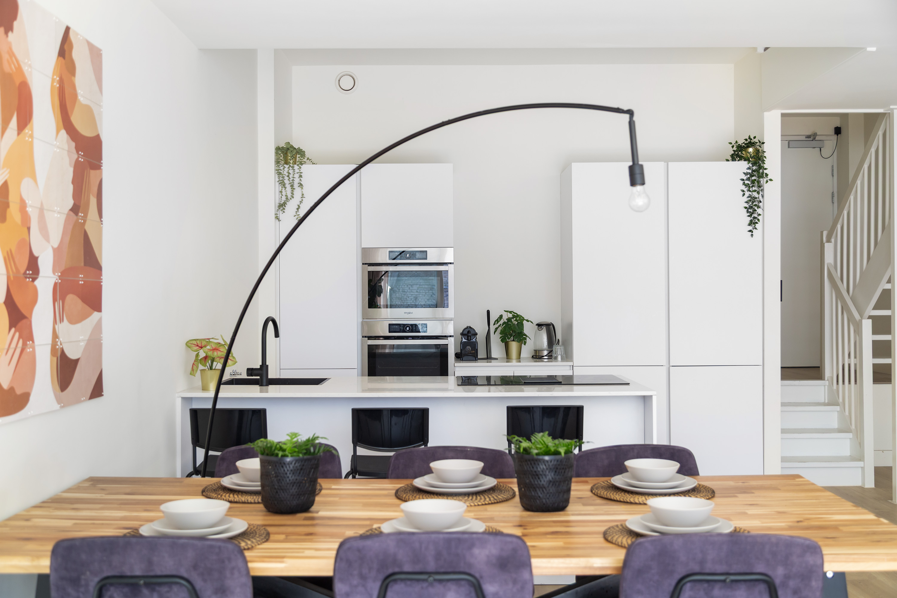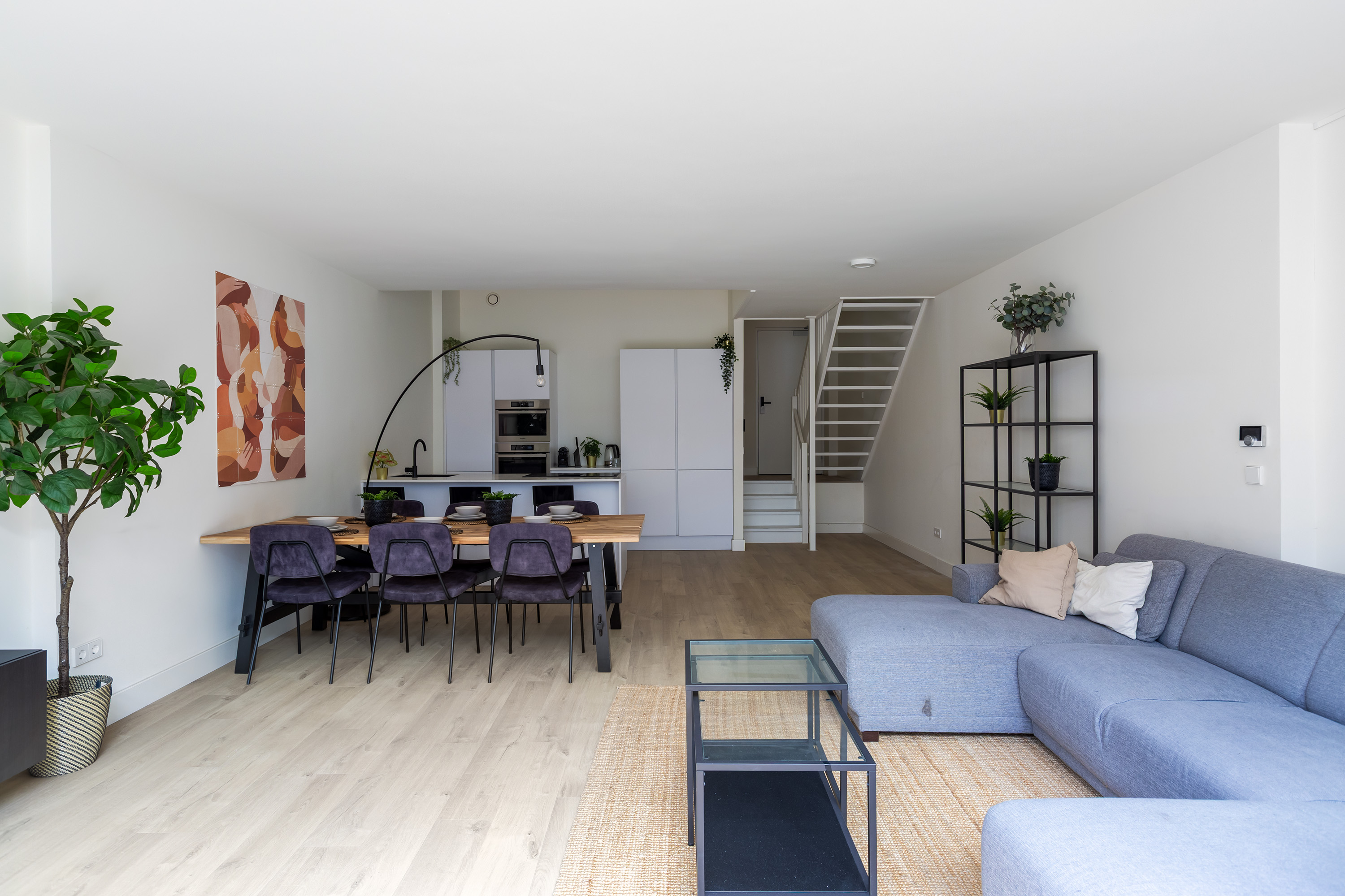 Zodra je de woning betreedt stap je binnen in de nette, uitnodigende hal. Hier vind je een separaat toilet en een handige wasruimte met aansluiting voor een wasmachine. De cv-ketel is hier ook bevestigd waardoor alle voorzieningen binnen handbereik zijn. Het is meteen duidelijk dat de woning in 2022 grondig is gerenoveerd; alles voelt nieuw en fris, klaar voor nieuwe bewoners die houden van comfort en kwaliteit. Loop verder naar de leefruimte en je stapt de keuken in die overloopt in een gezellige eetkamer en woonkamer. De open keuken is een waar paradijs voor kookliefhebbers. Voorzien van de nieuwste apparatuur kun je hier de heerlijkste gerechten bereiden. De keuken beschikt over een inductiekookplaat met geïntegreerde afzuiging. Daarnaast is er een oven, magnetron, koelkast, vriezer en vaatwasser. Tijdens het kokkerellen kunnen je gasten alvast iets lekkers nuttigen aan de bar.