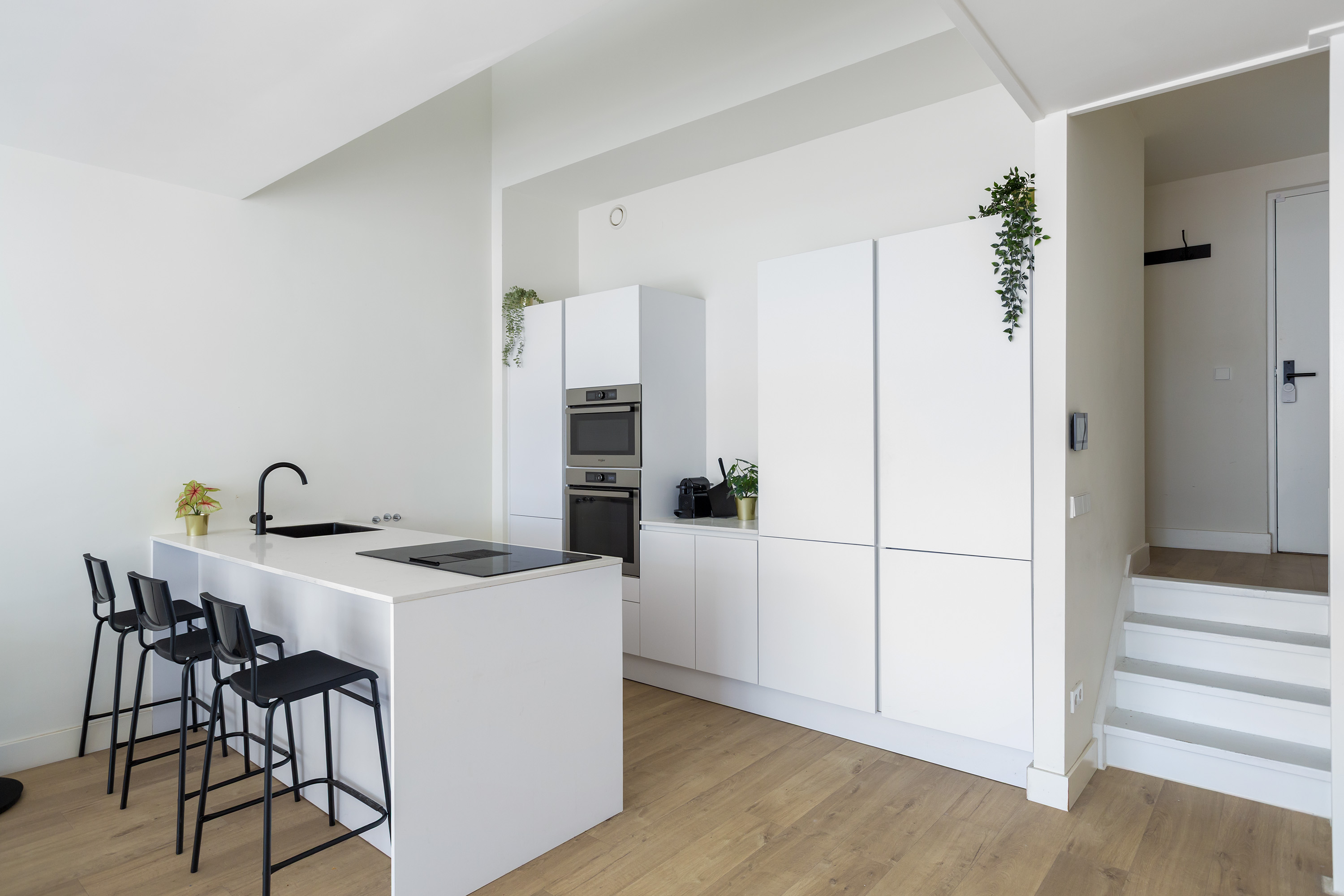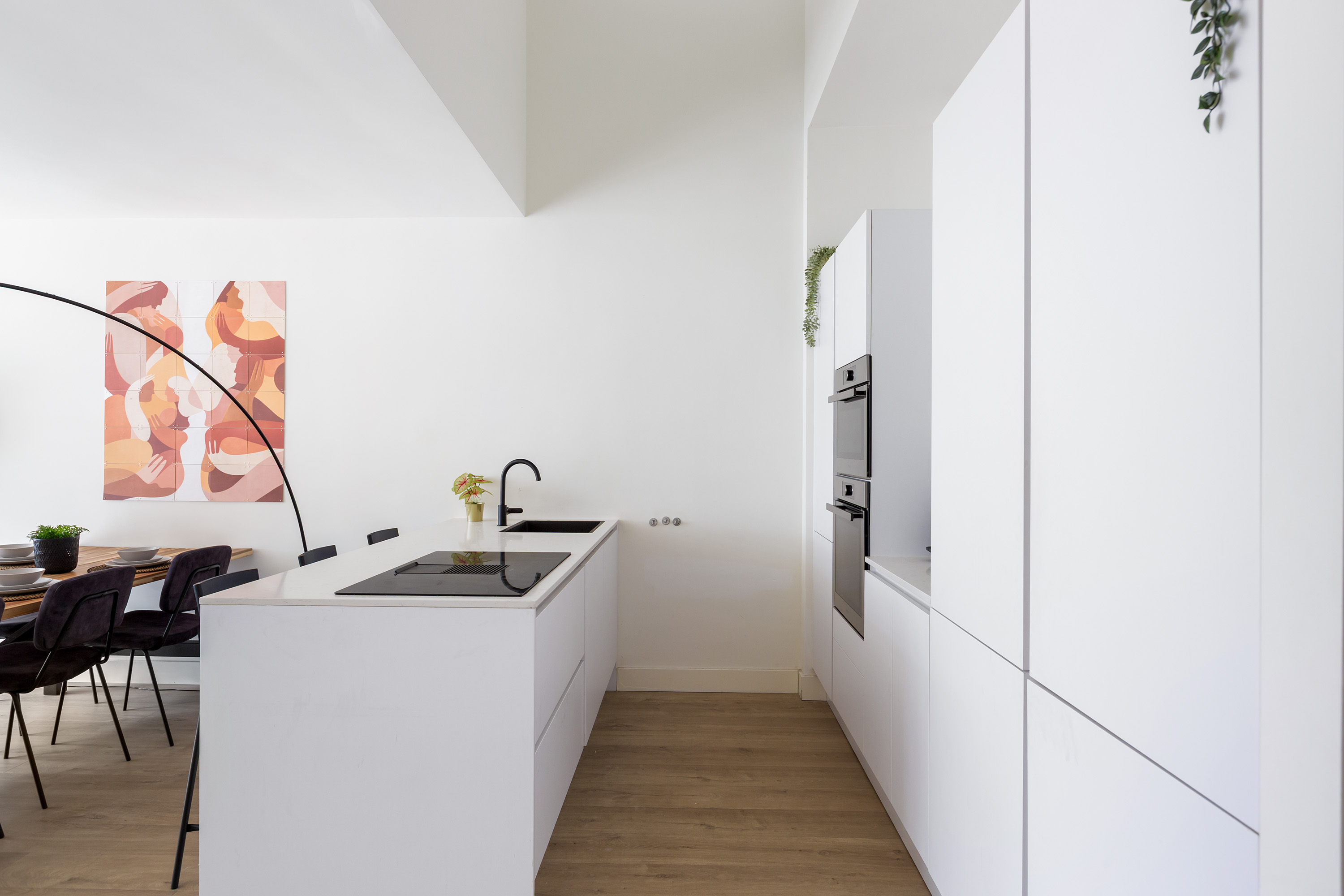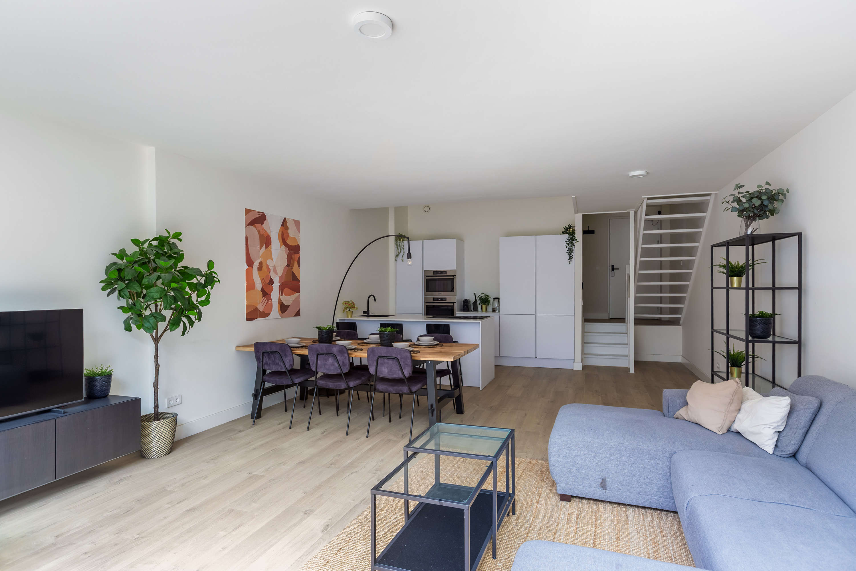 Zodra je de woning betreedt stap je binnen in de nette, uitnodigende hal. Hier vind je een separaat toilet en een handige wasruimte met aansluiting voor een wasmachine. De cv-ketel is hier ook bevestigd waardoor alle voorzieningen binnen handbereik zijn. Het is meteen duidelijk dat de woning in 2022 grondig is gerenoveerd; alles voelt nieuw en fris, klaar voor nieuwe bewoners die houden van comfort en kwaliteit. Loop verder naar de leefruimte en je stapt de keuken in die overloopt in een gezellige eetkamer en woonkamer. De open keuken is een waar paradijs voor kookliefhebbers. Voorzien van de nieuwste apparatuur kun je hier de heerlijkste gerechten bereiden. De keuken beschikt over een inductiekookplaat met geïntegreerde afzuiging. Daarnaast is er een oven, magnetron, koelkast, vriezer en vaatwasser. Tijdens het kokkerellen kunnen je gasten alvast iets lekkers nuttigen aan de bar.