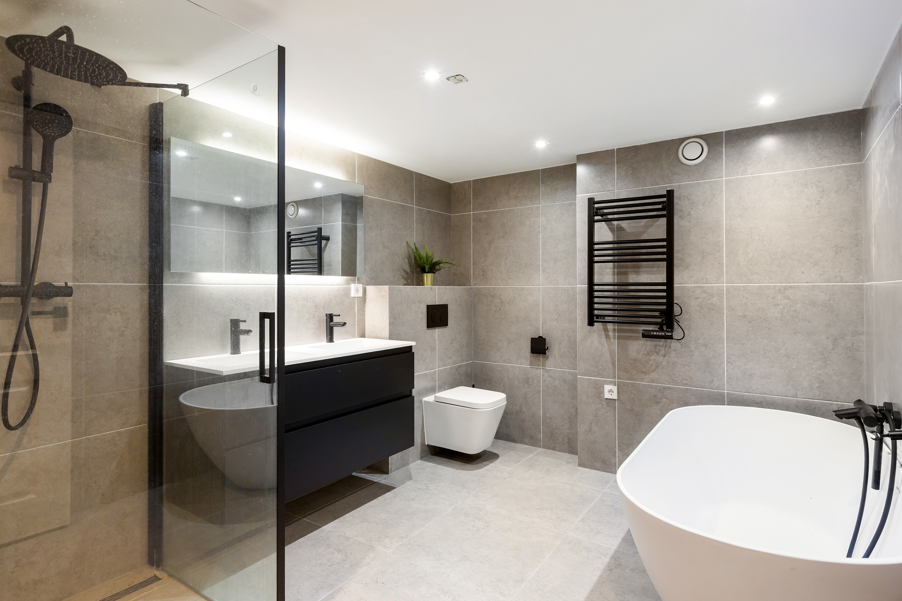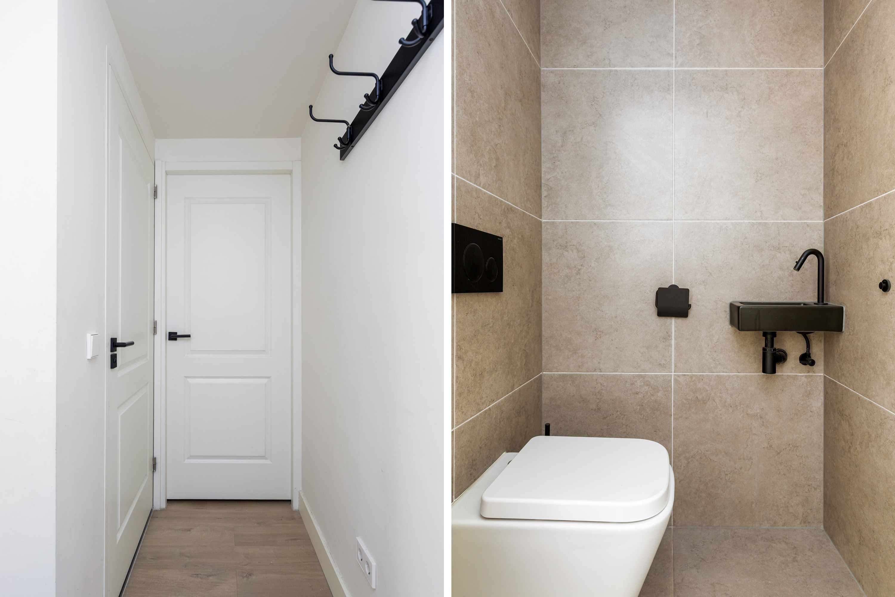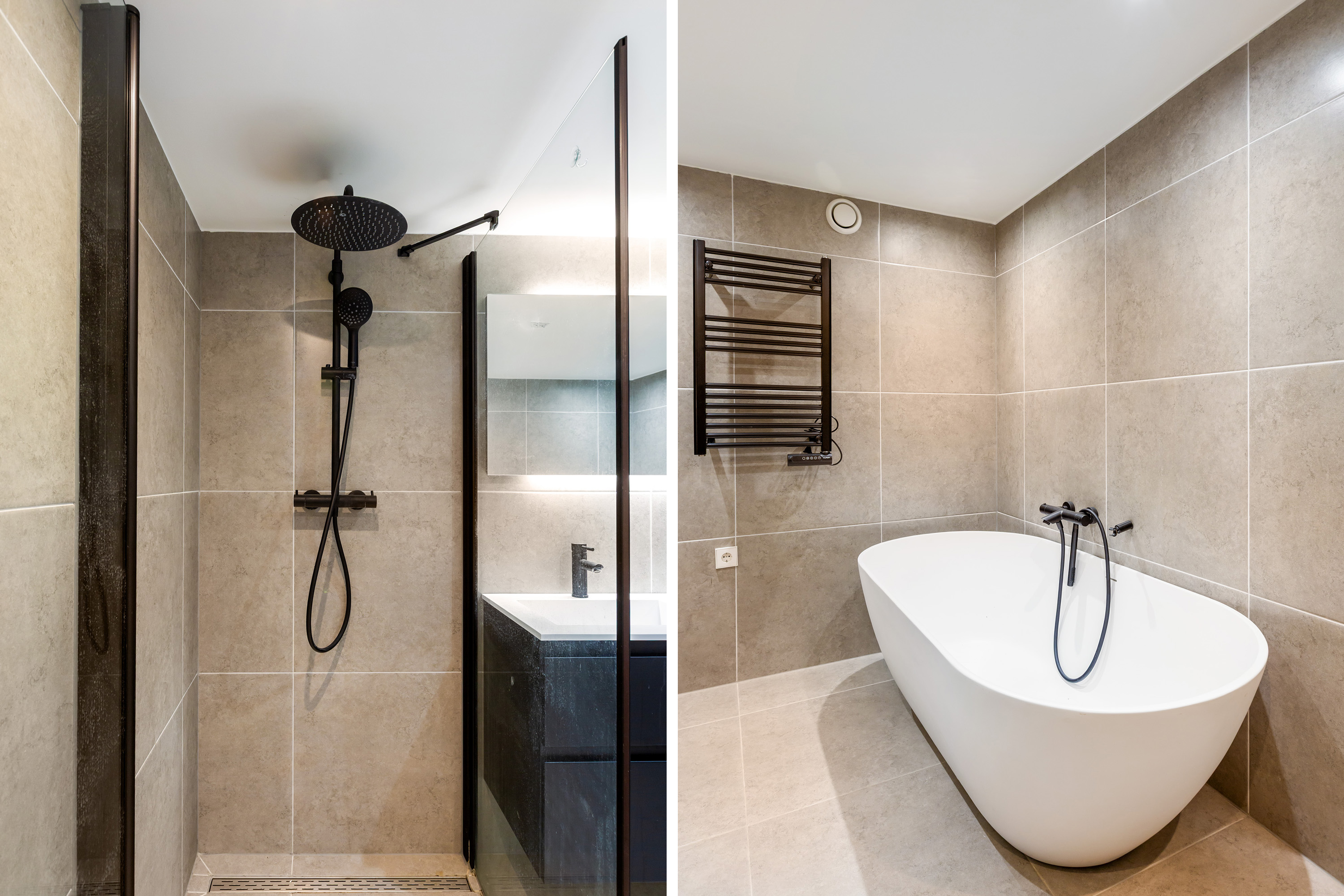 De moderne badkamer is een oase van rust en luxe. Hier vind je een riant ligbad, perfect voor ontspanning na een lange dag. De inloopdouche en dubbele wastafel met een stijlvol meubel maken de badkamer compleet. De strakke afwerking en hoogwaardige materialen zorgen voor een luxe uitstraling waar je elke dag weer van kunt genieten. Tevens is hier ook een toilet aanwezig.