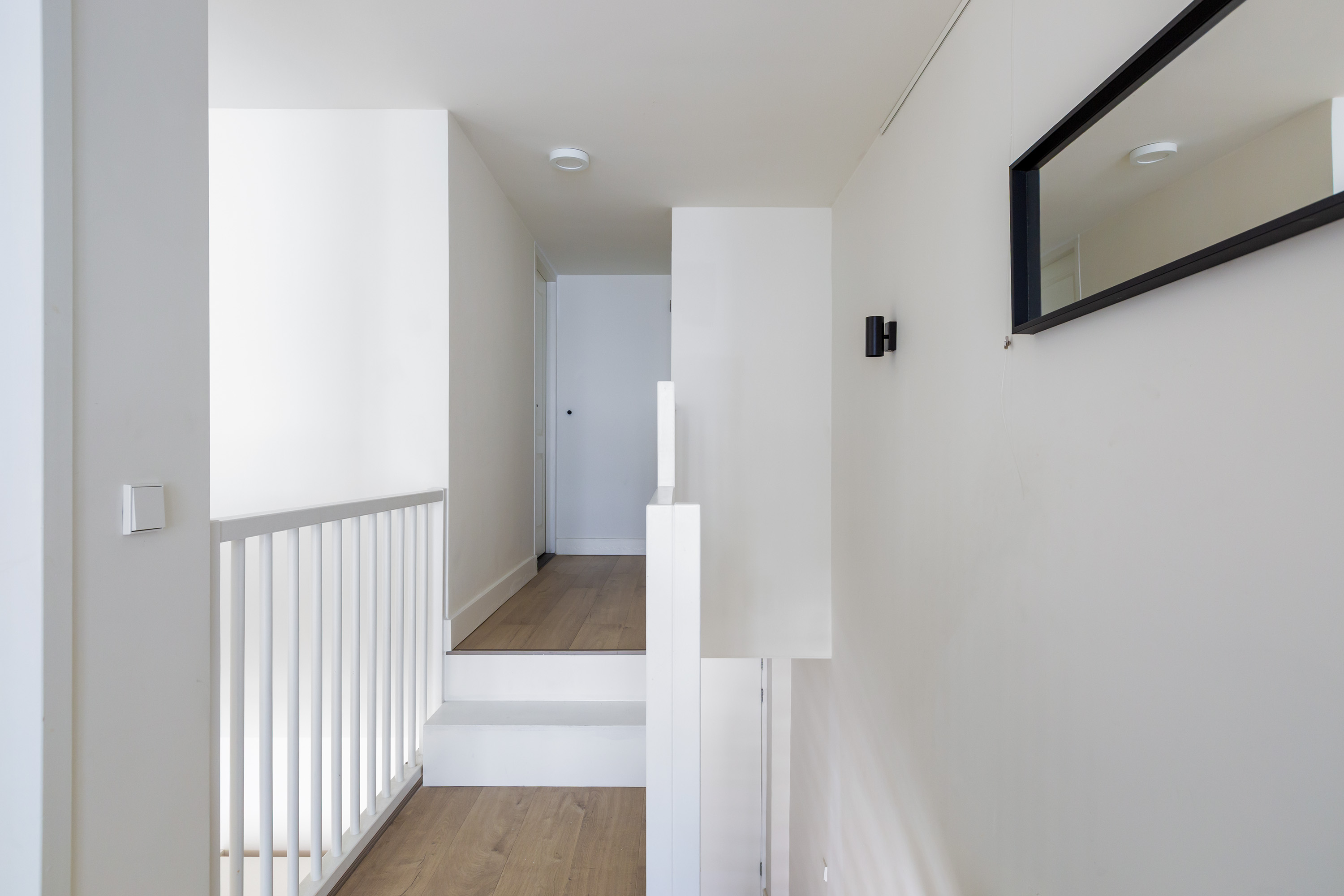 Via een korte trap bereik je de vide op de eerste verdieping, die een prachtige toevoeging is aan de woning en voor een speels effect zorgt. Op deze verdieping bevinden zich twee fijne slaapkamers. De kamers zijn veelzijdig te gebruiken, of je nu extra slaapkamers nodig hebt, een werkruimte of een hobbykamer.