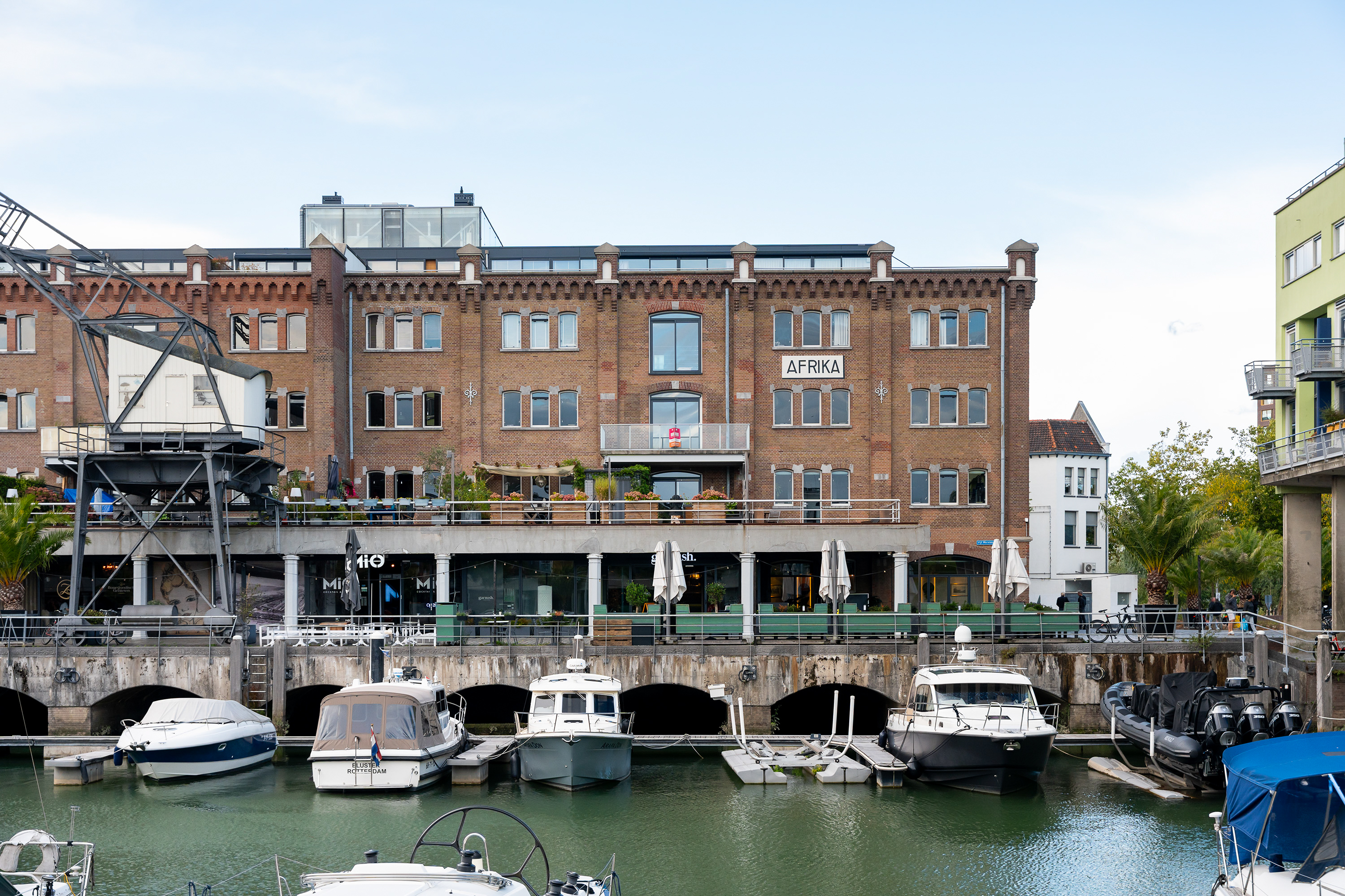 Het karakteristieke pakhuis “De Vijf Werelddelen”, daterend uit 1879, was oorspronkelijk in gebruik voor op- en overslag van suiker, peper en nootmuskaat. In 1997 is het gebouw herontwikkeld tot een complex met luxe woningen, kantoren, winkels en een jachthaven. Onder regie van de Rotterdamse binnenhuisarchitect Adriaan van Houdt is het oorspronkelijke karakter van dit rijksmonument gecombineerd met moderne materialen. Originele elementen als oude stalen draagbalken, origineel metselwerk gecombineerd met transparante glazen liften, loopbruggen en een glazen atrium maken dit gebouw tot een markant complex.
