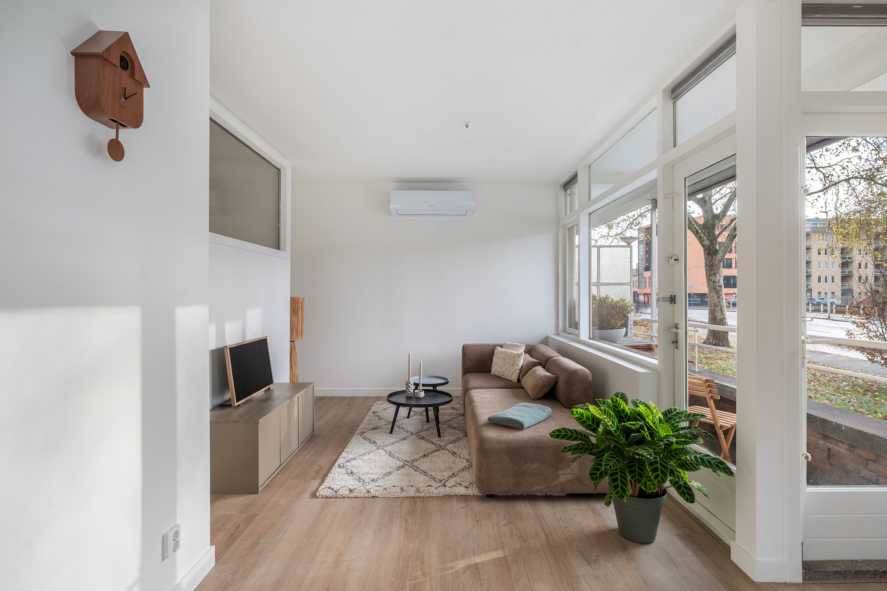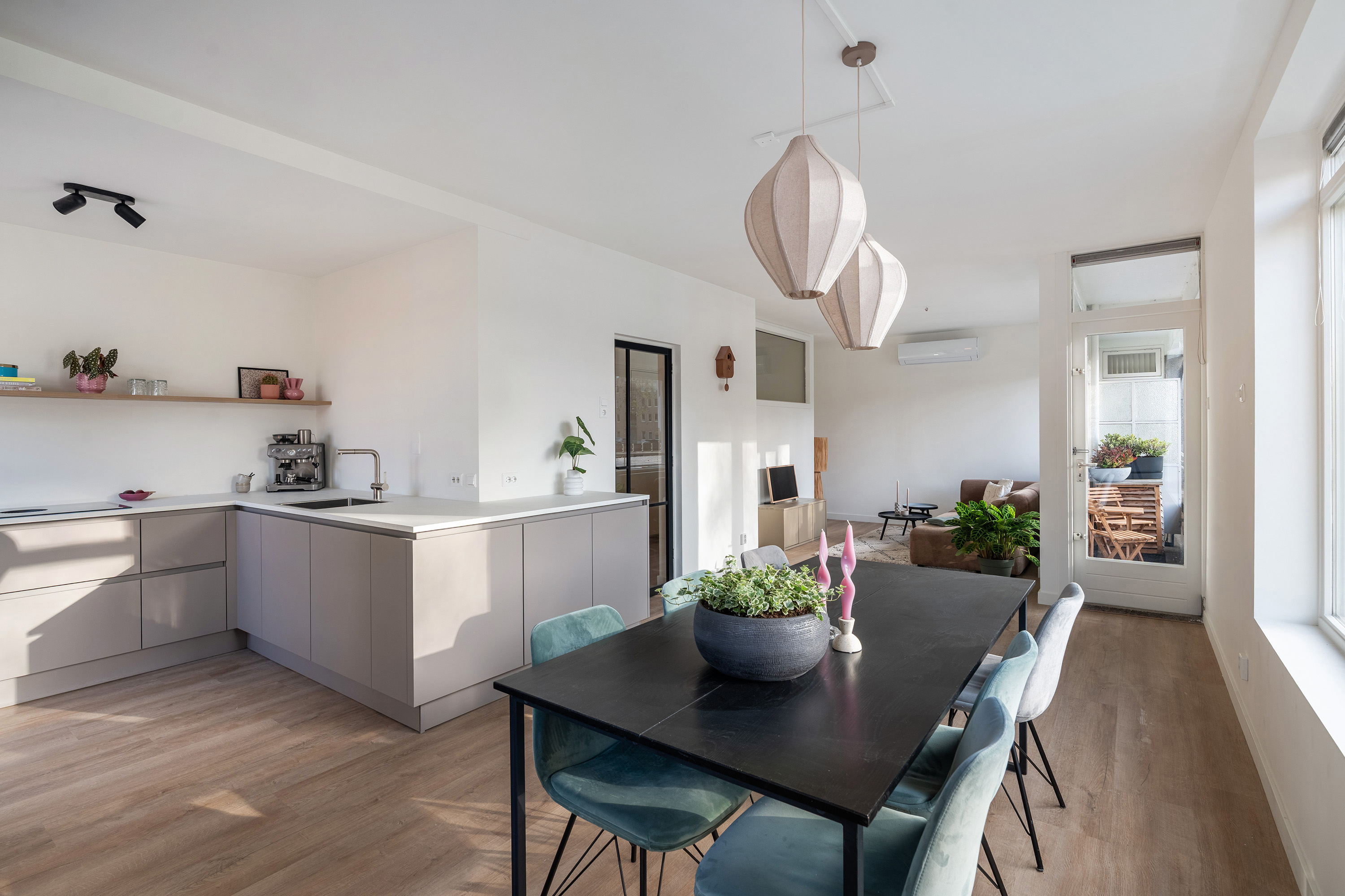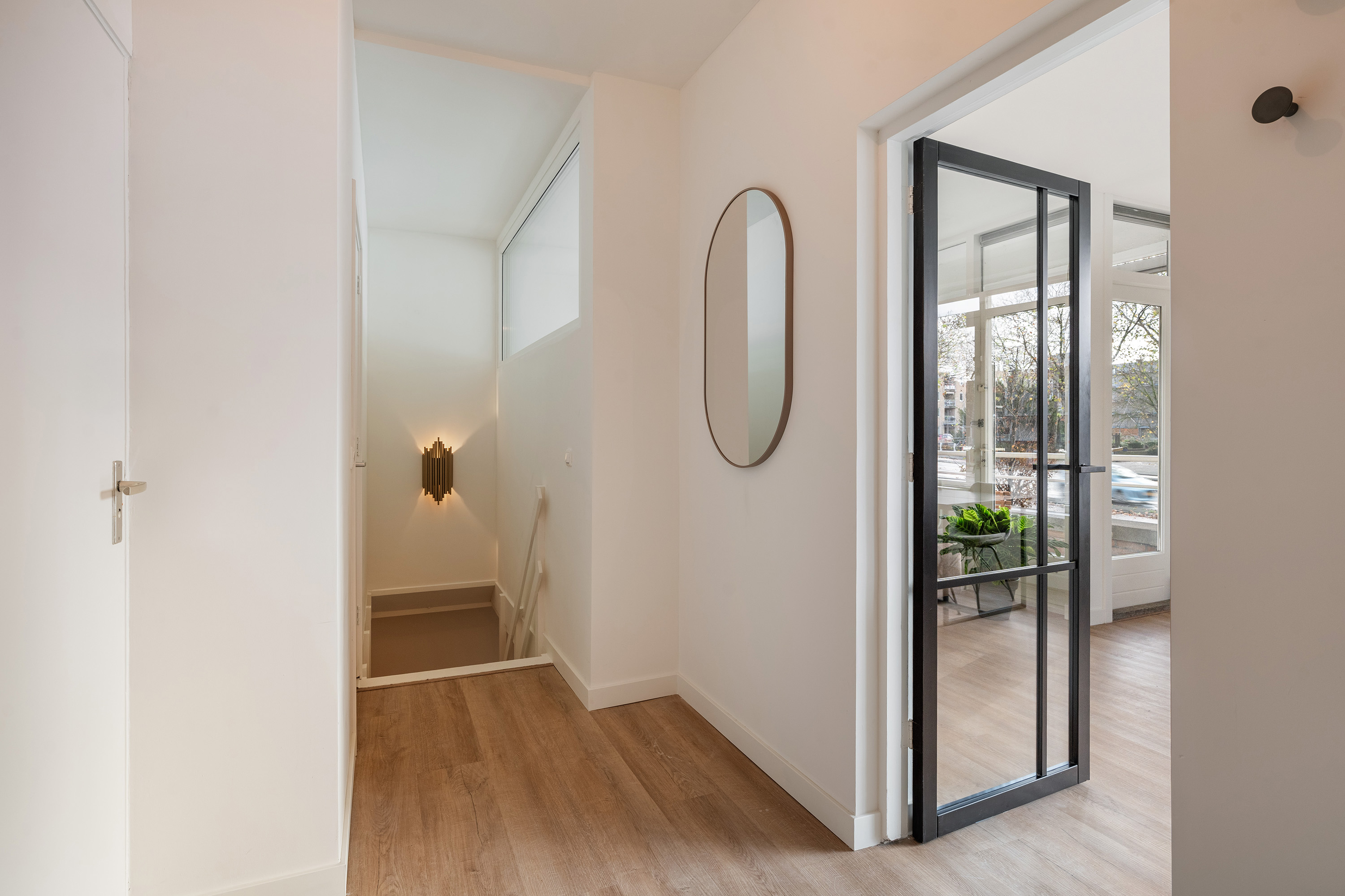 Bij binnenkomst in de ruime entree ervaar je direct de prettige verbinding met de verschillende vertrekken. Het appartement is in 2025 volledig gerenoveerd en ademt daardoor de luxe en trends van nu. Stap het leefgedeelte binnen, waar de grote raampartijen over de volledige voorzijde voor een indrukwekkende lichtinval zorgen. De afwerking is neutraal, hoogwaardig en fris: een strakke pvc-vloer en glad gestuukte wanden vormen de perfecte basis.