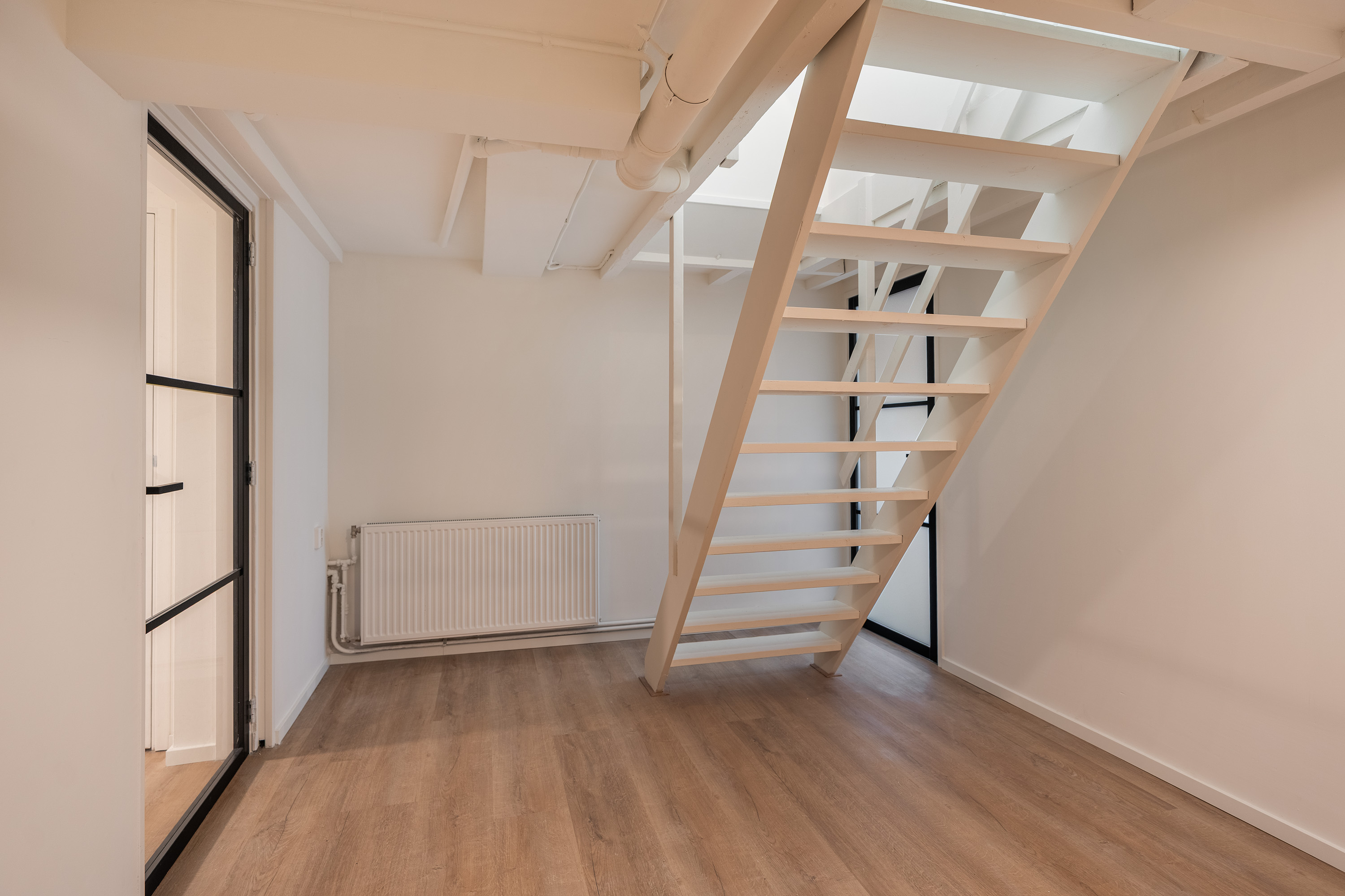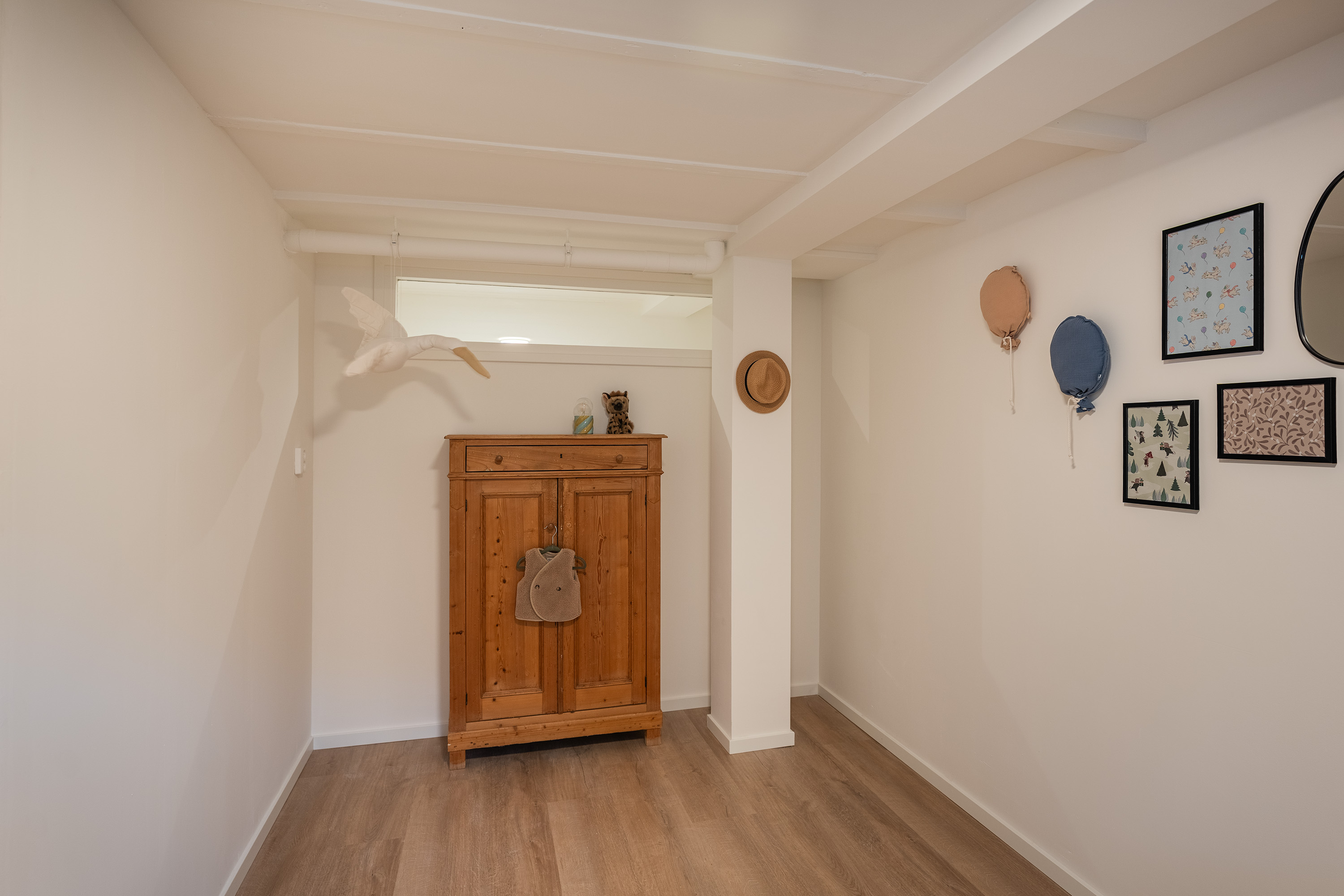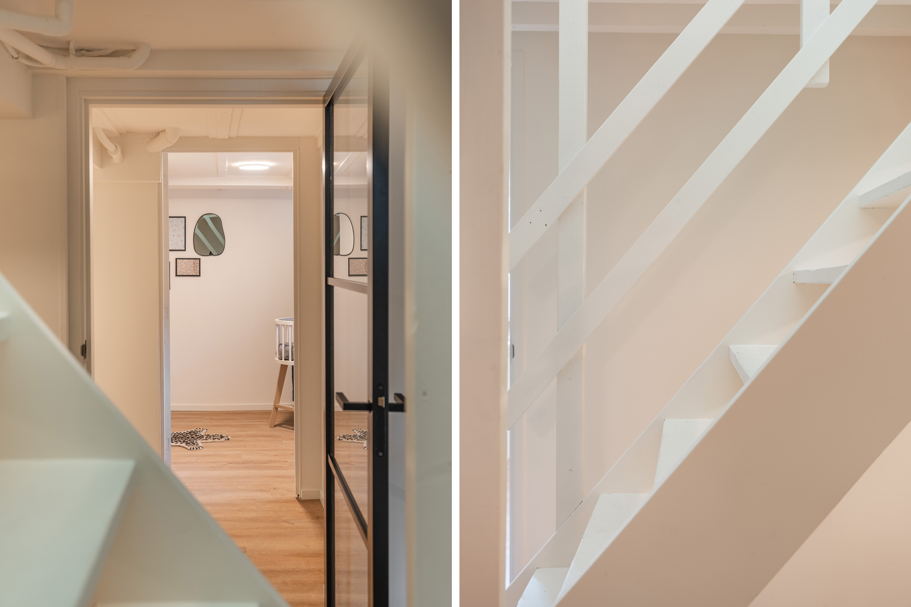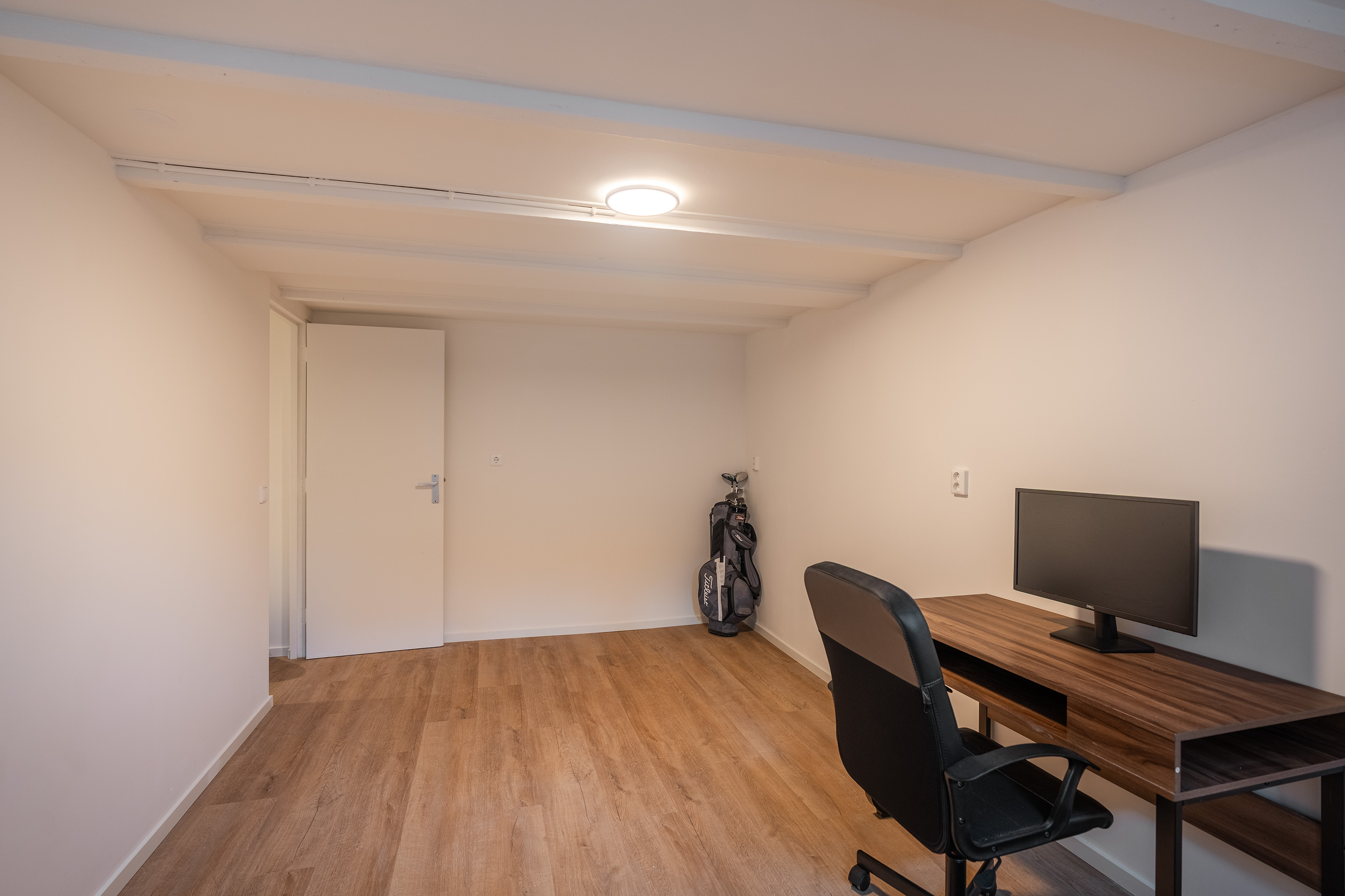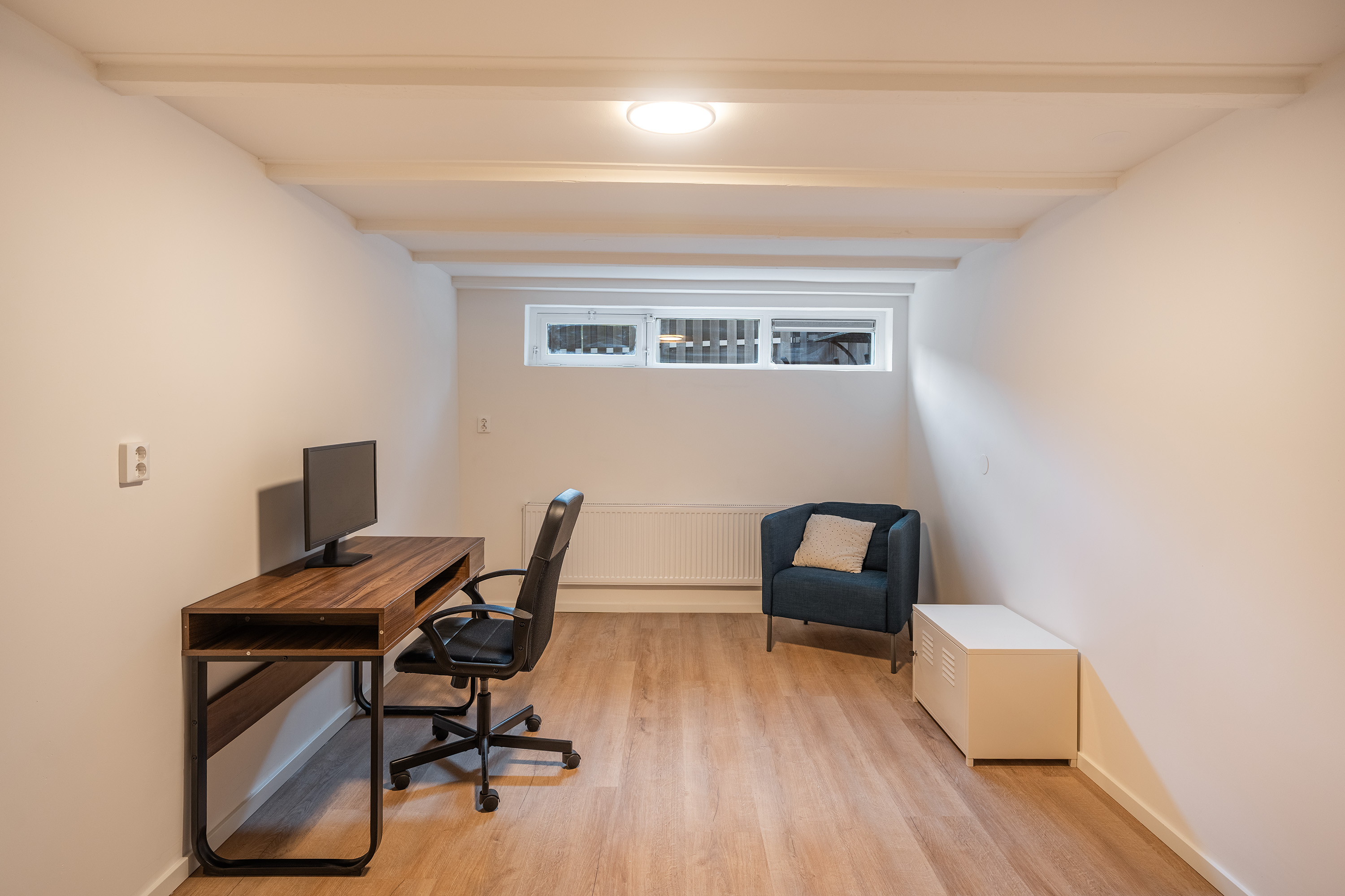 Via de hal op de eerste etage bereik je de slaapverdieping in het souterrain. De hoogwaardige afwerking van boven is hier volledig doorgezet: ook in het souterrain zijn de vloer, wanden en plafonds perfect afgewerkt. Alles is tot in detail verzorgd.
