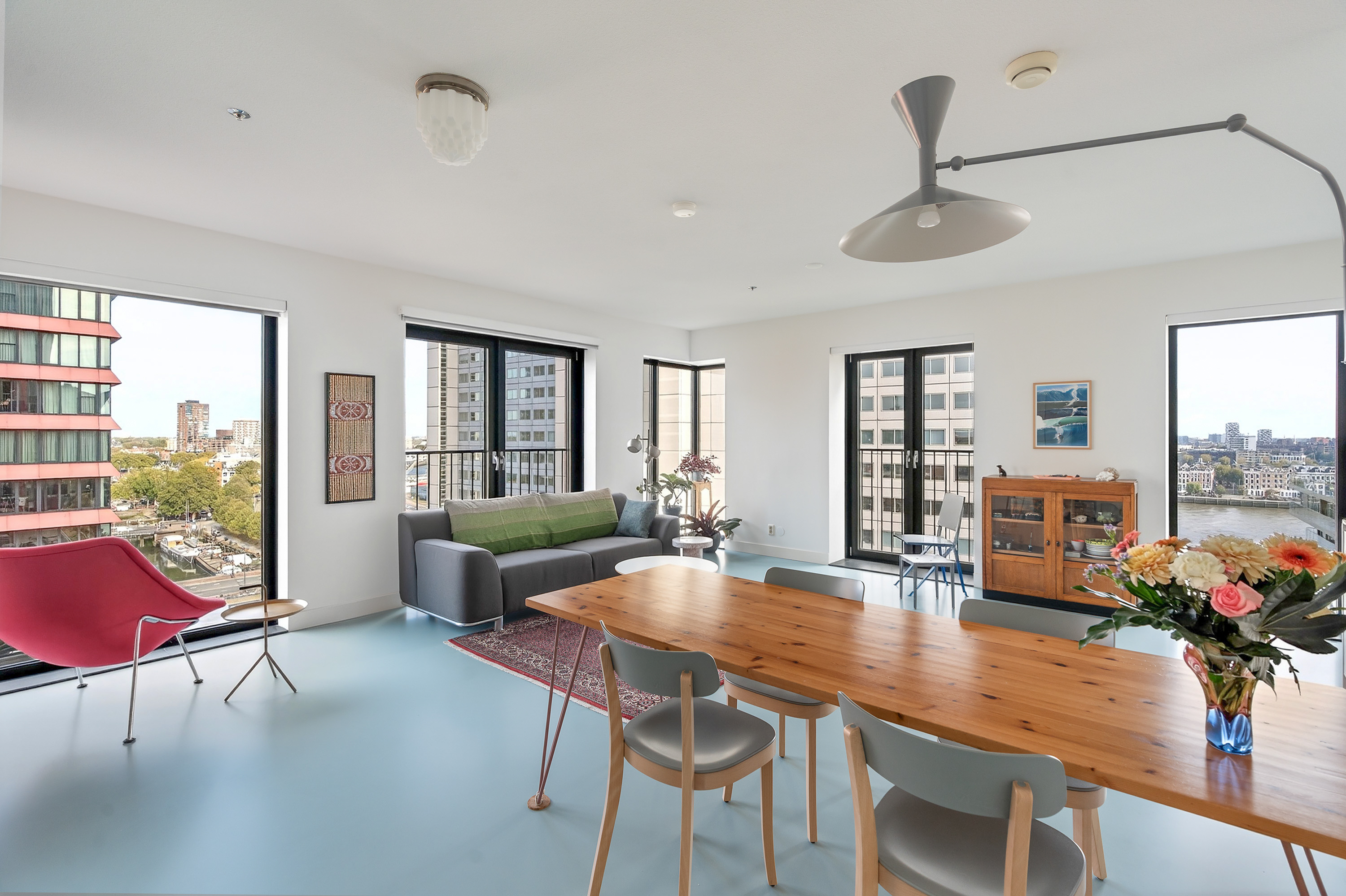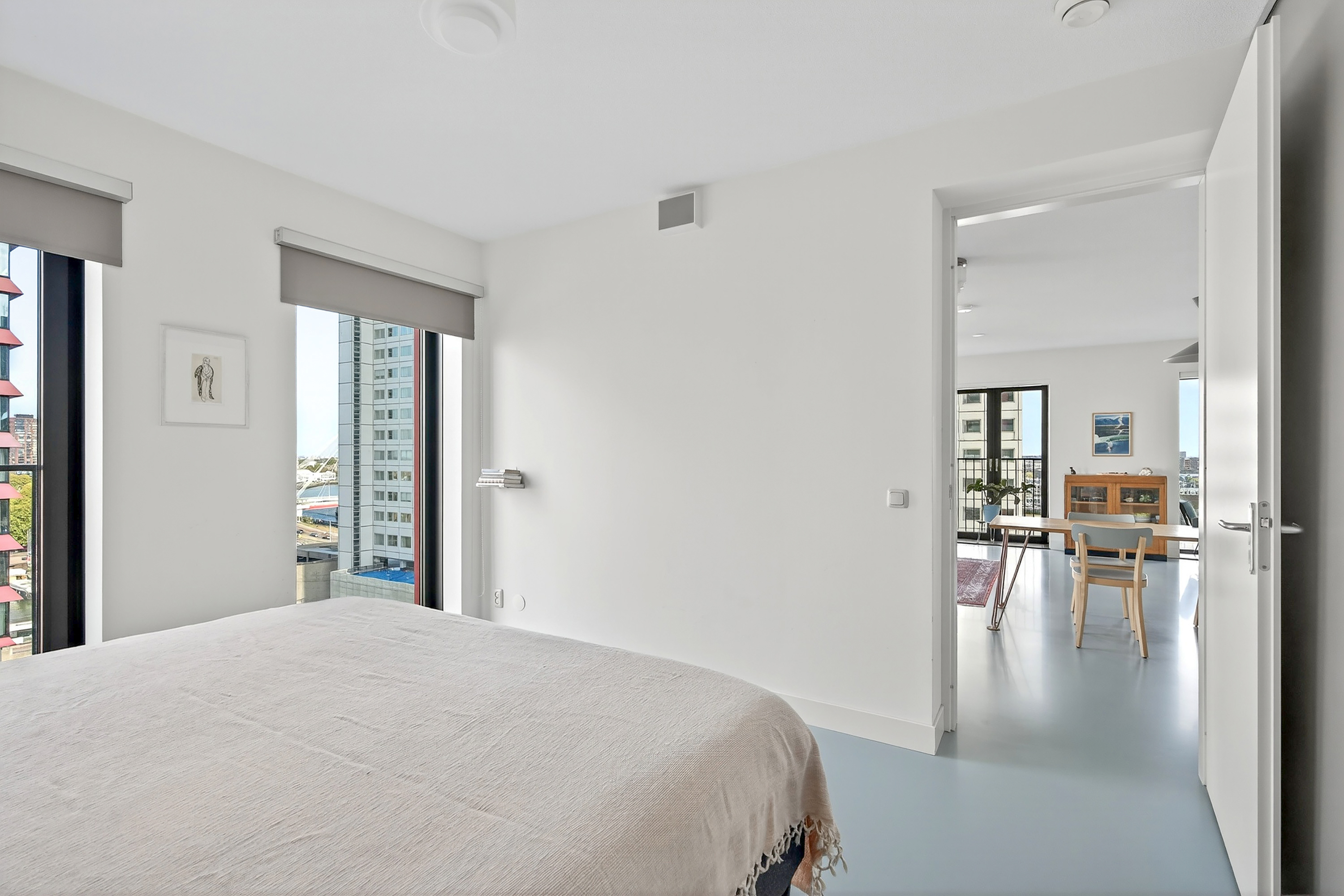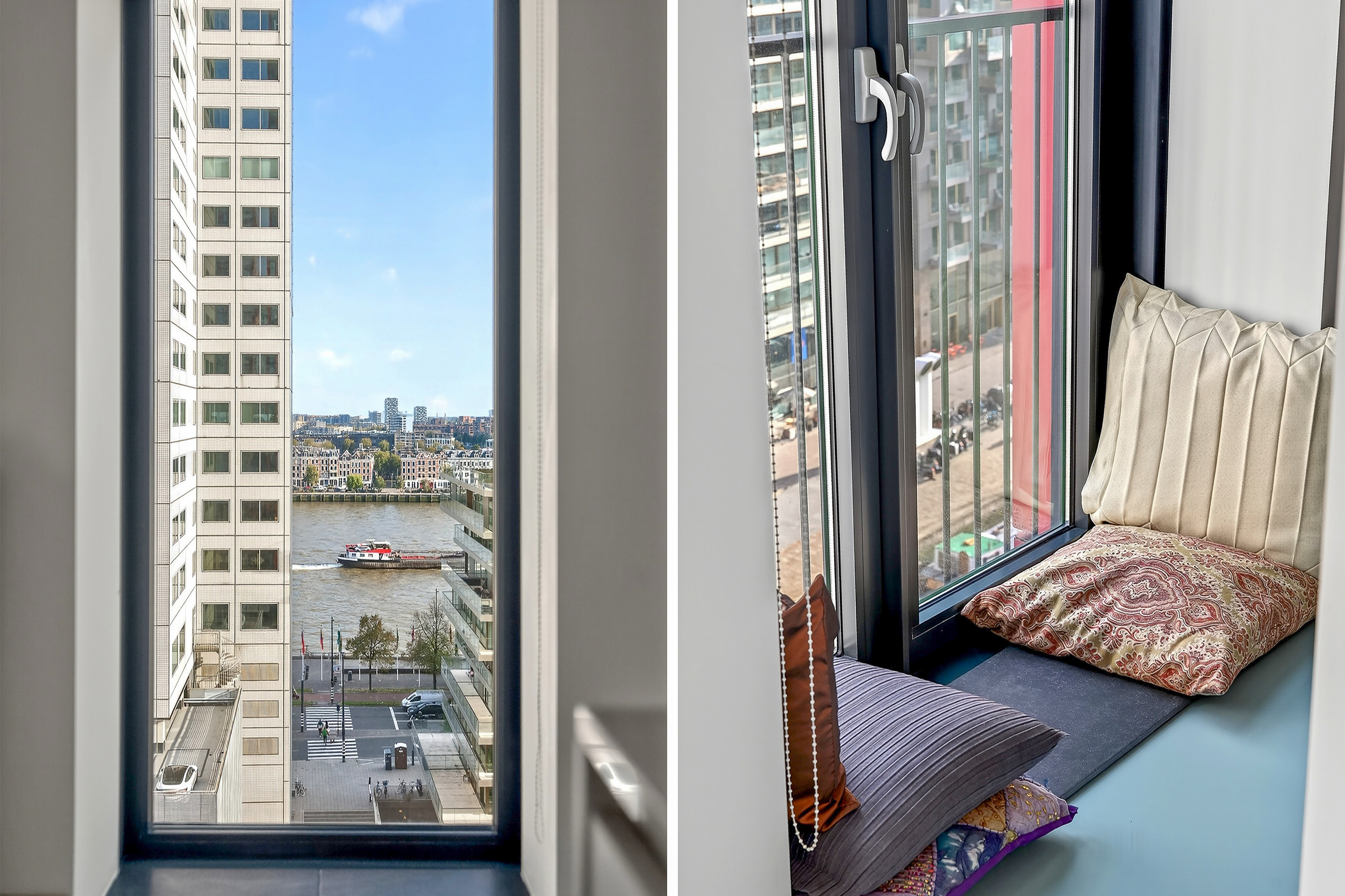 Modern wonen met een panoramisch uitzicht! Dit lichte en ruimtelijke 3-kamerappartement op de 12e verdieping biedt een magnifiek uitzicht over de stad: het Noordereiland, de Maas, de Oude Haven en Terraced Tower. De open keuken sluit naadloos aan op de woonkamer, terwijl de stoere gietvloer en strak afgewerkte wanden zorgen voor een moderne uitstraling. De woning bestaat uit een woonkamer en 2 slaapkamers, waarvan er een in open verbinding staat met de keuken en woonkamer. Met energielabel A+ geniet je hier van een optimaal wooncomfort. Bovendien liggen alle stadse voorzieningen binnen handbereik, waardoor je het beste van het bruisende stadsleven en het comfort van thuis combineert.