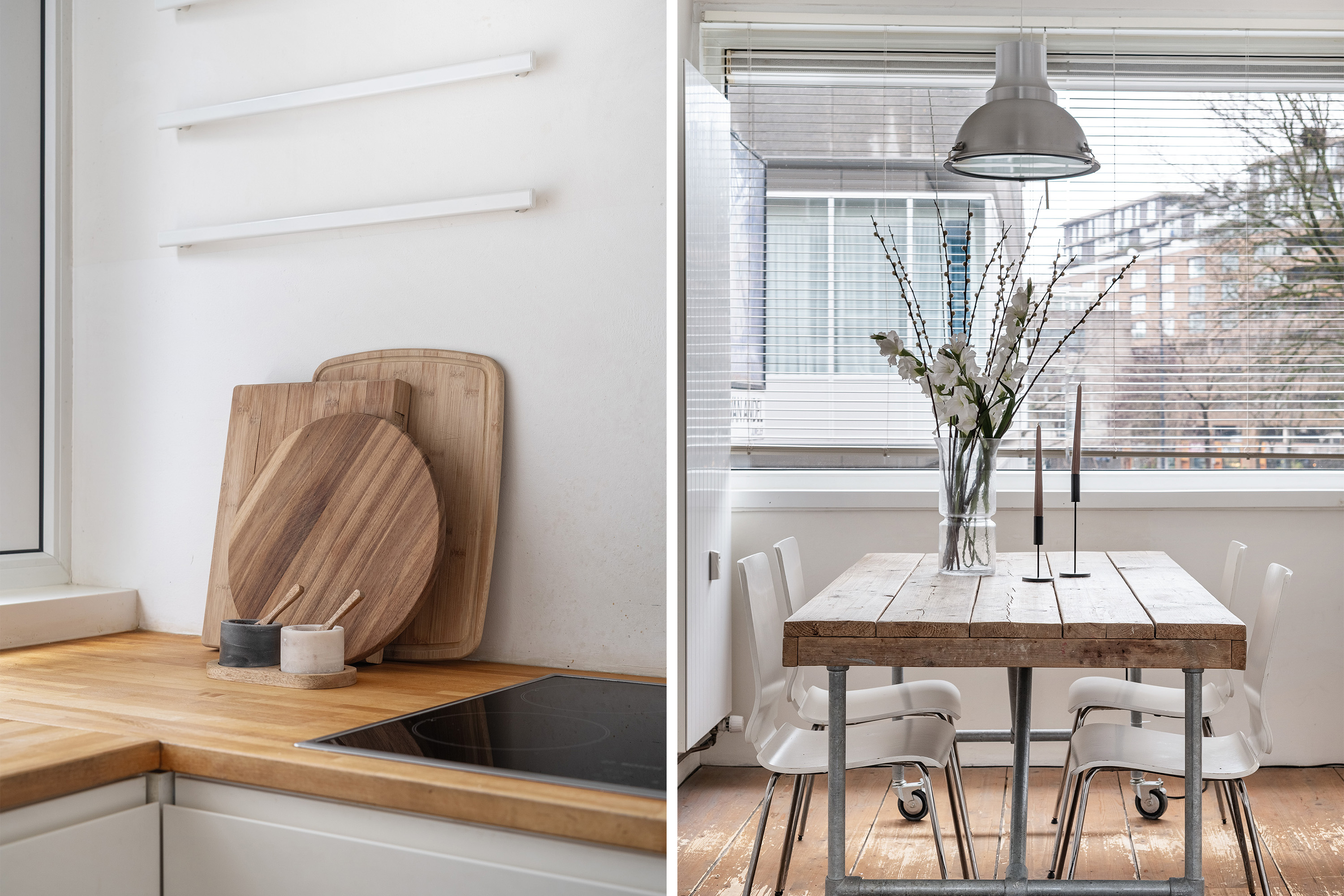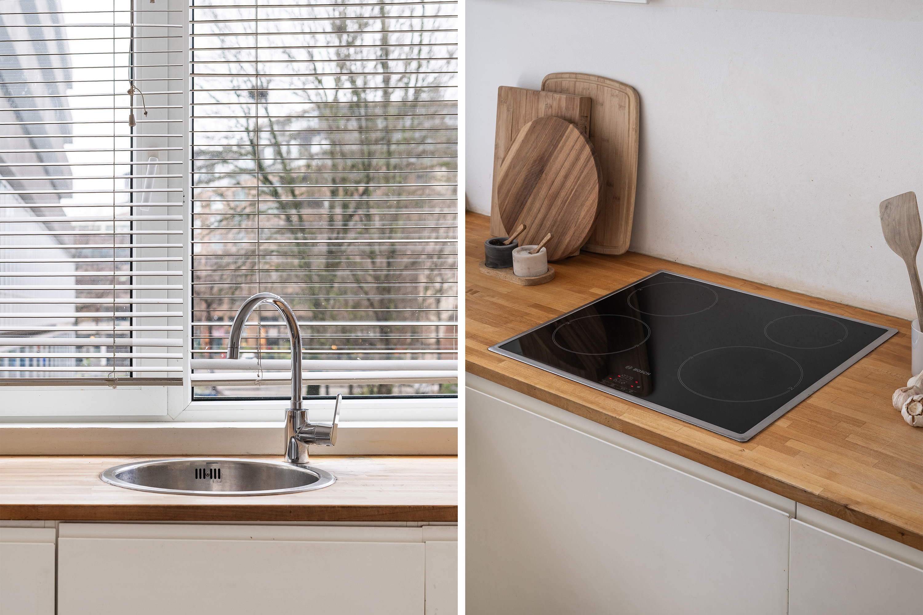 Aan de achterzijde bevindt zich het eetgedeelte. Een ruime, lichte plek met een raampartij over de volle breedte van de woning. Hier geniet je tijdens het diner van het vele daglicht dat binnenvalt. De moderne keuken sluit hier naadloos op aan en is van alle gemakken voorzien. Denk aan een elektrische kookplaat, afzuigkap, magnetron, oven, koel-vriescombinatie en vaatwasser. Alles binnen handbereik voor een gezellige avond koken of uitgebreid tafelen.
