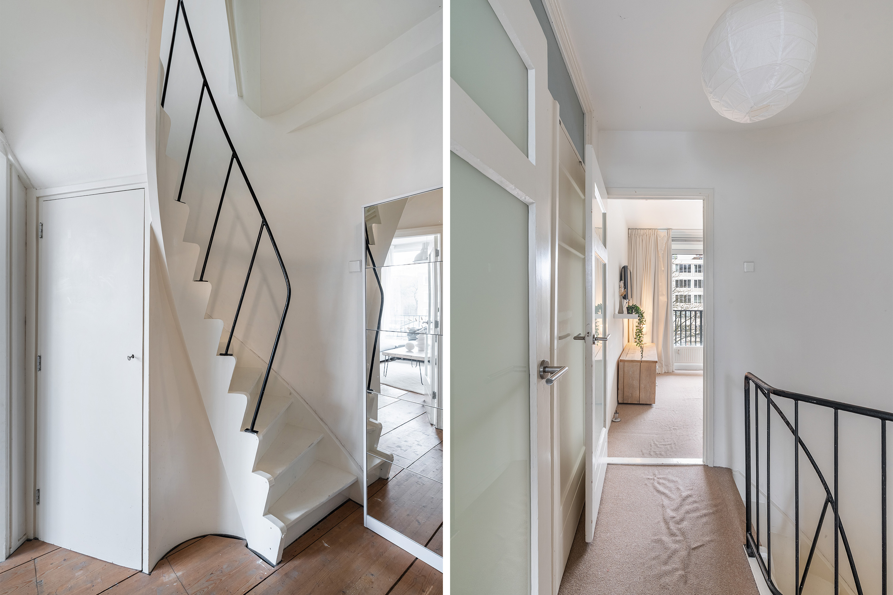 De bovenverdieping biedt rust en functionaliteit in een prettig ingedeelde setting. Vanaf de overloop bereik je alle vertrekken. De hoofdslaapkamer, gelegen aan de rustige achterzijde, is ruim genoeg voor een groot bed en een royale kastopstelling. Tevens is vanuit hier het tweede balkon dat de woning rijk is, te bereiken.