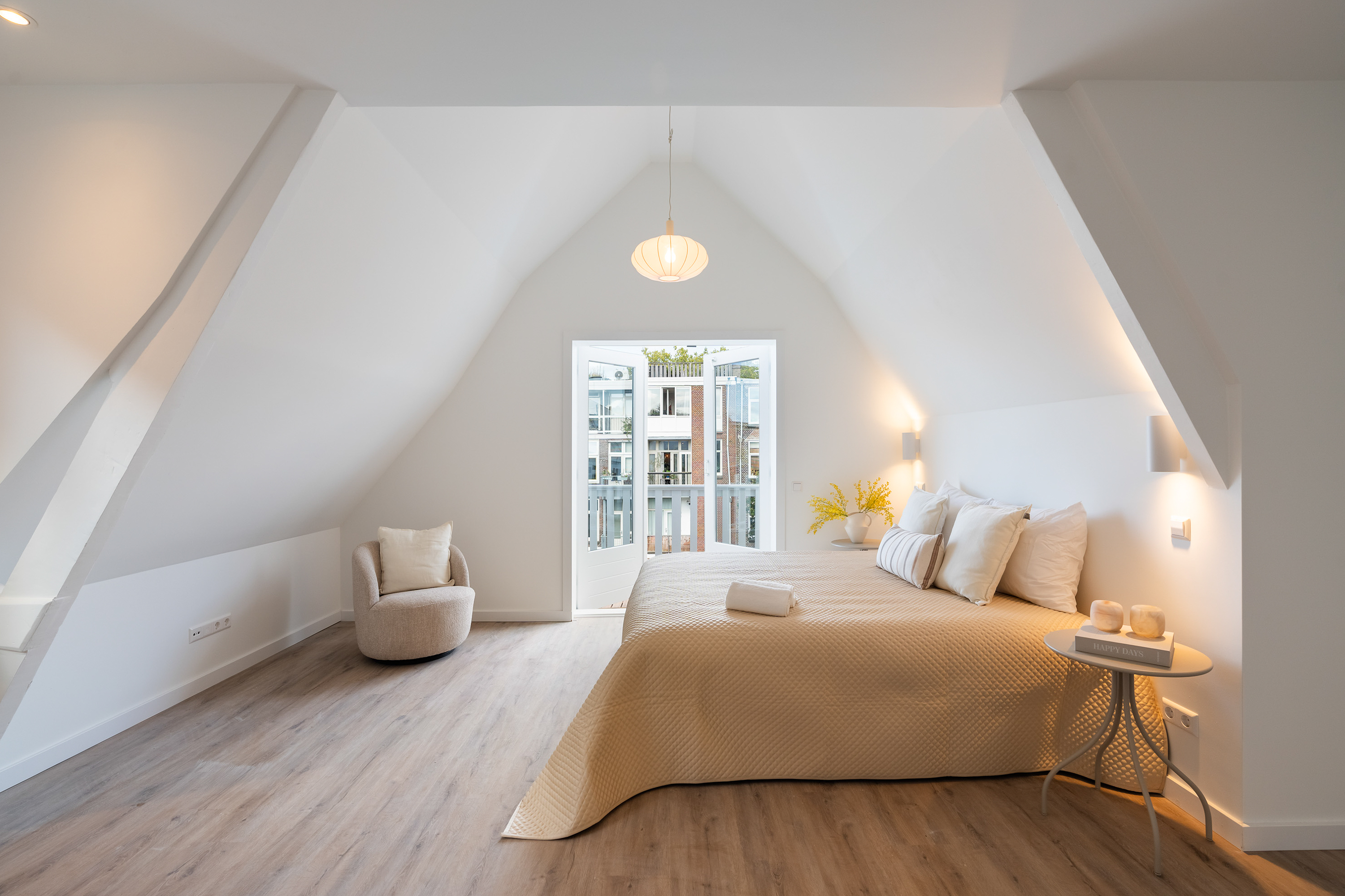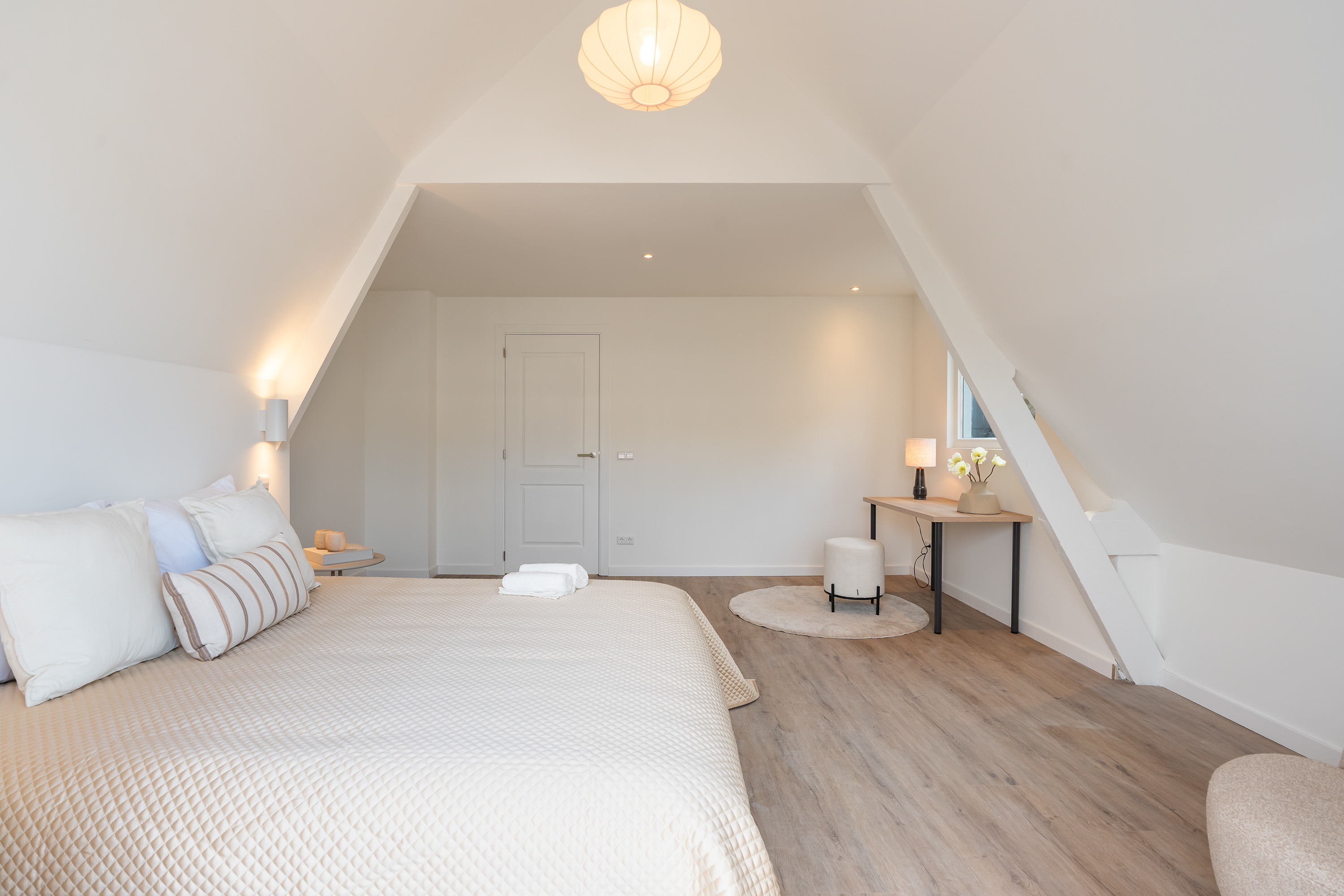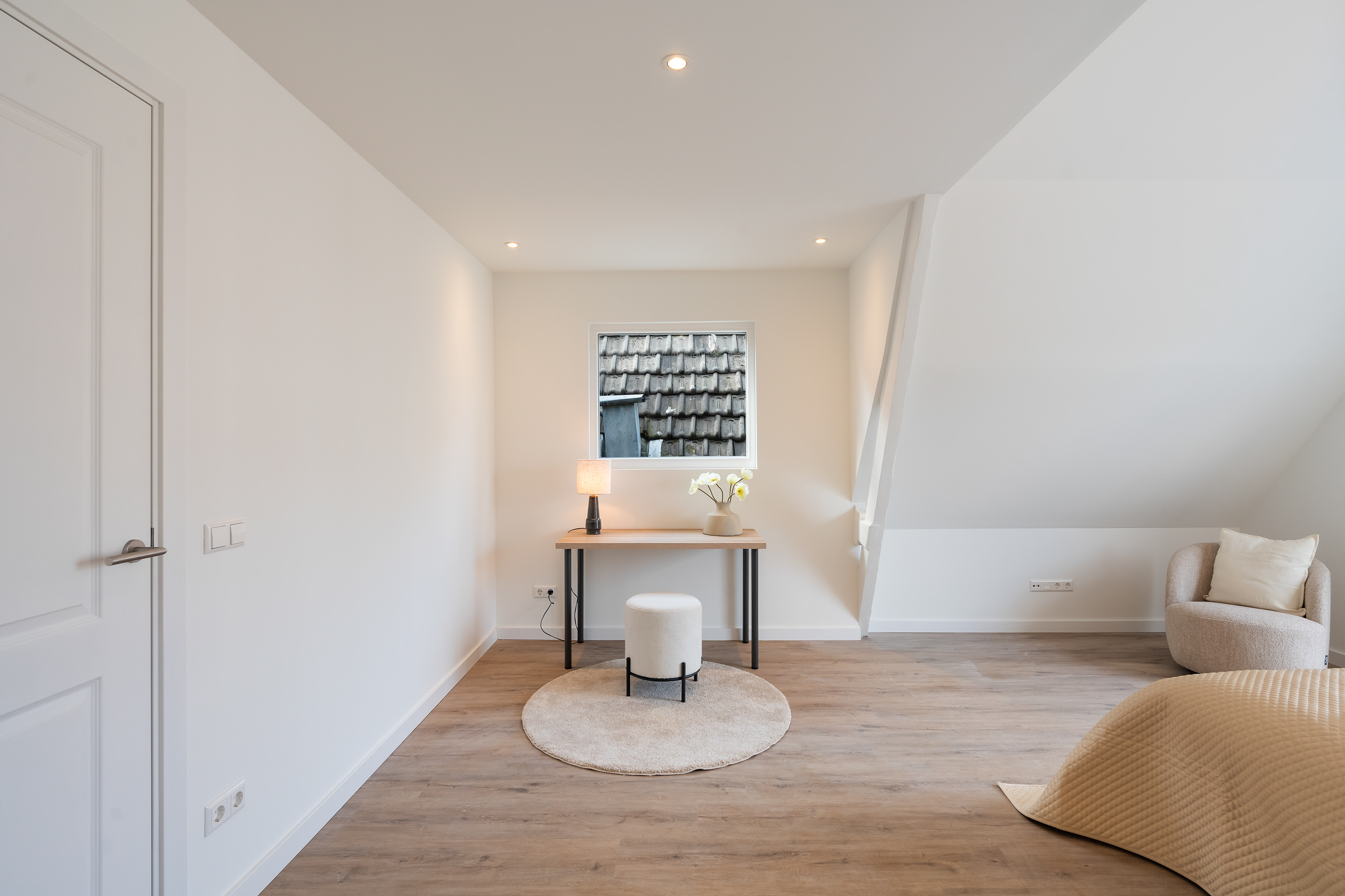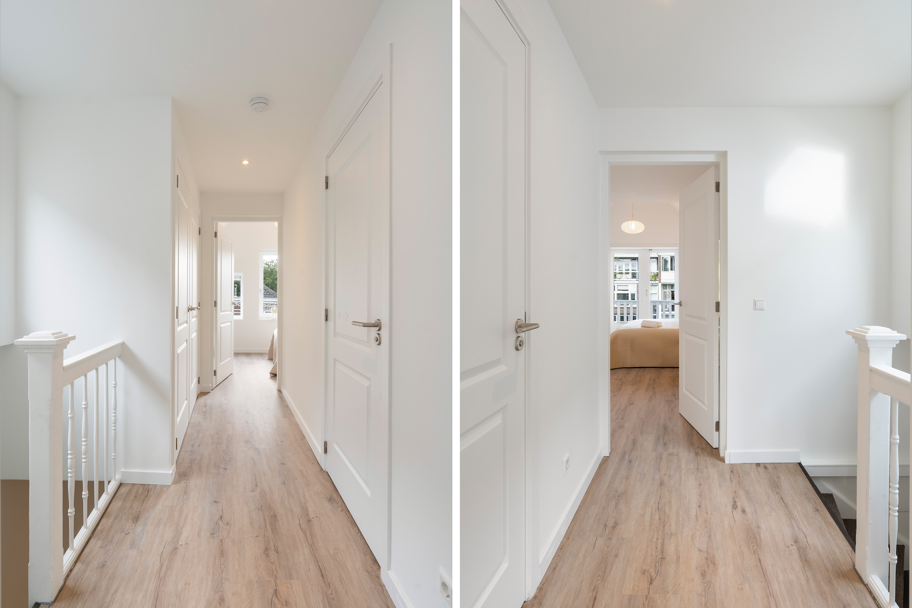 Op deze etage vind je de overloop met toegang tot fijne ruime slaapkamers. Ook is er een praktische kast met aansluiting voor de wasmachine en de cv-ketel (2025). De luxe badkamer is werkelijk een plaatje, voorzien van een ligbad, royale inloopdouche, tweede toilet, dubbele wastafel met een stijlvol houtlook meubel en grote spiegels. Vanuit de hoofdslaapkamer heb je direct toegang tot het tweede balkon, waar je in alle rust van de buitenlucht kunt genieten.