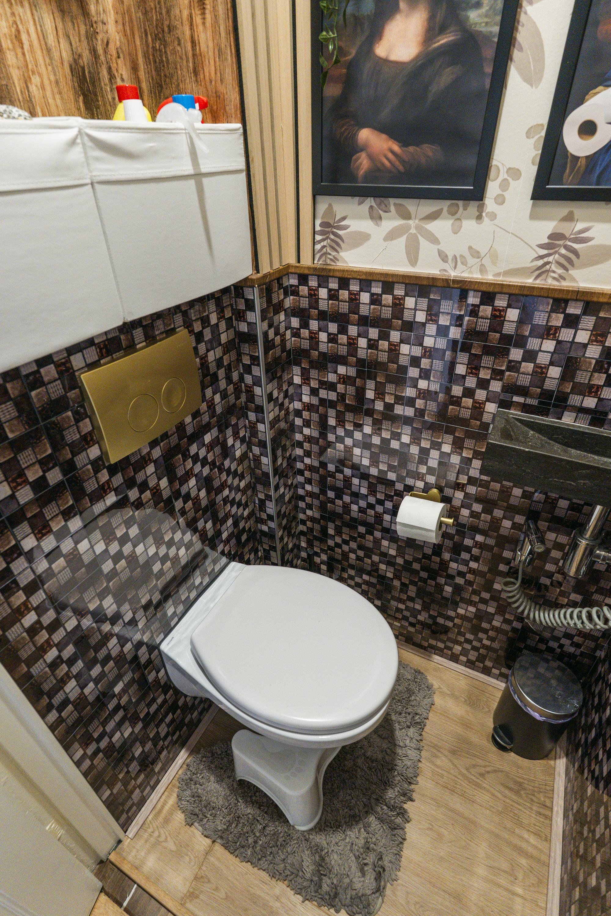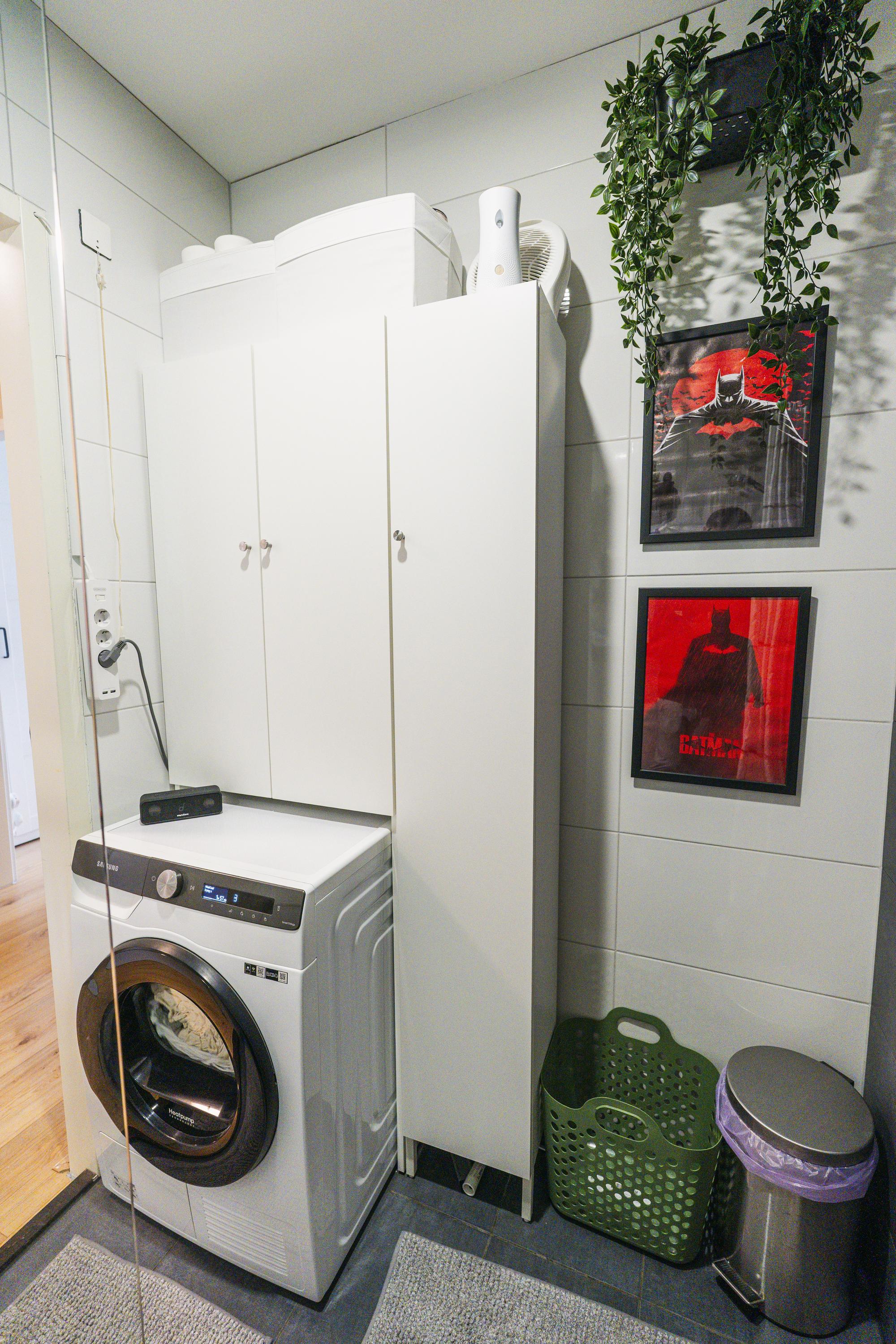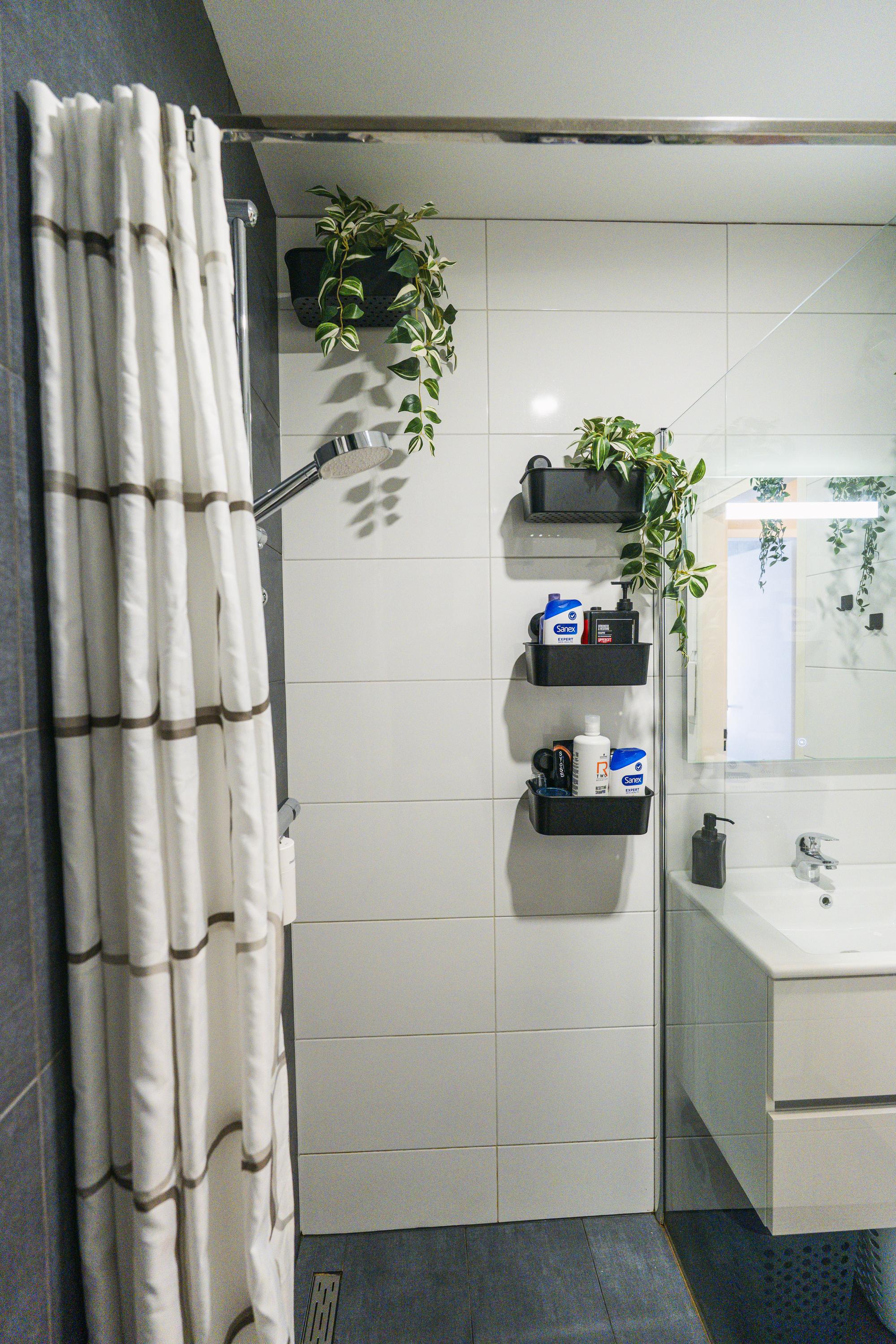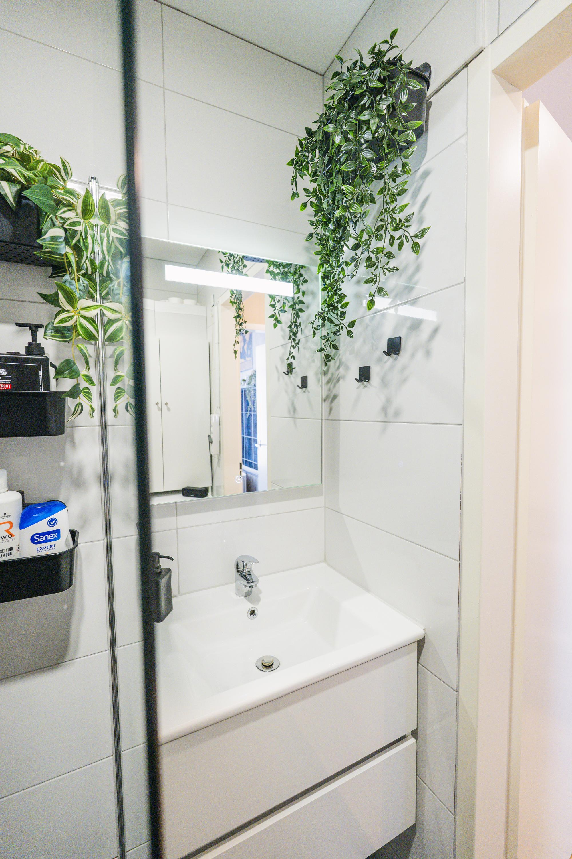 De badkamer is voorzien van een inloopdouche en een wastafelmeubel. Daarnaast is er een separaat toilet aanwezig. Ook beschikt de woning over een praktische wasruimte voor de wasmachine en extra bergruimte.