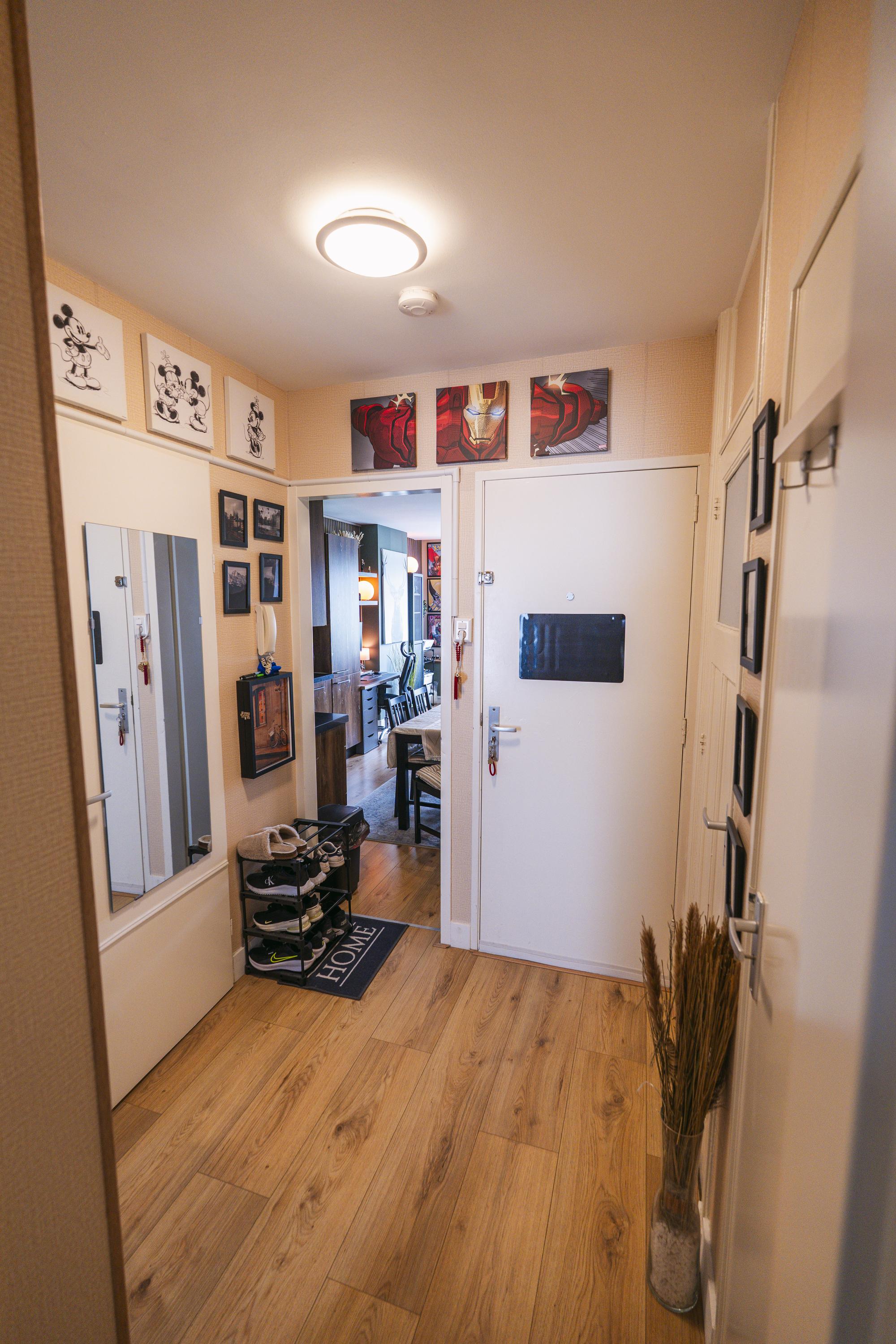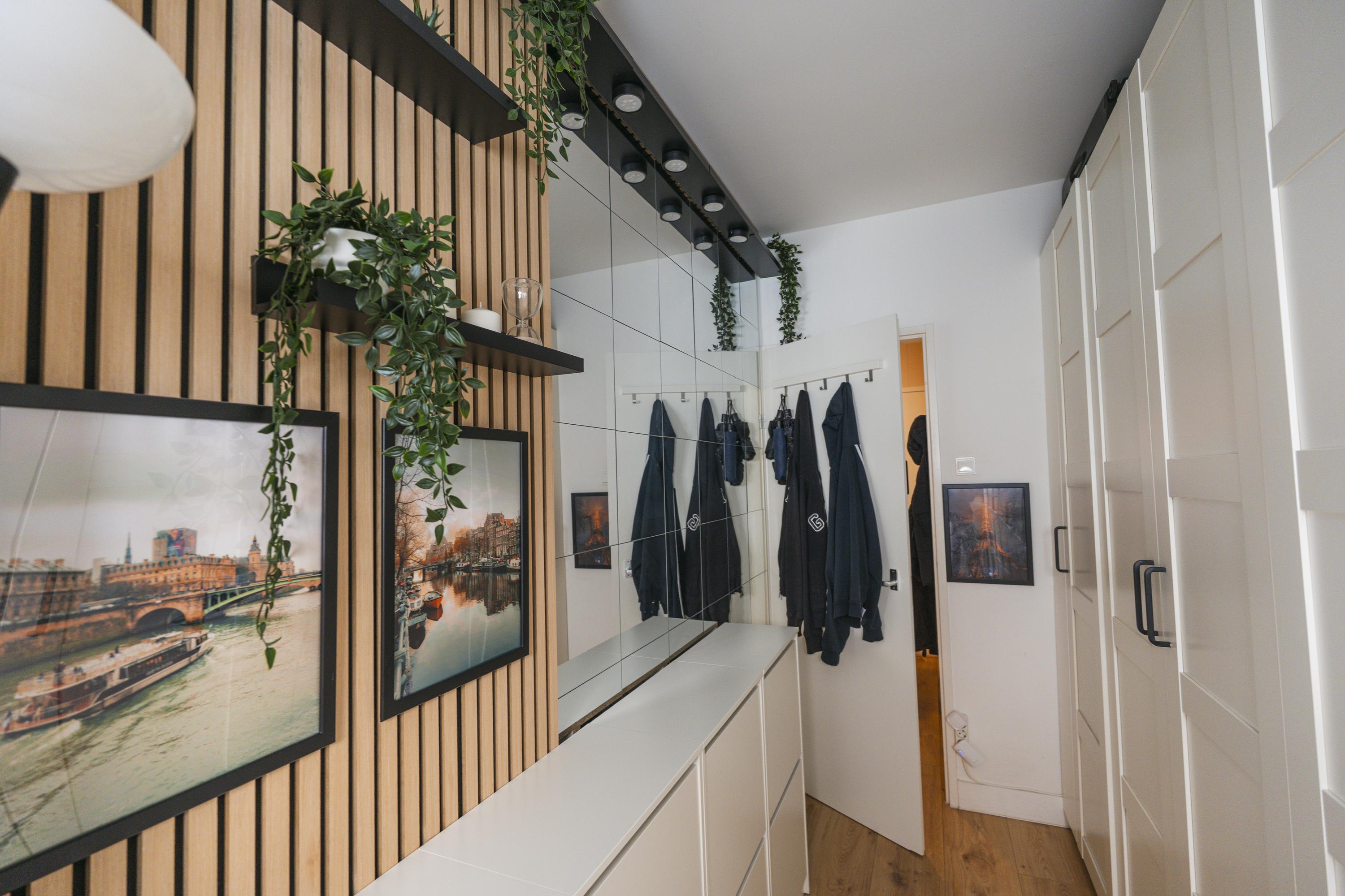 Entree in de hal met toegang tot de verschillende vertrekken. De woonkamer vormt samen met de open keuken een gezellige en lichte leefruimte waar je comfortabel kunt wonen en koken. Dankzij de grote ramen komt er veel daglicht binnen.