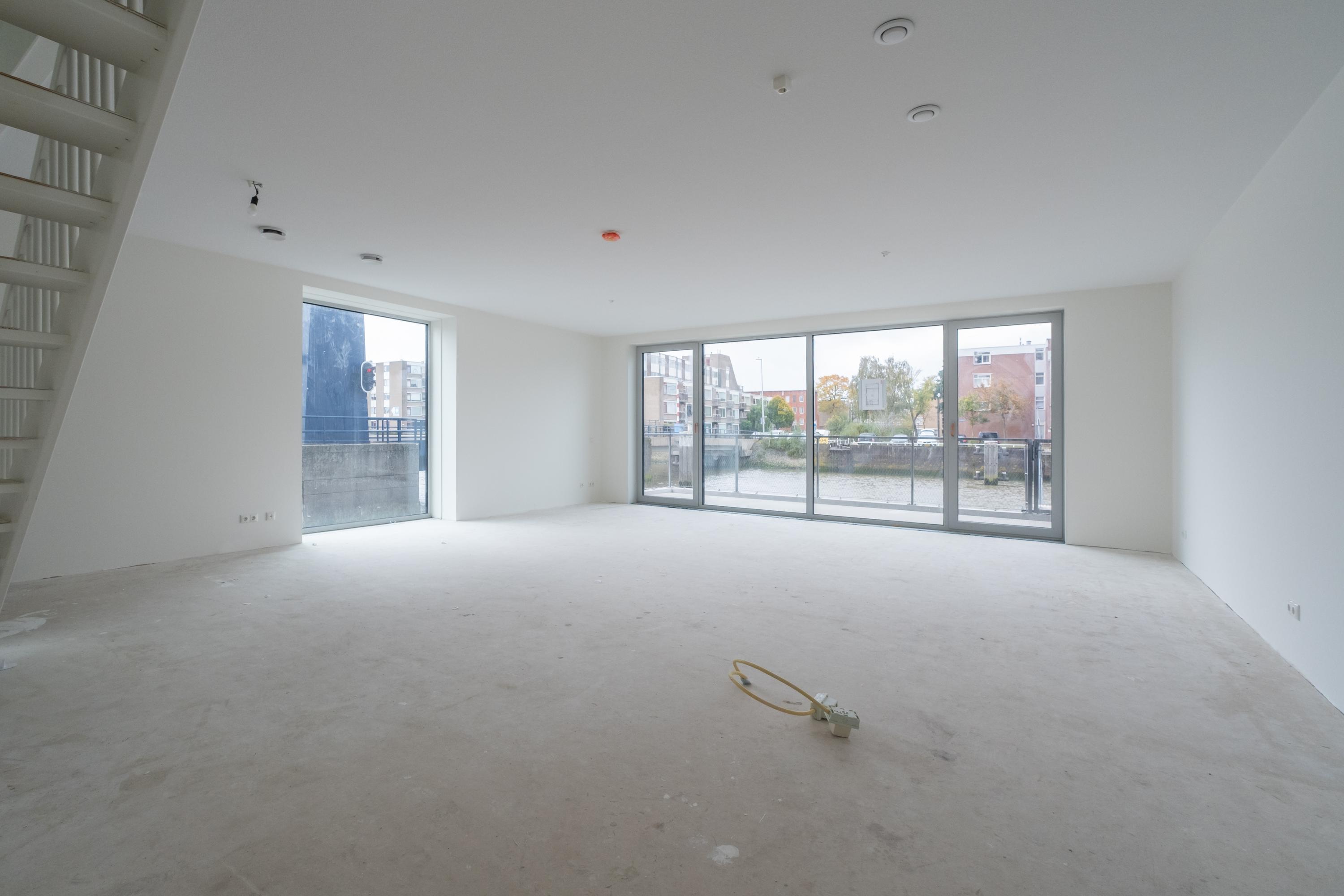 De opzet van de Waterlofts nodigt uit tot gewaagde keuzes. De vide en de verdiepingshoogte van 2,85m zorgen voor het ruimtelijke loftgevoel, de open woonkeuken en living maken dit gevoel compleet. Door breedte van de woning heb je talloze inrichtingsmogelijkheden. Met de trap kun je een statement maken. Stoer, industrieel of juist verfijnd: als je een beetje slim speelt met de zichtlijnen, is het water altijd nabij. En dat is fijn, want wonen aan het water is echt iets bijzonders. Als de zon schijnt, geniet je van de magische glinstering in de haven. En ook als de hemel diepdonker kleurt, zie je dat weerspiegeld in het water.