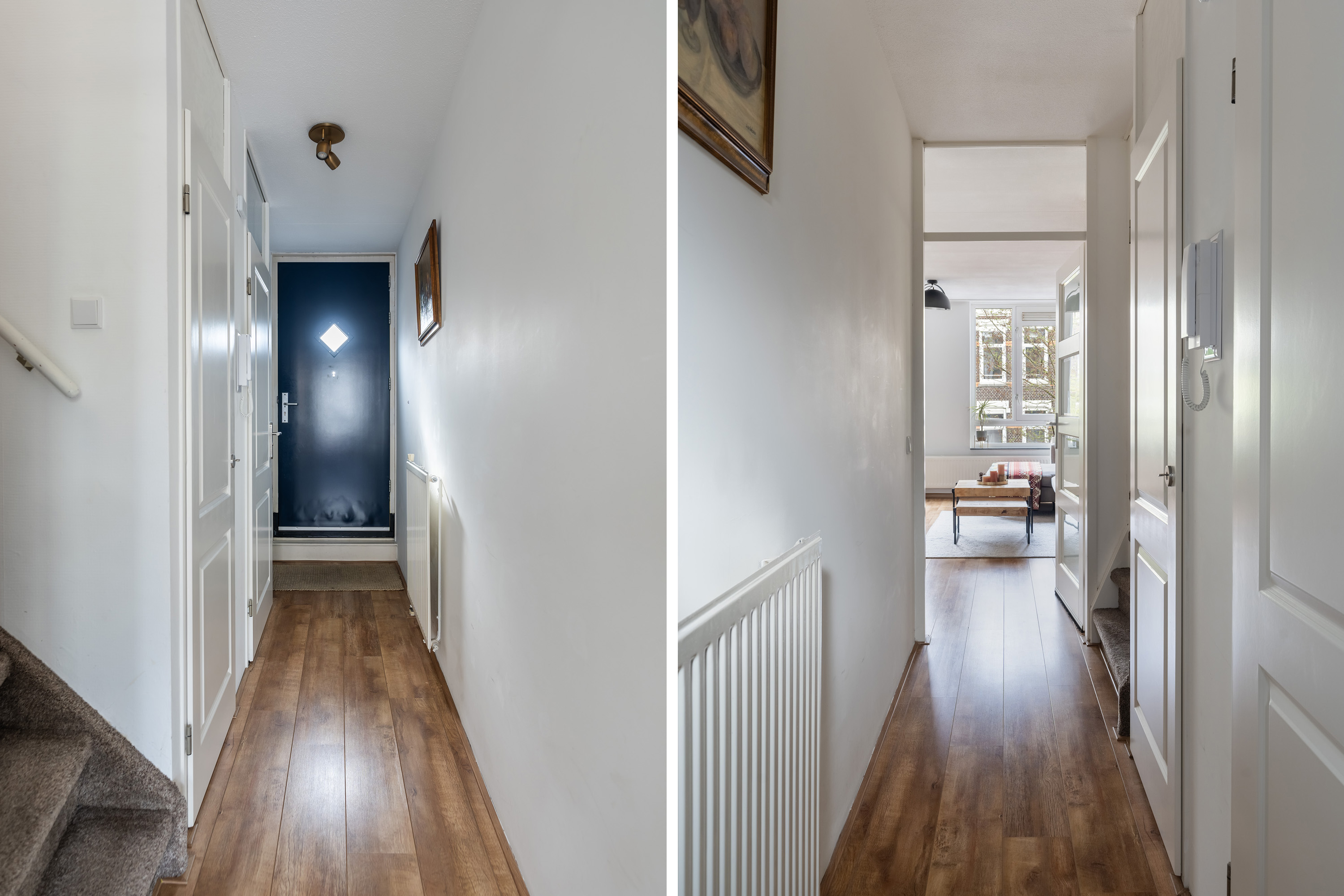 Terug in de entree zijn het separate toilet met fonteintje, de meterkast en de trap naar de derde verdieping te vinden.