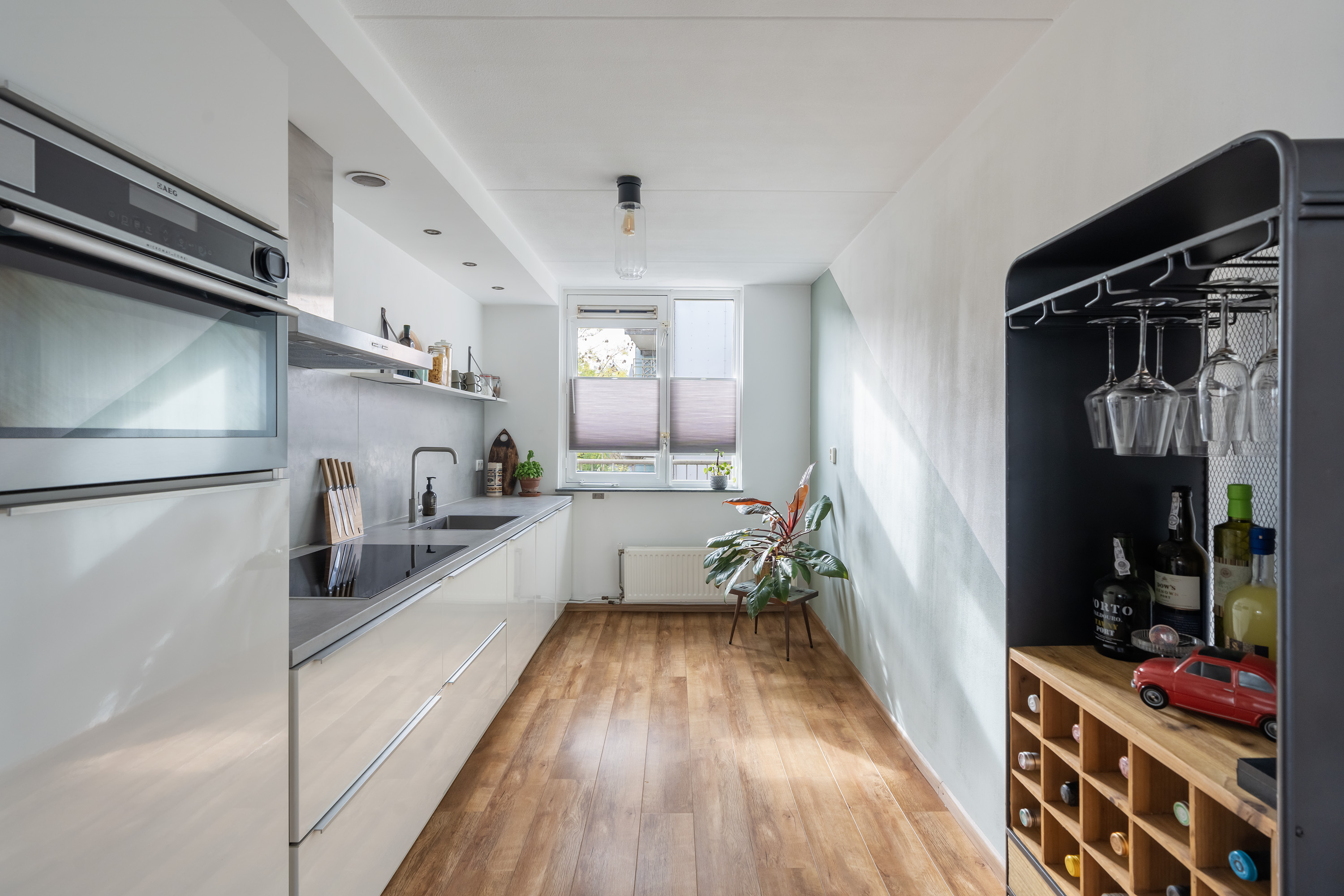 Via de L-vormige entree is er toegang tot het royale leefgedeelte. Wat een heerlijke ruimte met een ideale indeling! Aan de voorzijde bevindt zich de living met voldoende plek voor een gezellige zit- en eethoek. Dankzij de grote raampartijen is er veel natuurlijk licht aanwezig. De keurige afwerking met nette wanden en een laminaatvloer zorgt voor een verzorgde uitstraling. De moderne en ruim opgezette keuken sluit perfect aan bij het geheel en is compleet uitgerust met een inductiekookplaat, afzuigkap, combi-oven, koel- en vriescombinatie en een vaatwasser. Een fijne leefruimte waar comfort en sfeer samenkomen!