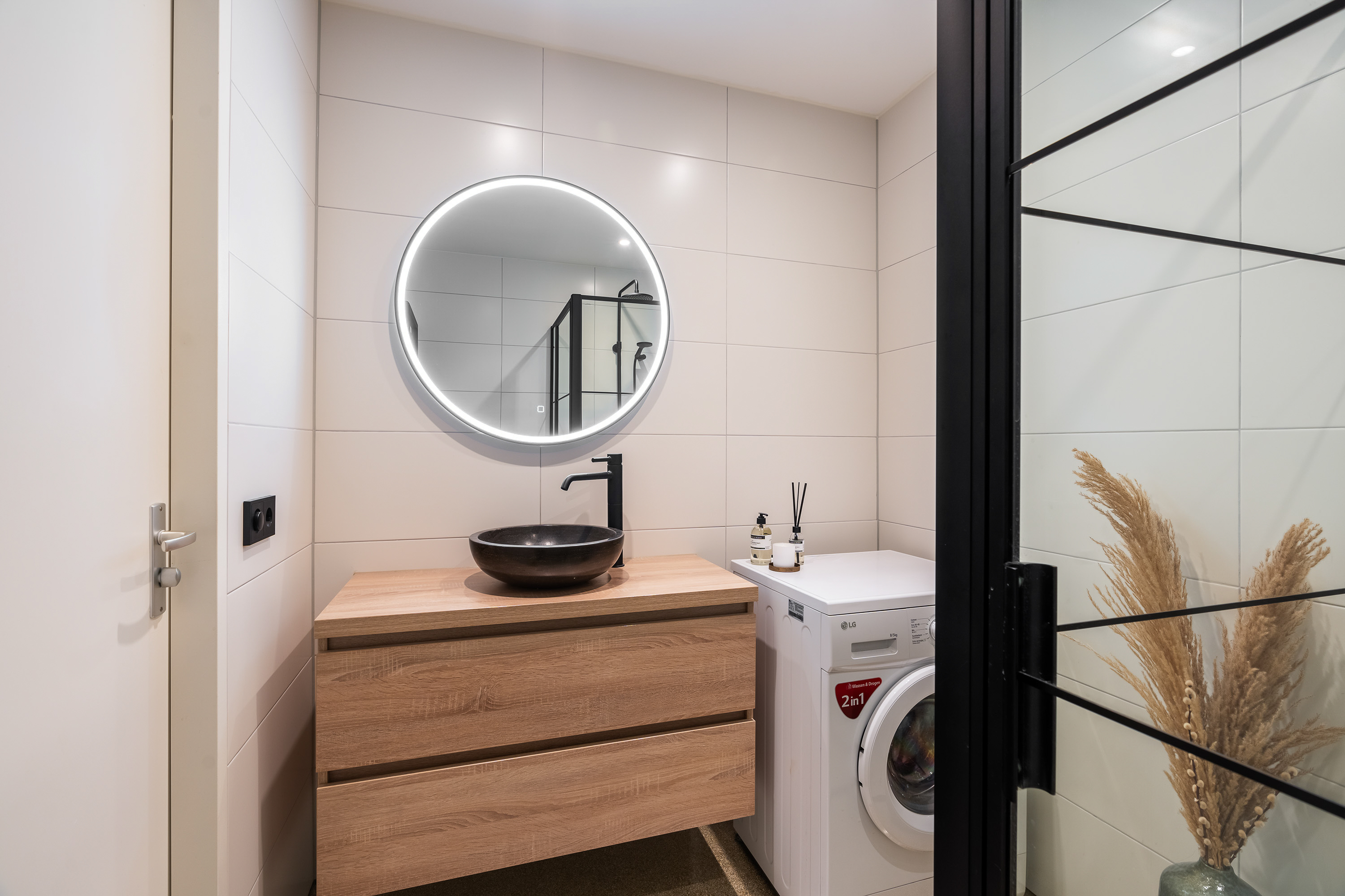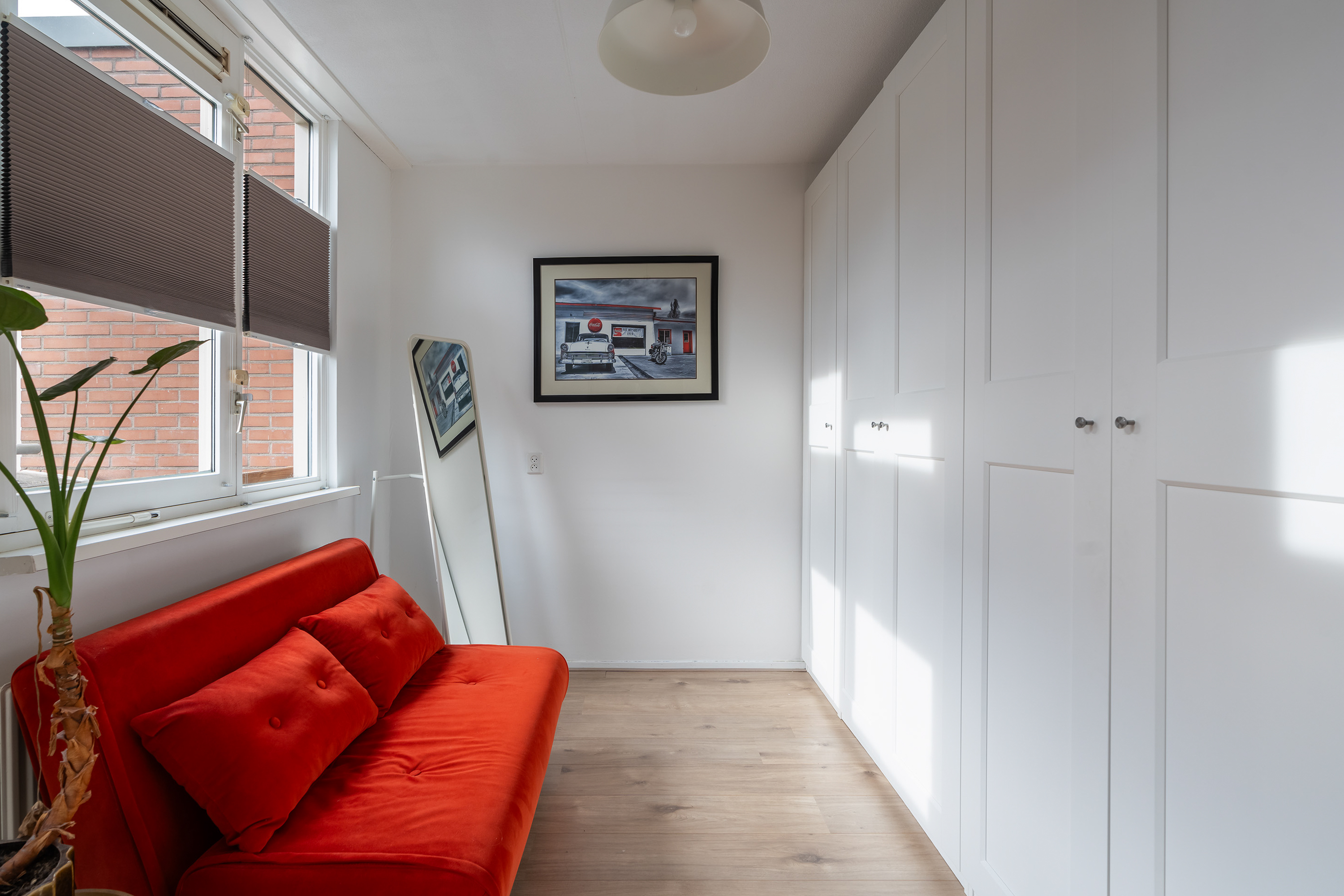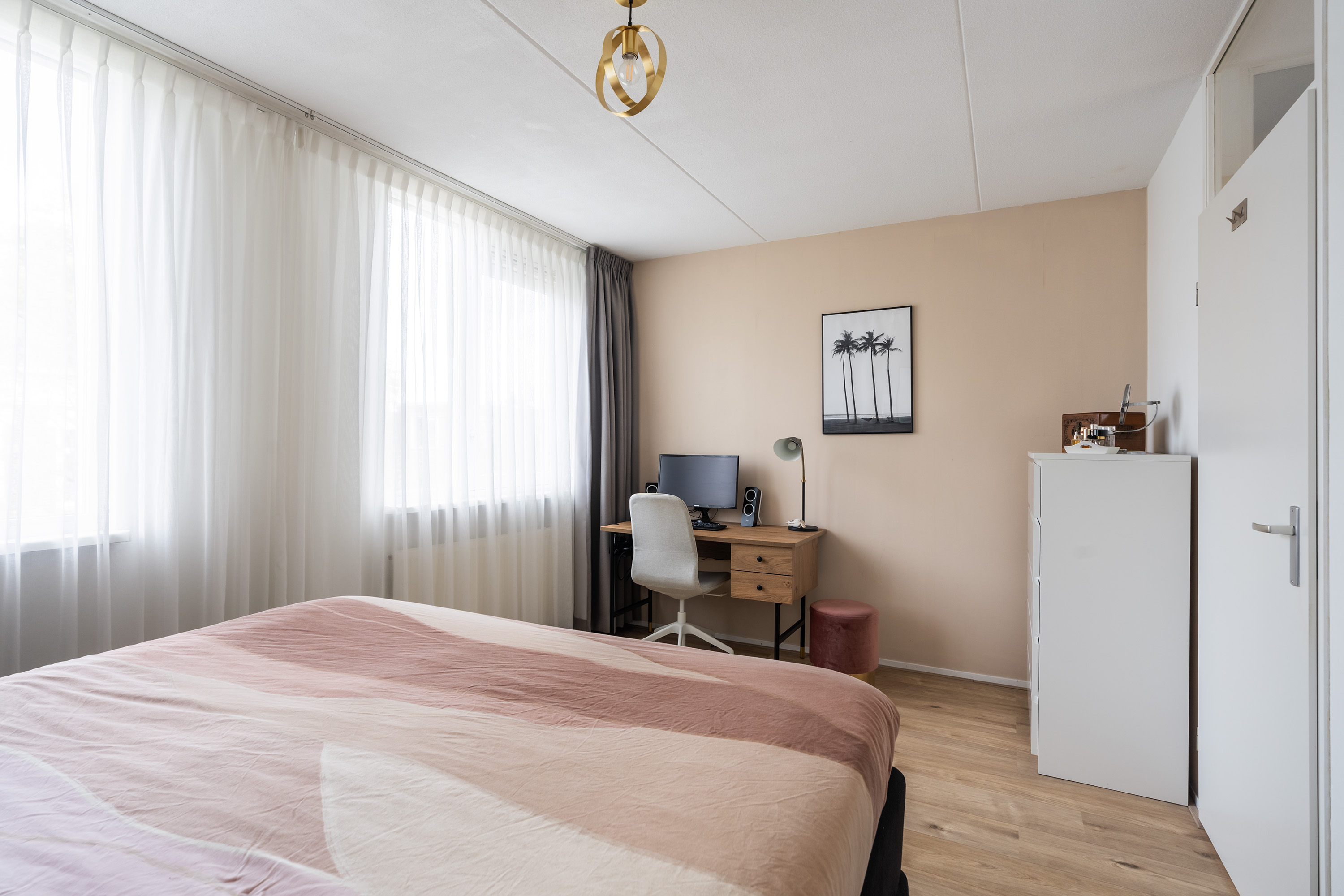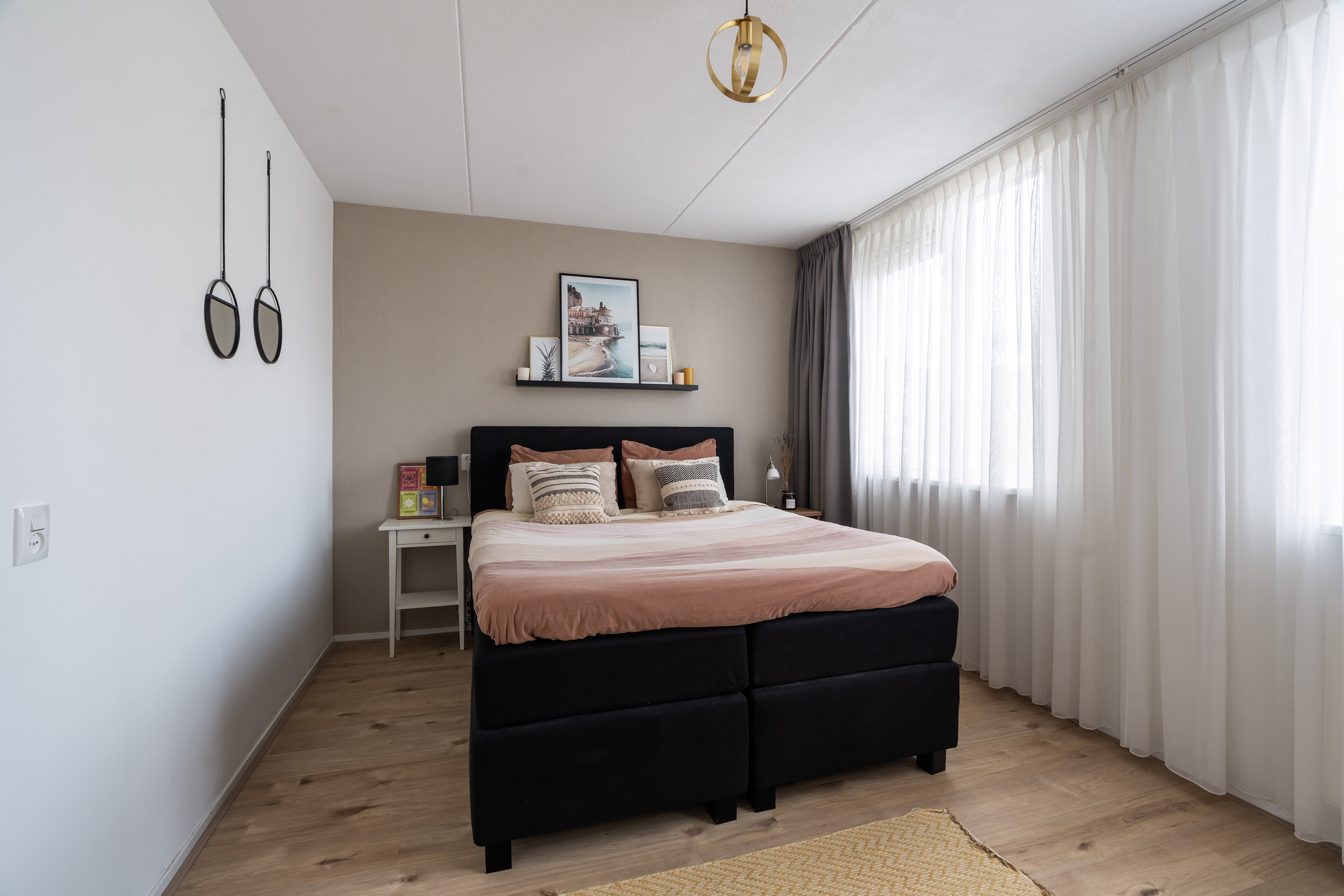 Op deze verdieping bevindt zich aan weerszijden een ruime slaapkamer, beide met een prettige lichtinval en een mooie lichte laminaatvloer. De slaapkamer aan de achterzijde beschikt over een vaste kast en biedt toegang tot het pandbrede balkon, gelegen op het zonnige zuiden. Perfect om in de zomermaanden van de zon te genieten! De badkamer heeft een luxe uitstraling dankzij onder andere de zwarte details en is voorzien van een douche met rainshower, wastafel met meubel en een aansluiting voor de wasmachine. Op de overloop is tevens een vaste kast aanwezig.
