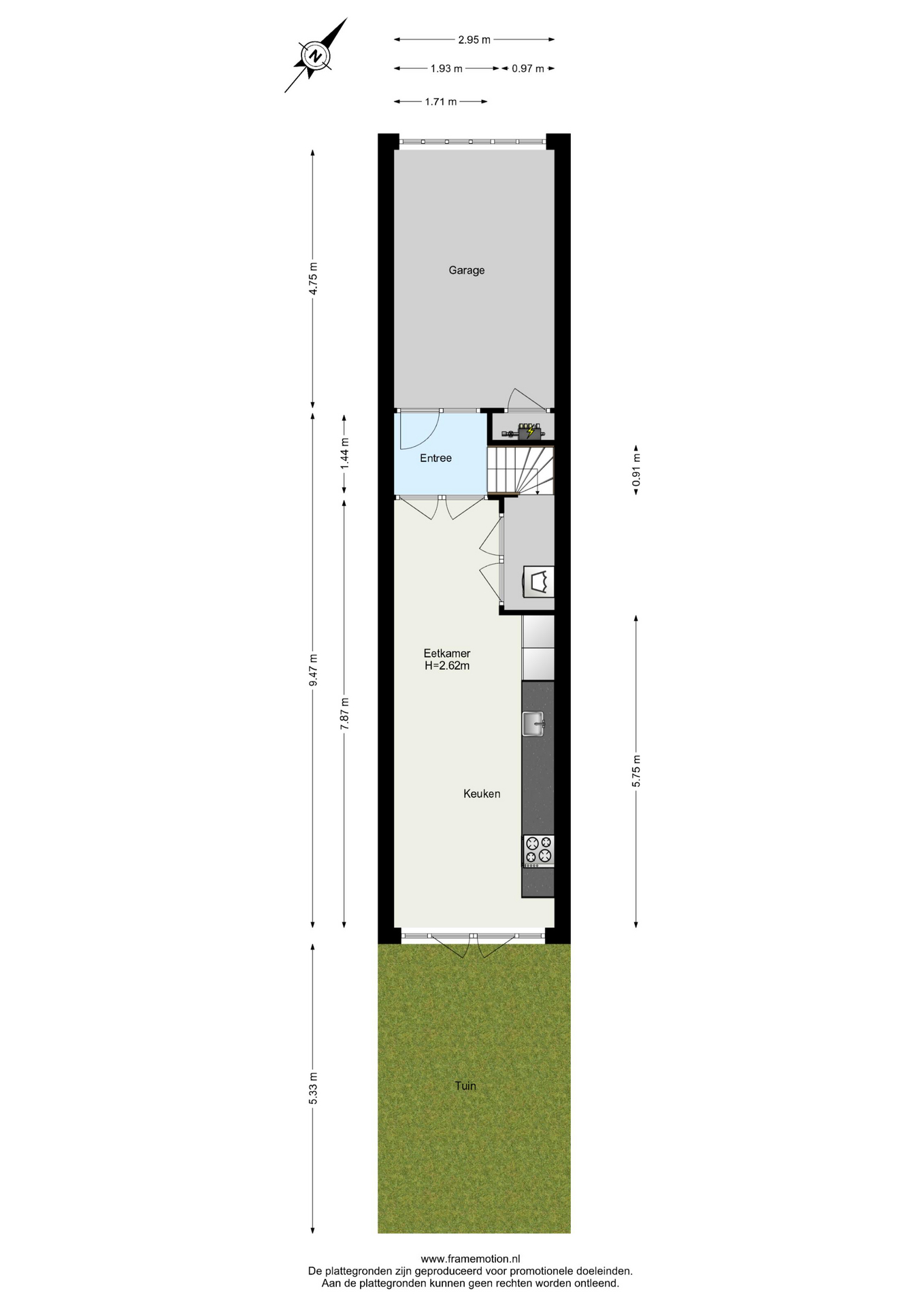 • De woning beschikt over een eigen aangrenzende garage van circa 15 m2