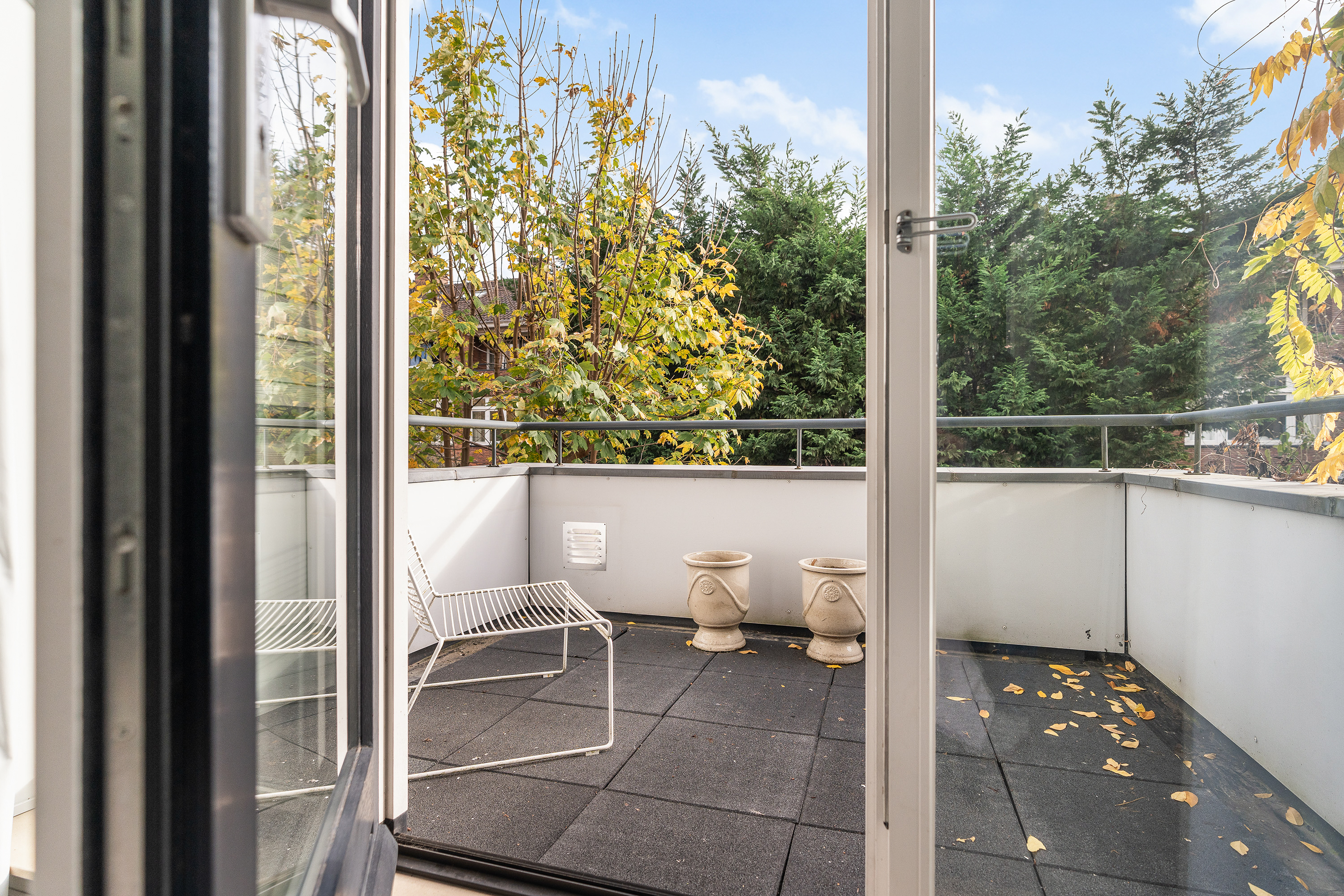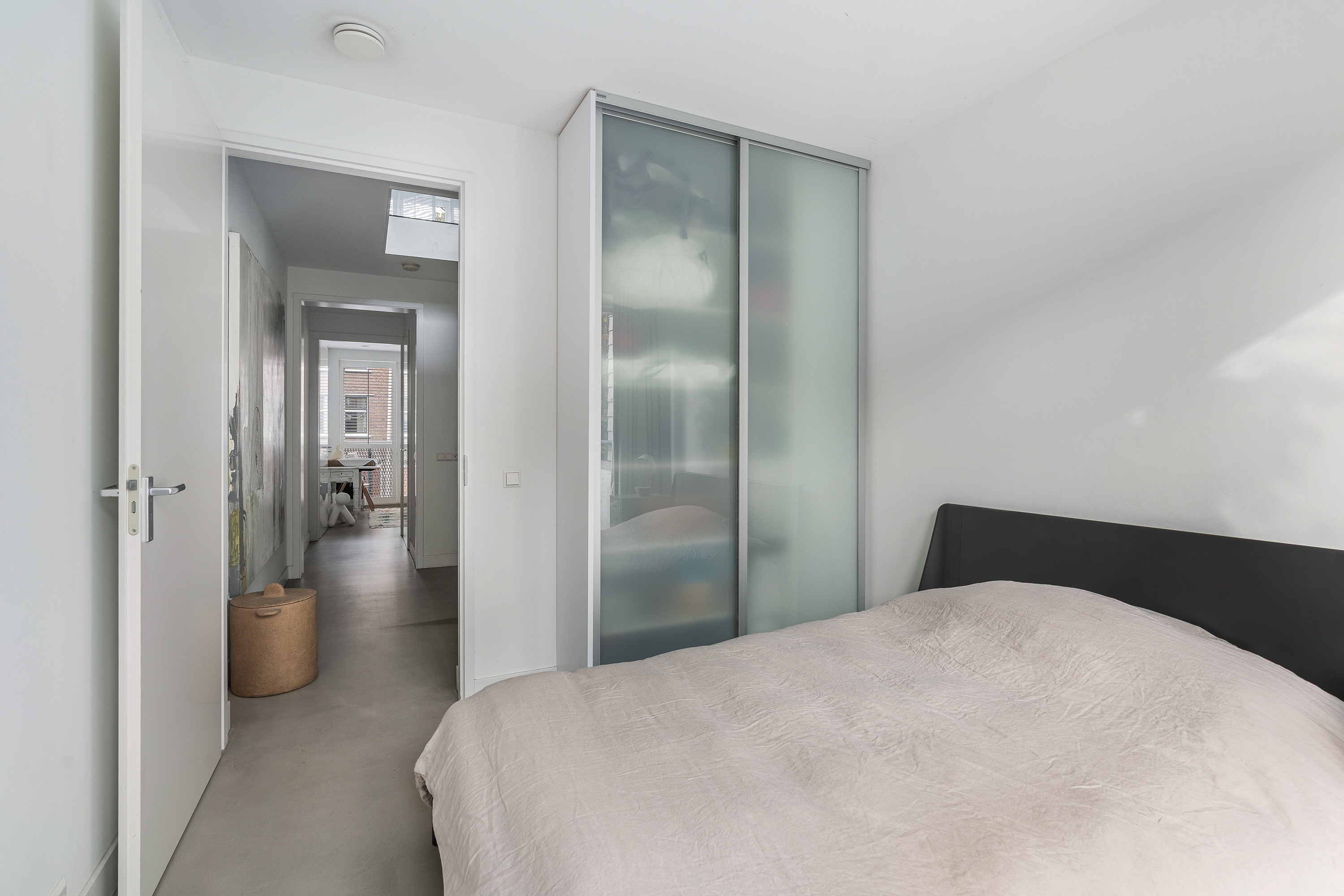Aan de voorzijde bevindt zich een fijne kamer met twee inbouwkasten. Aan de andere zijde is een ruime kamer met eveneens twee inbouwkasten en toegang tot het riante balkon. De stijlvolle badkamer is volledig betegeld en uitgerust met een inloopdouche met rainshower, een toilet, een wastafel met meubel en een handdoekradiator. Een heerlijke, ontspannende ruimte om de dag goed te beginnen of af te sluiten!
