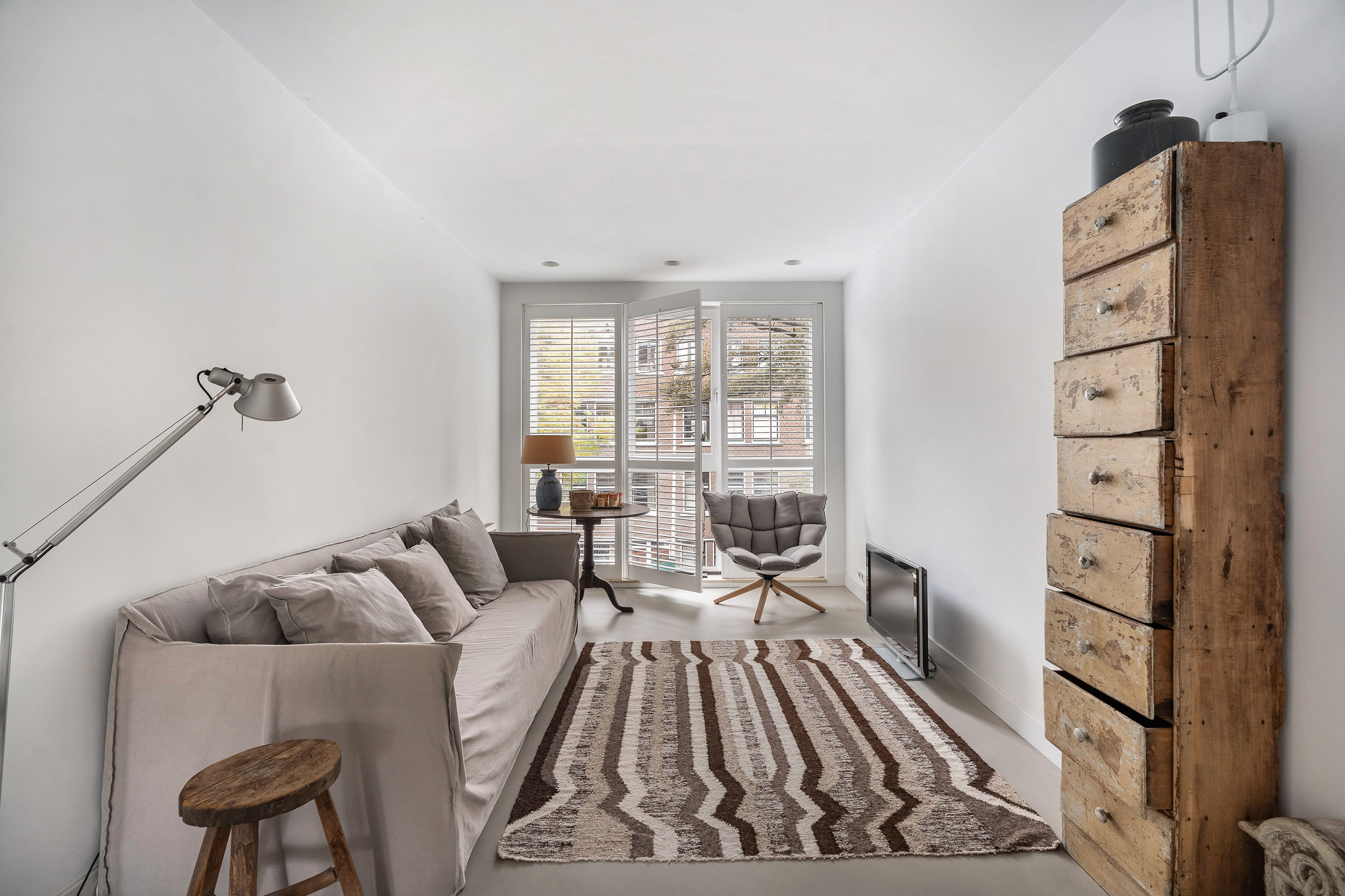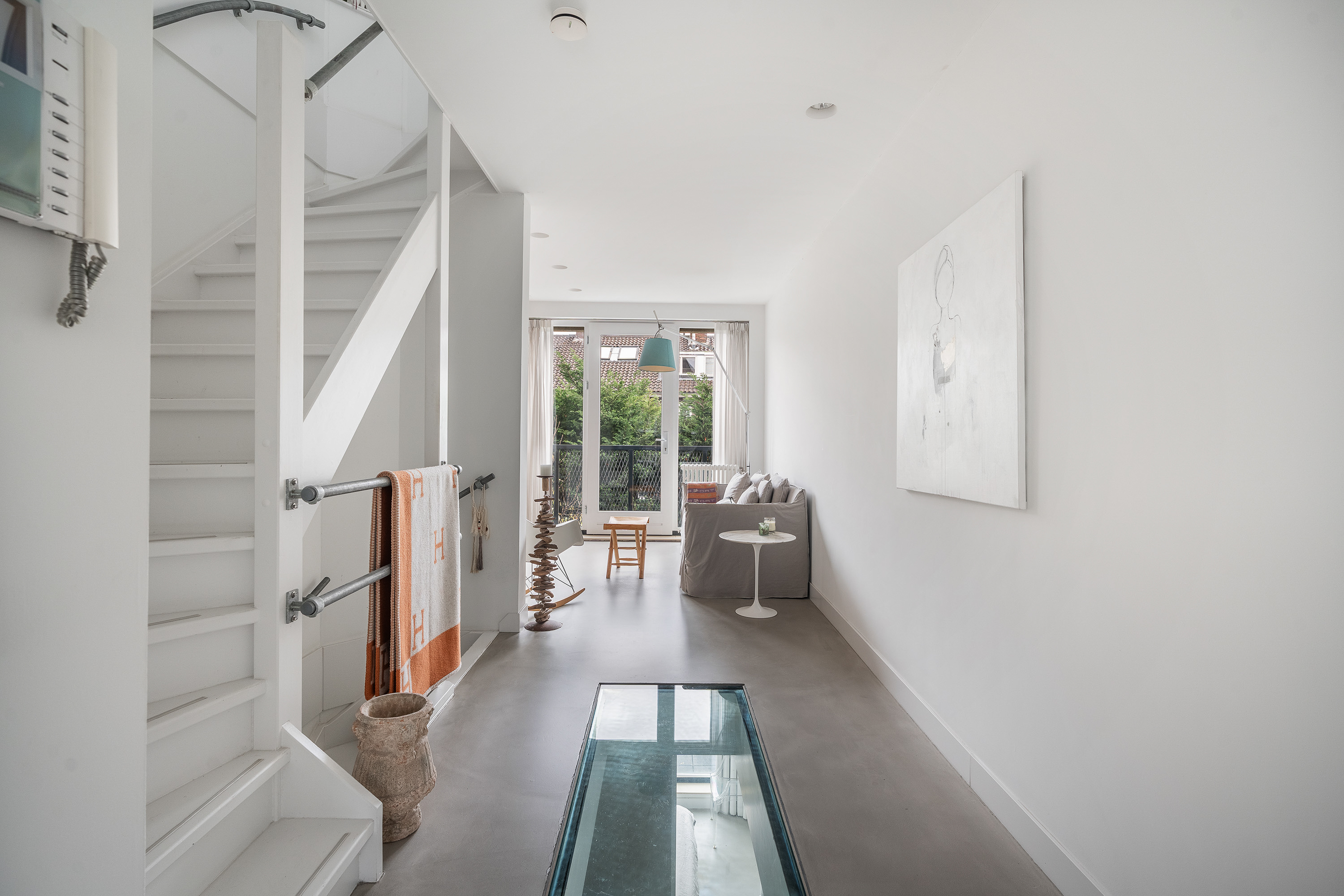 Hier stap je direct binnen in het royale leefgedeelte. Een bijzonder detail is het glazen paneel met doorkijk naar de verdieping eronder. een echte eyecatcher die de ruimte karakter en licht geeft! Grote raampartijen aan beide kanten laten heerlijk veel licht binnen en de openslaande ramen maken het extra aangenaam. Het plafond is voorzien van moderne inbouwspots, wat de ruimte een stijlvolle en sfeervolle uitstraling geeft. Aan beide zijden is er voldoende ruimte om een gezellige zithoek, een praktische werkkamer of een inspirerende hobbyruimte in te richten.