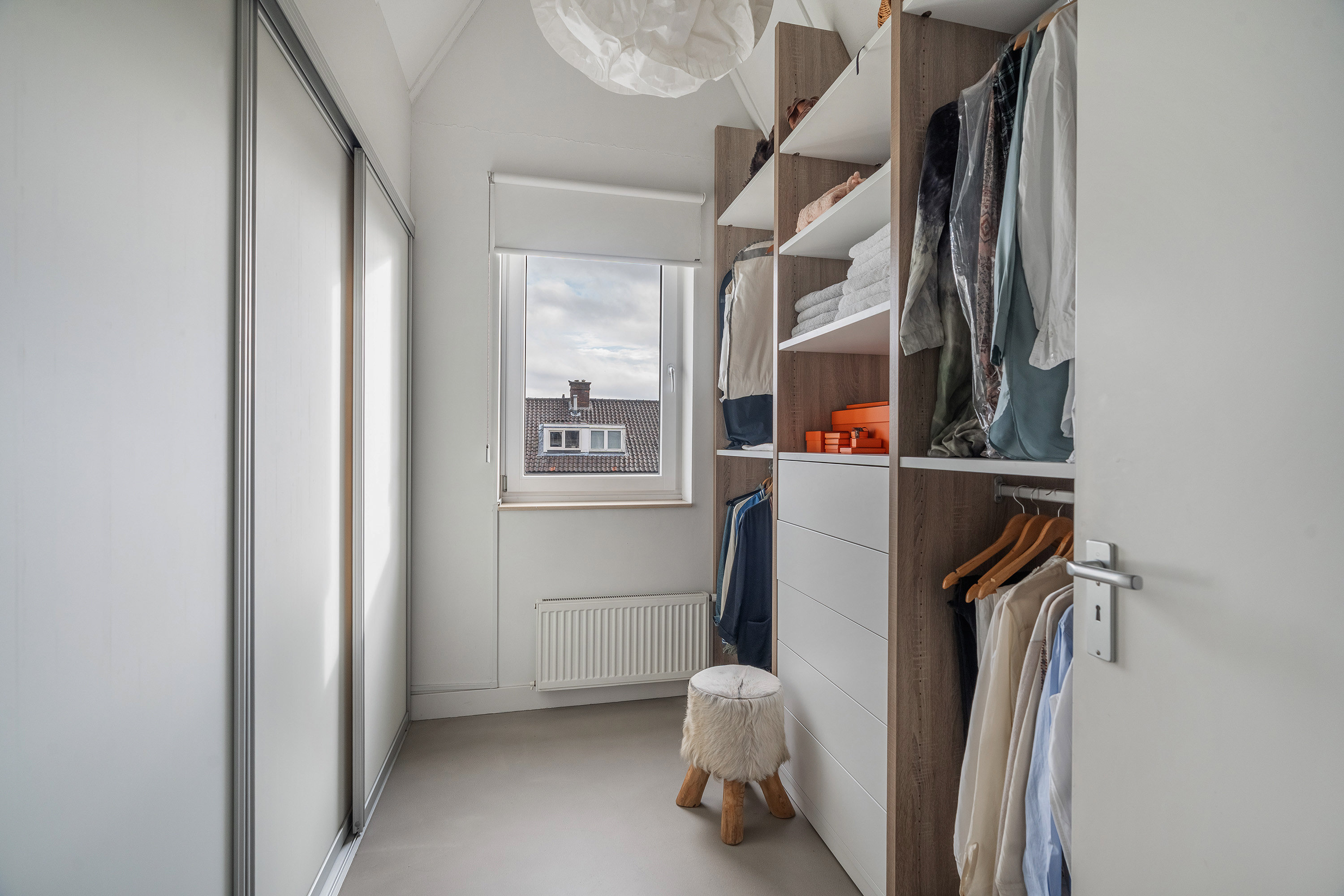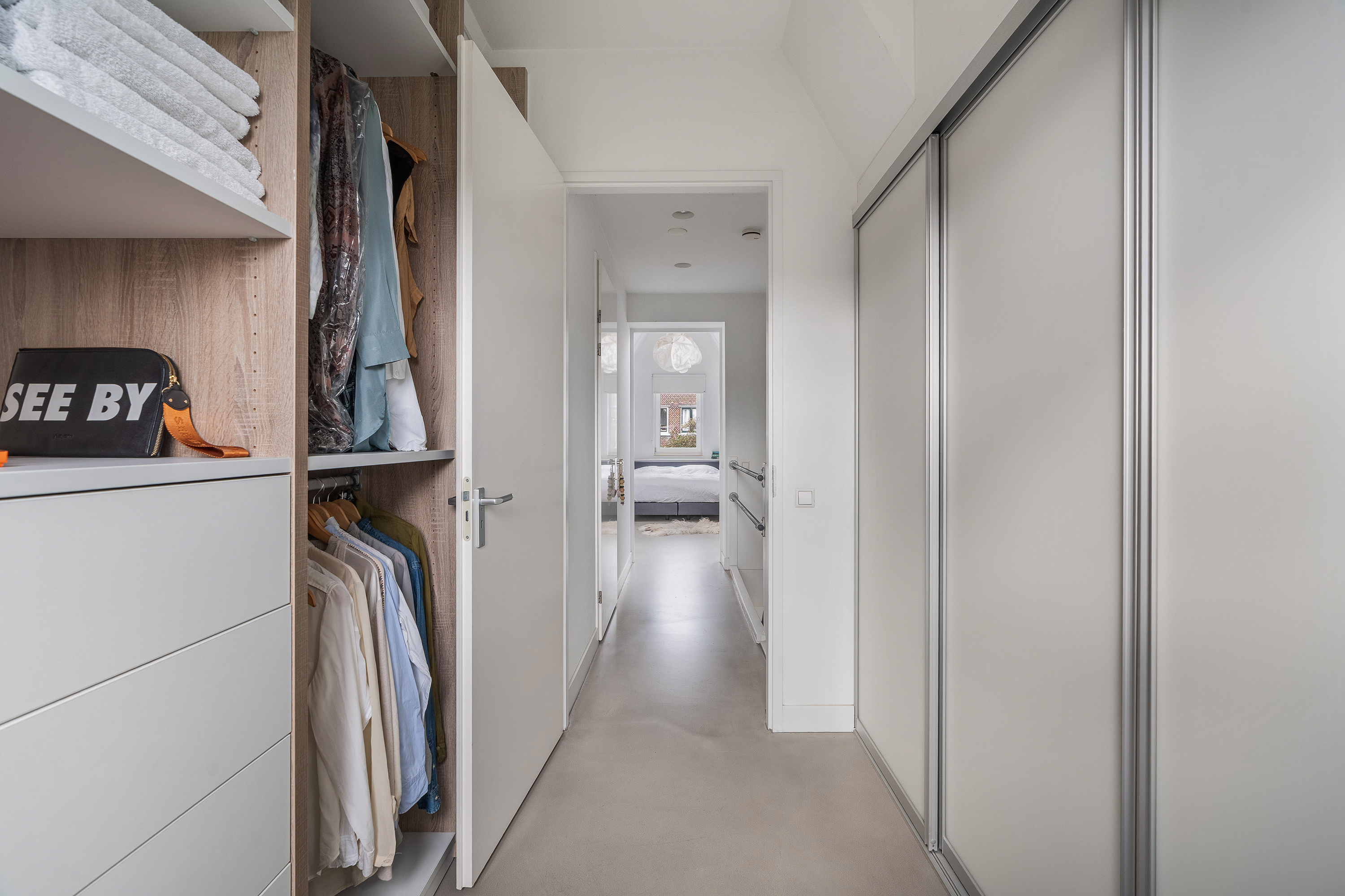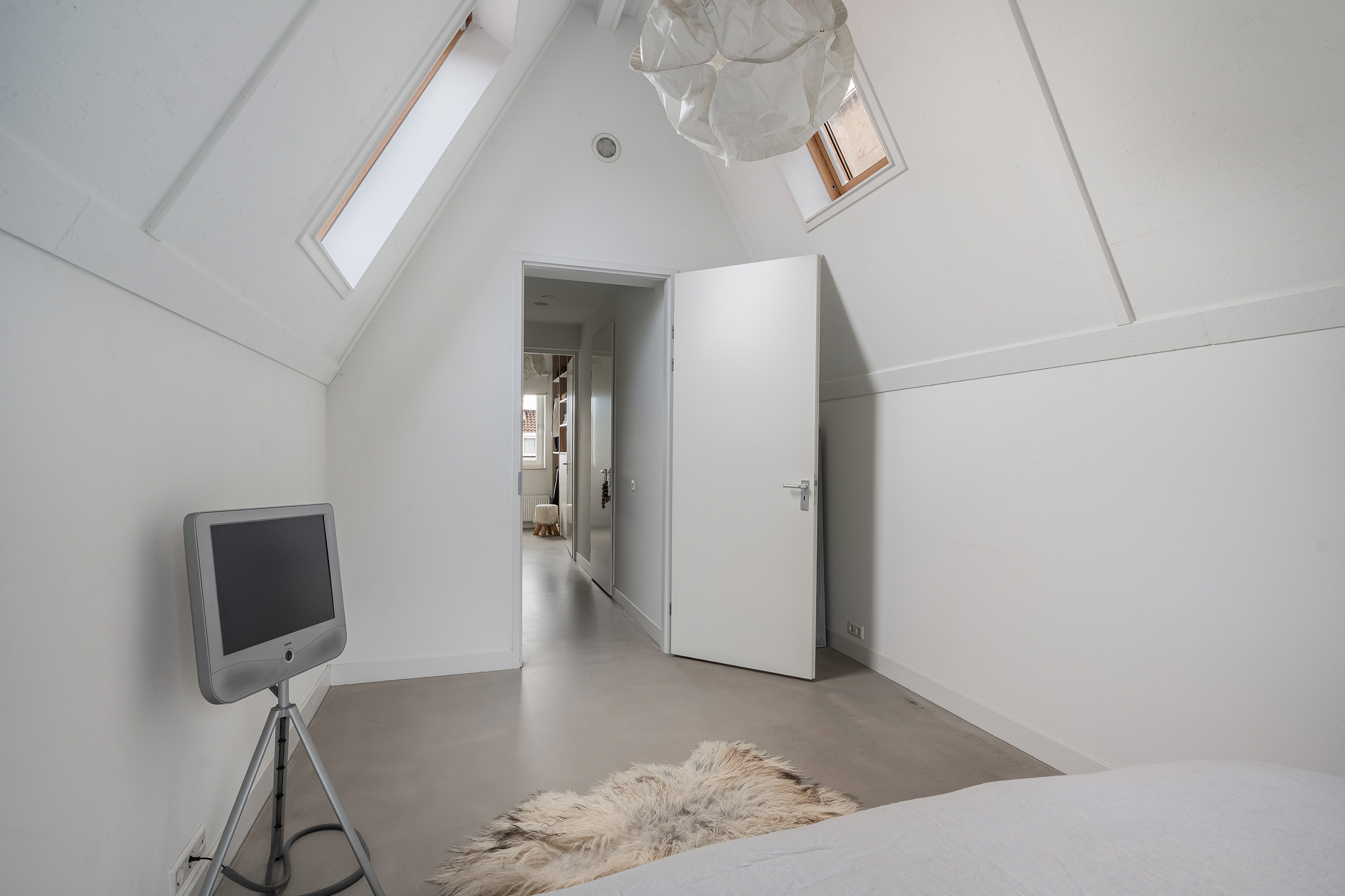 Op deze verdieping bevindt zich een royale slaapkamer met een prachtig hoof plafond en twee dakramen. Aan de achterzijde is een walk-in-closet gerealiseerd. Wie wil dat nou niet? De tweede badkamer is eveneens modern en voorzien van een inloopdouche met rainshower, een toilet en een wastafel met zwevend meubel