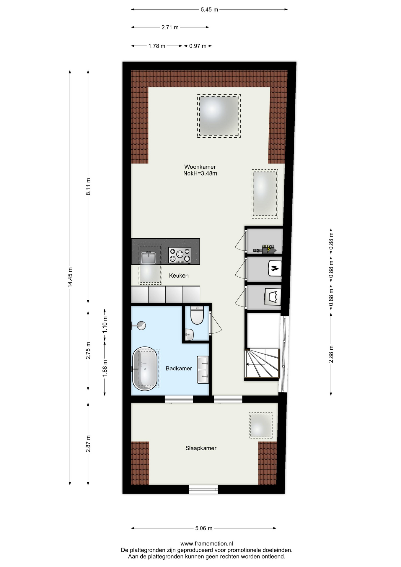 Voor de afmetingen en indeling zie onze gedetailleerde plattegrond.